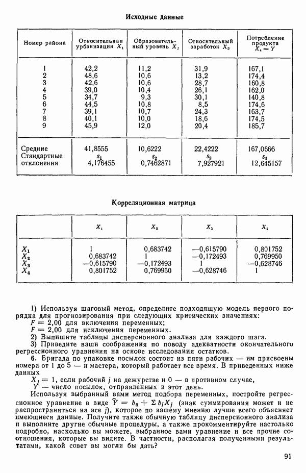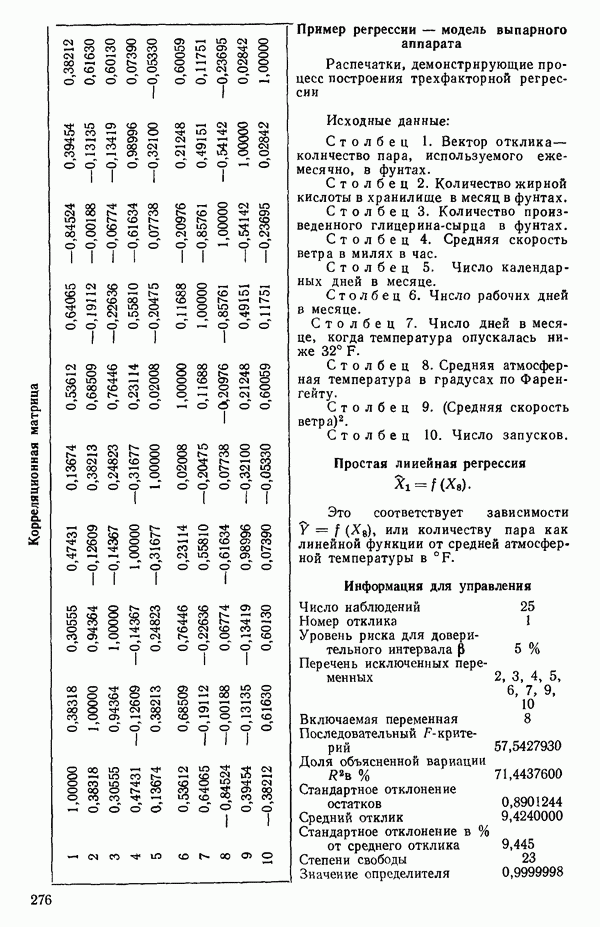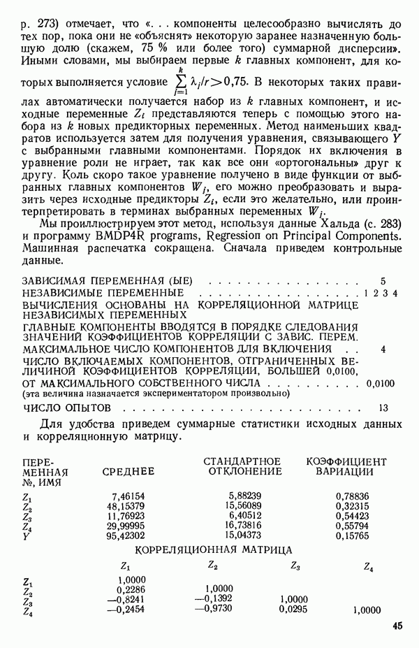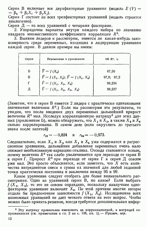 первый кандидат в наиболее важные факторы, исследуем тем не менее корреляционную матрицу. Поскольку эта матрица симметрична, приведена только ее правая верхняя часть (результаты округлены до третьего десятичного знака).