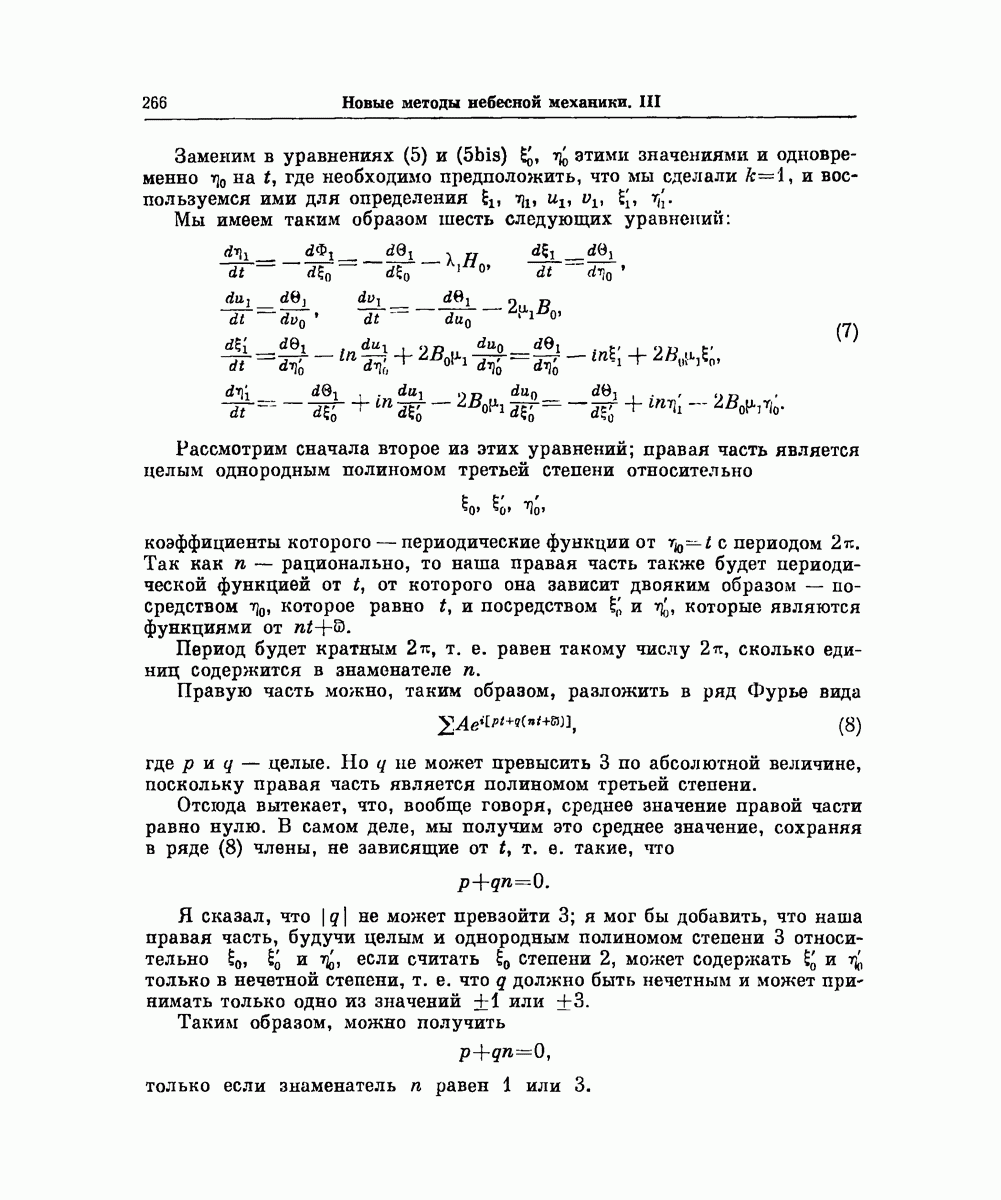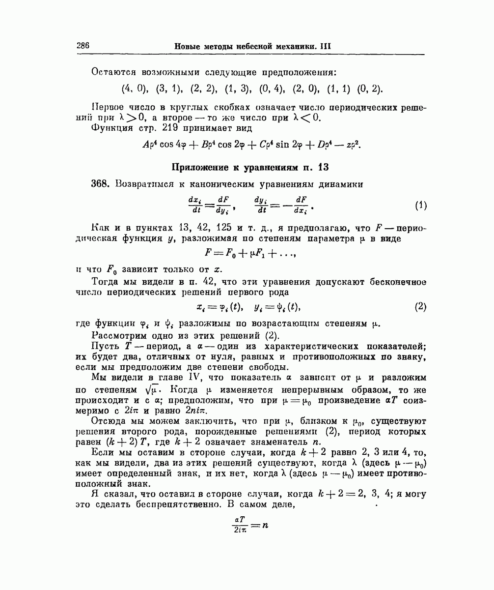 которые дадут два периодических решения; так как знак X может зависеть от и), то может случиться, что мы получим:
