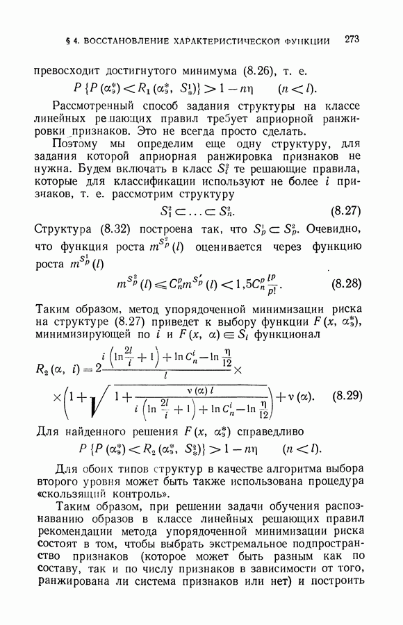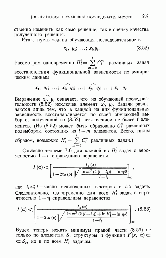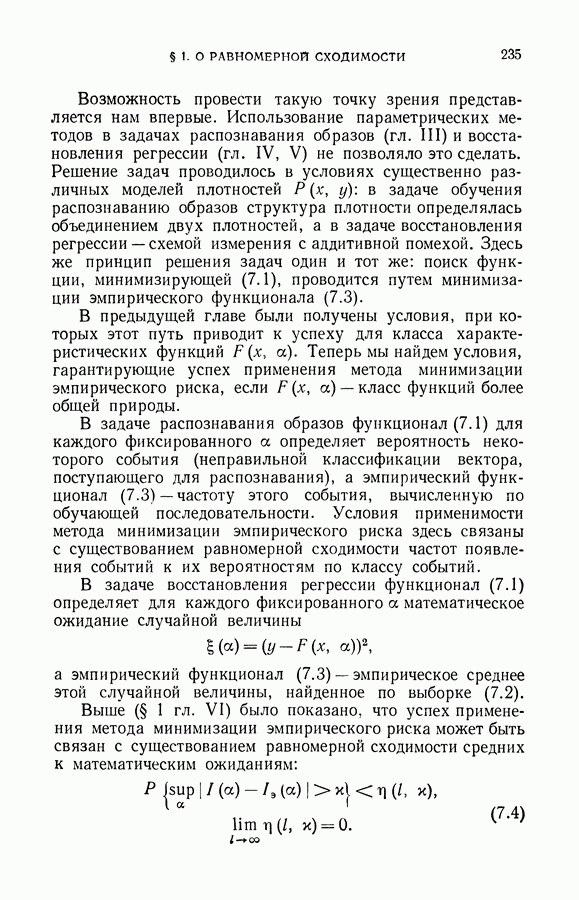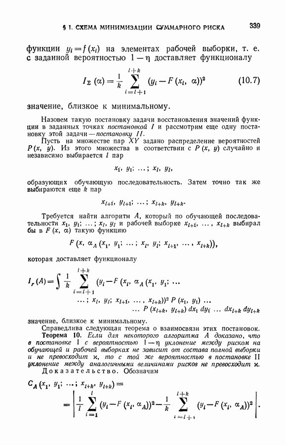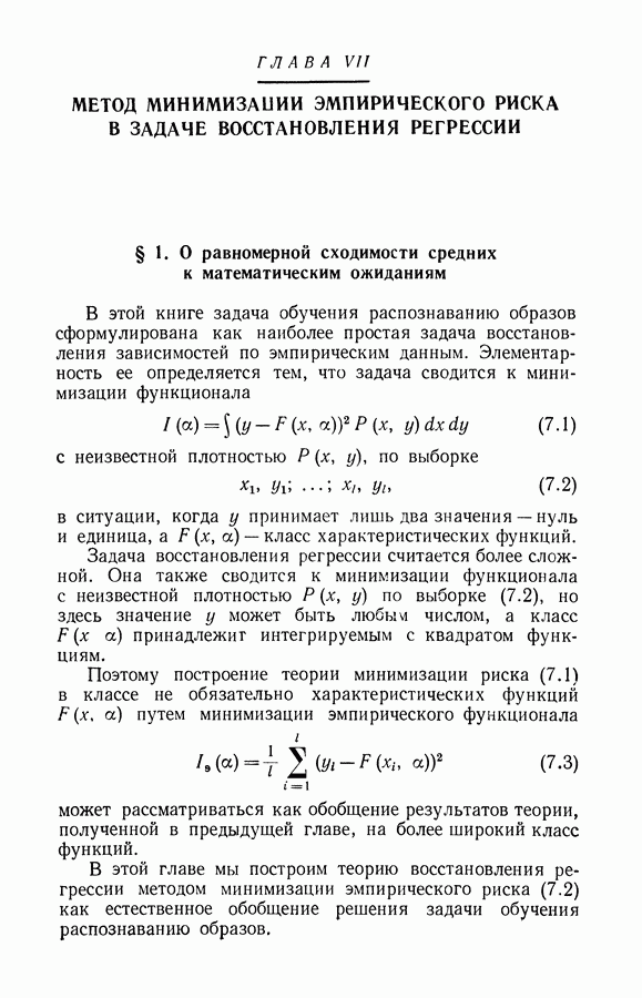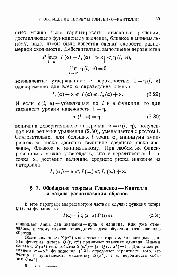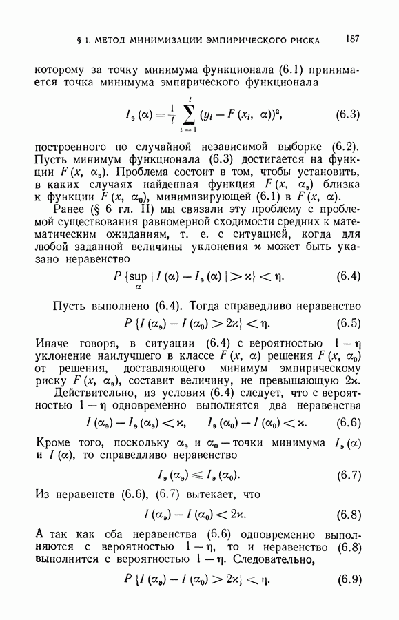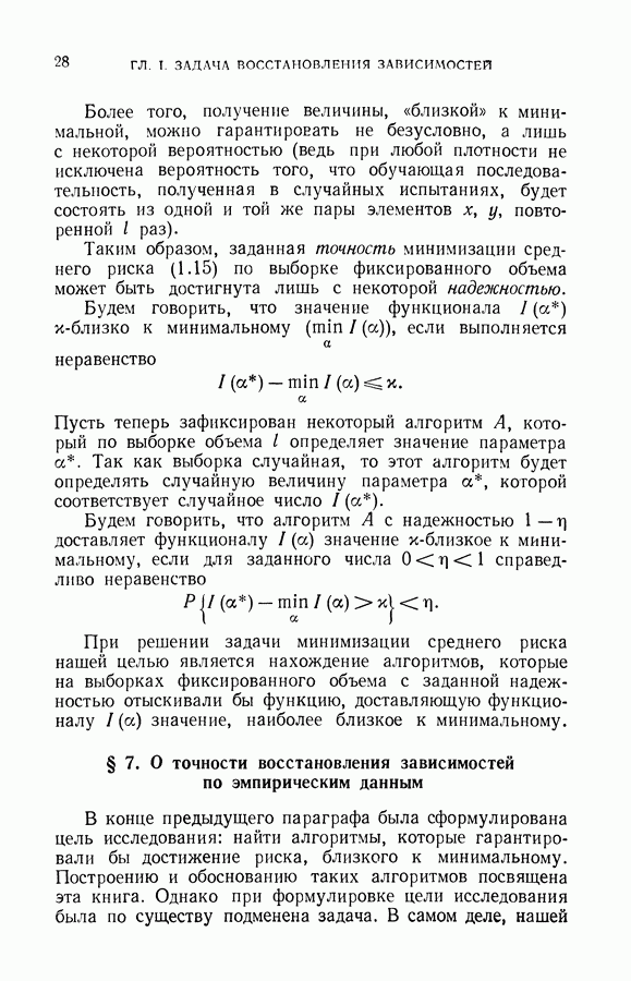 минимума эмпирического риска доставит величине среднего риска значение, близкое к минимальному. При любом же фиксированном I можно утверждать, что с вероятностью