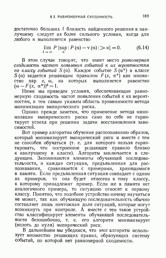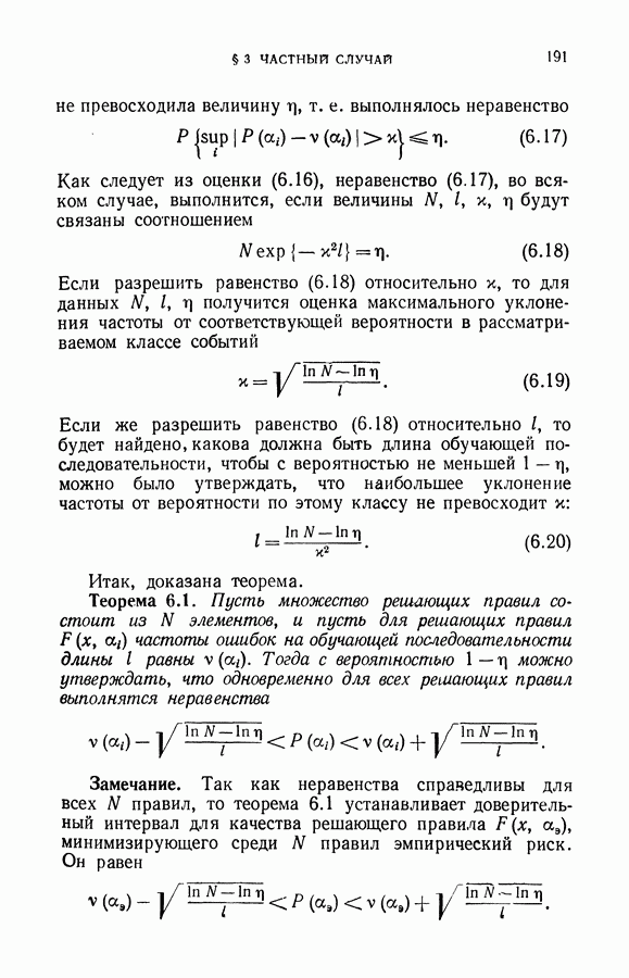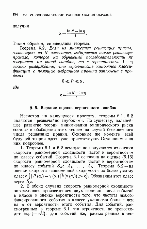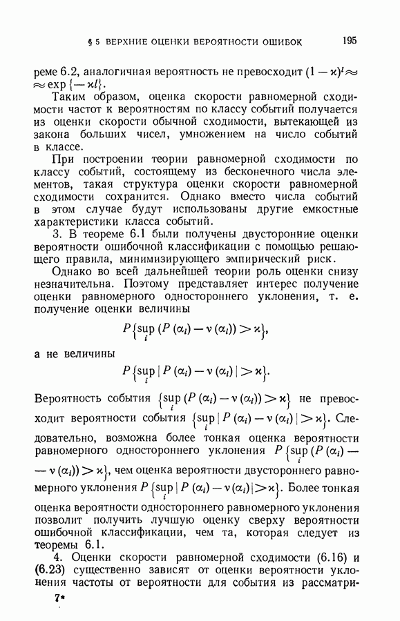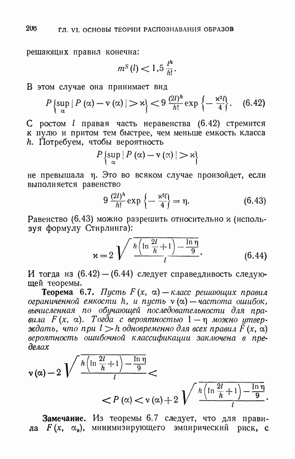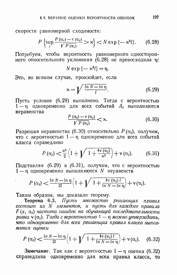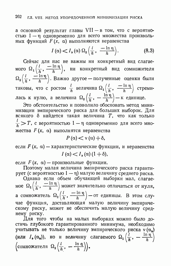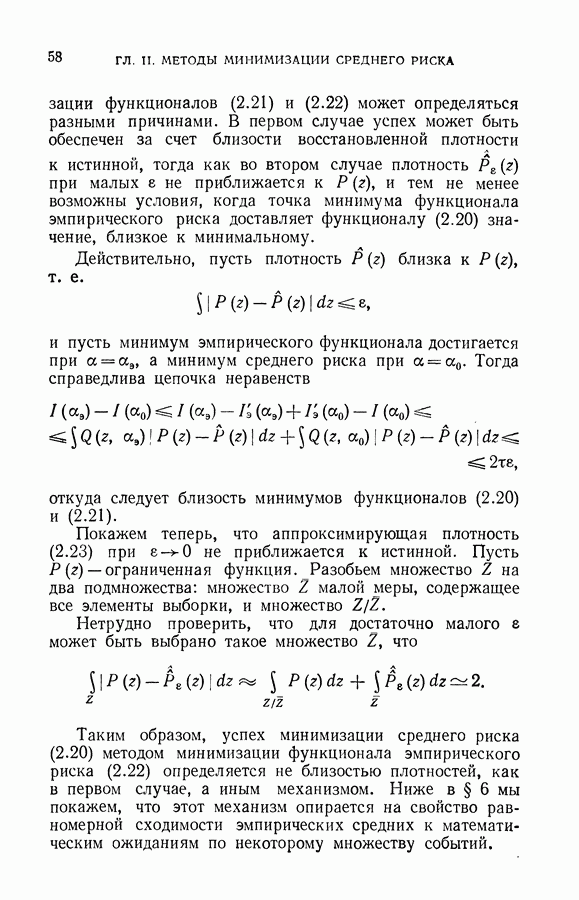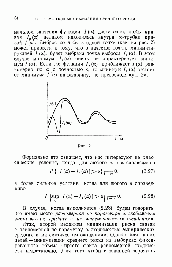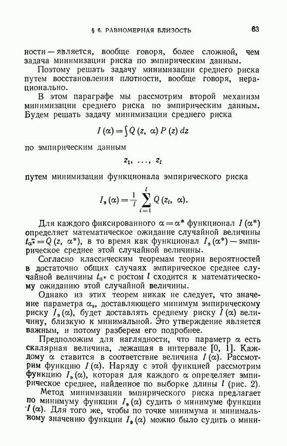 Итак, второй механизм минимизации риска связан с равномерной по параметру а сходимостью эмпирических средних к математическим ожиданиям. Однако для наших целей — минимизации среднего риска на выборках фиксированного объема — просто факта равномерной сходимости недостаточно, Для того чтобы с заданной