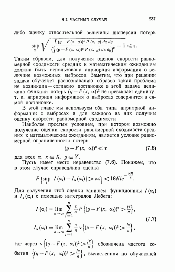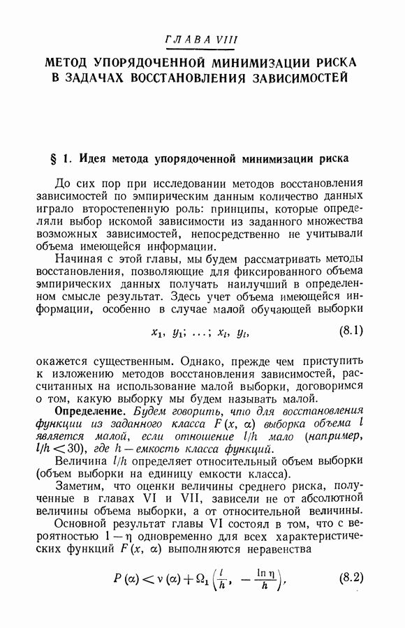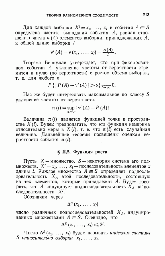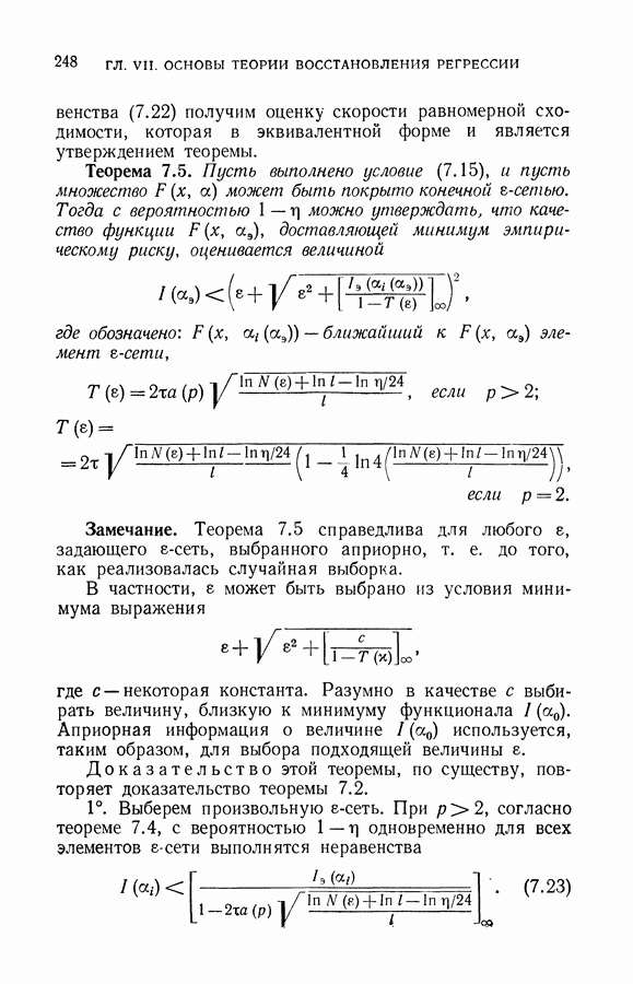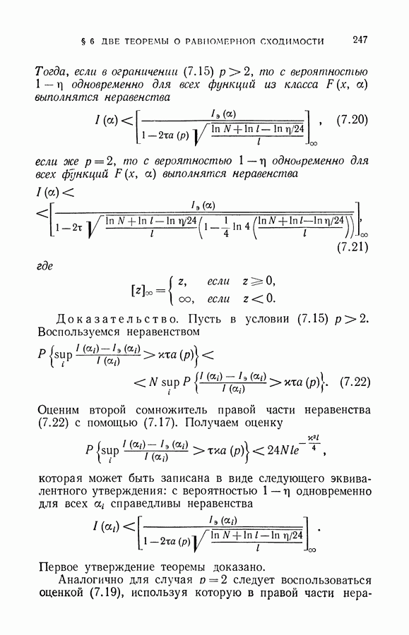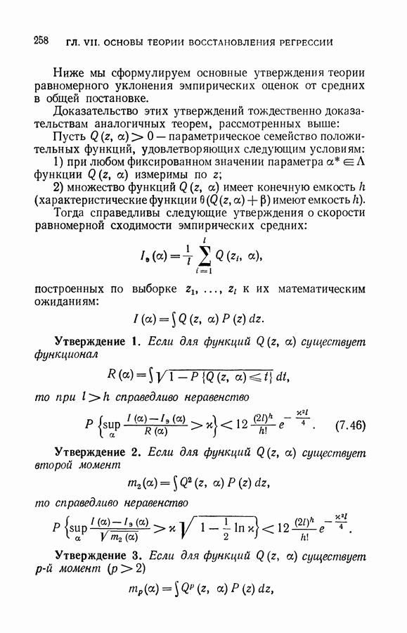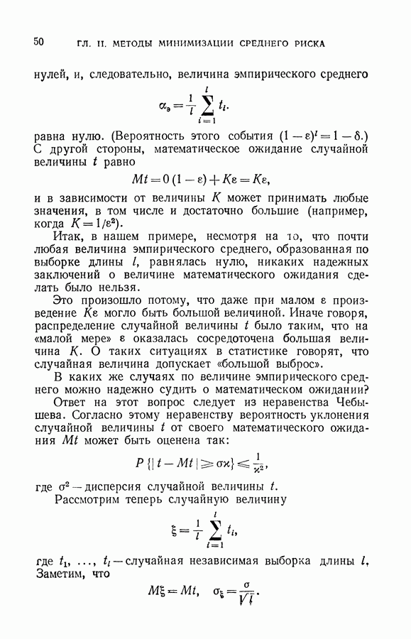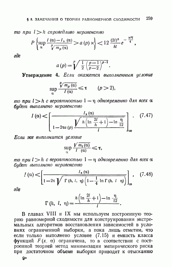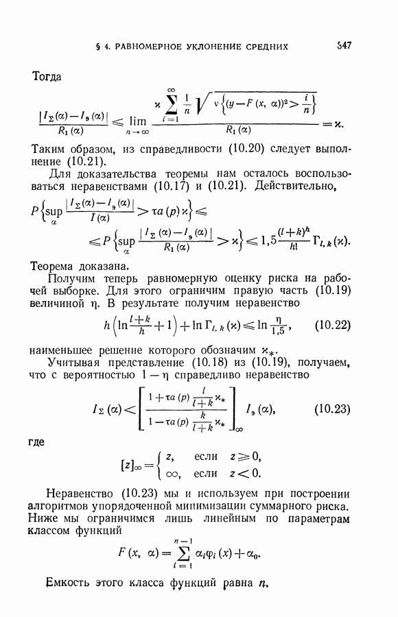 Итак, второй механизм минимизации риска связан с равномерной по параметру а сходимостью эмпирических средних к математическим ожиданиям. Однако для наших целей — минимизации среднего риска на выборках фиксированного объема — просто факта равномерной сходимости недостаточно, Для того чтобы с заданной