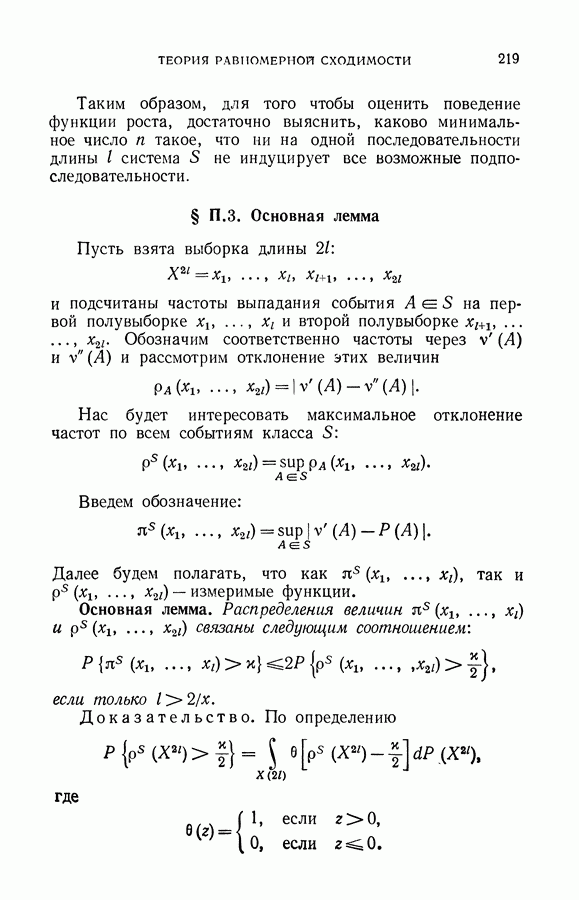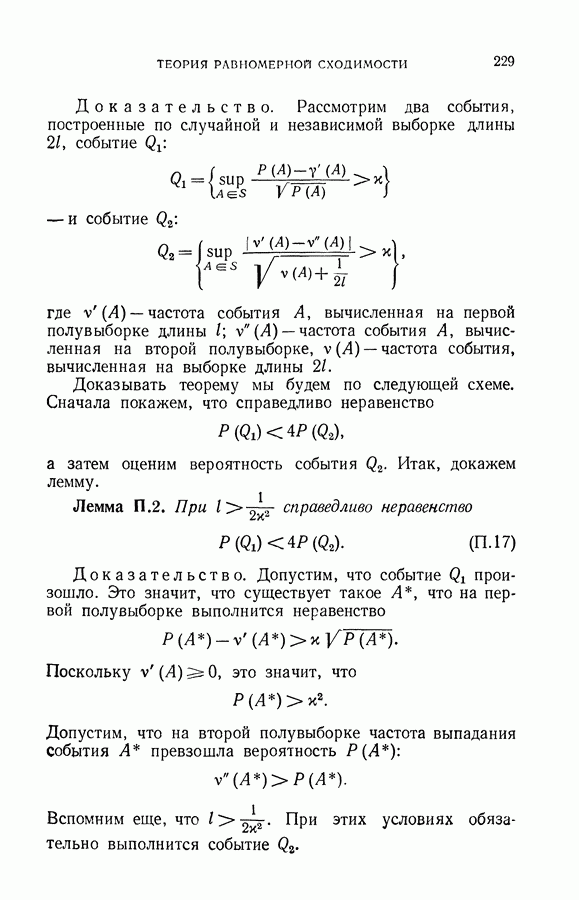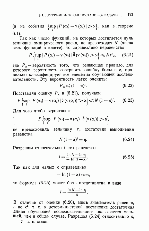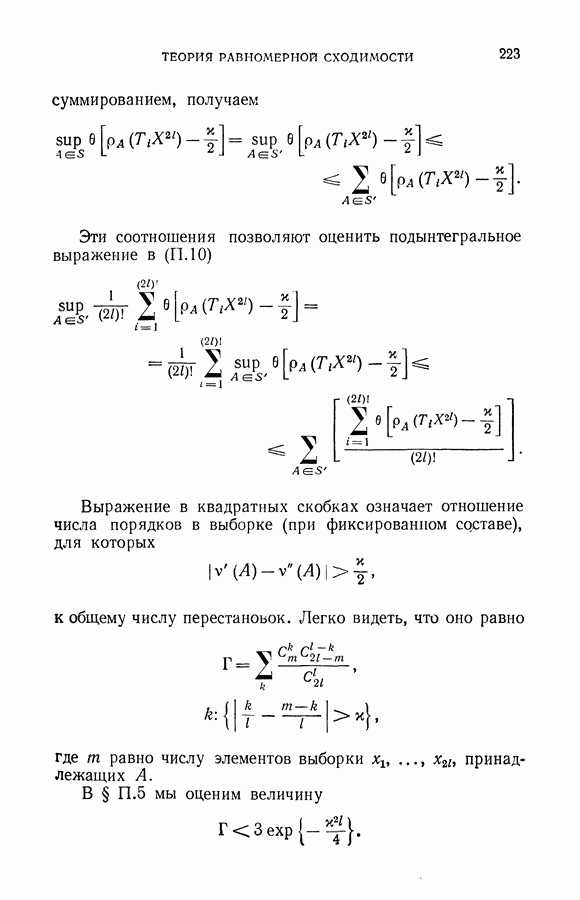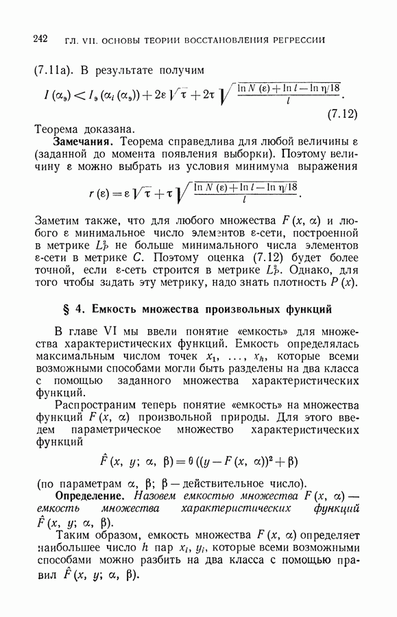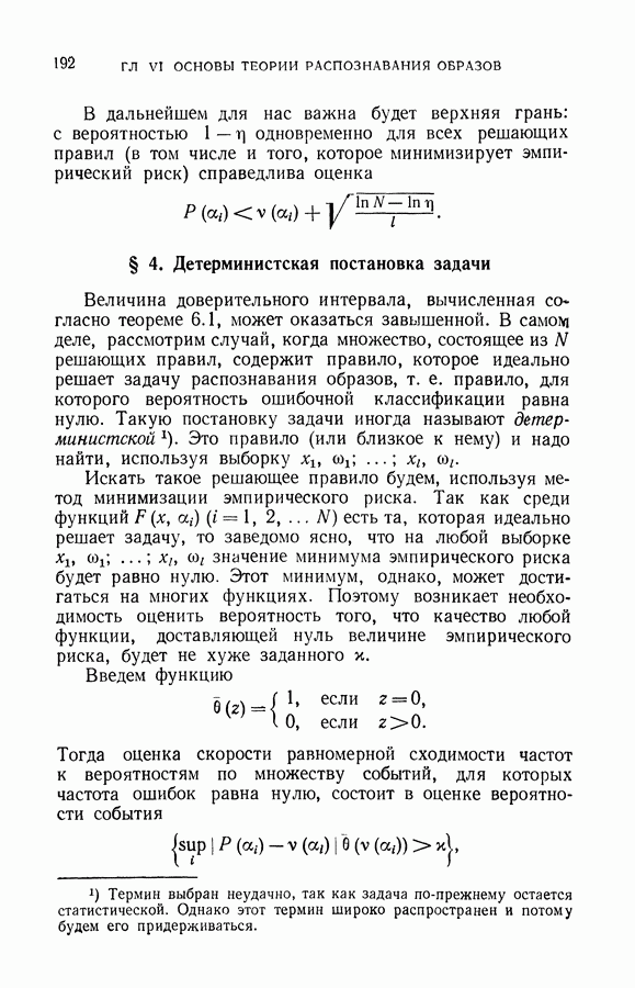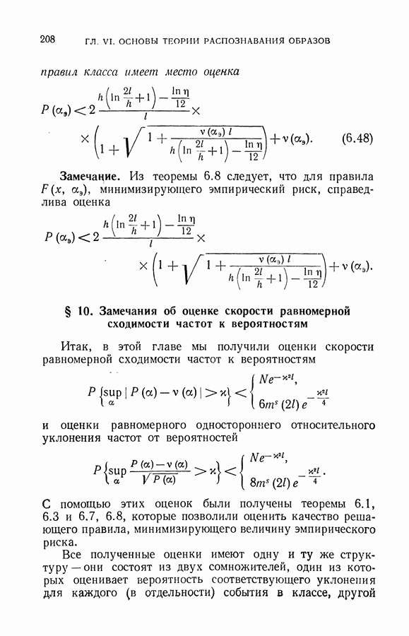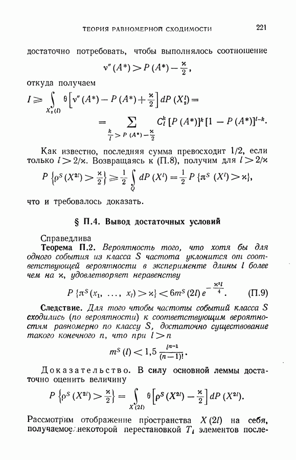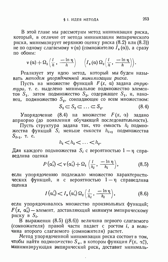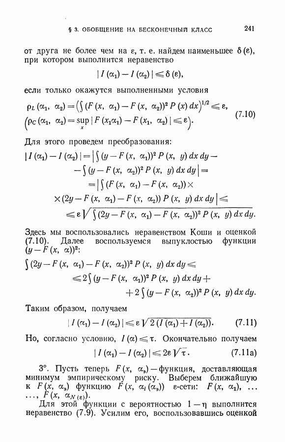 Итак, второй механизм минимизации риска связан с равномерной по параметру а сходимостью эмпирических средних к математическим ожиданиям. Однако для наших целей — минимизации среднего риска на выборках фиксированного объема — просто факта равномерной сходимости недостаточно, Для того чтобы с заданной