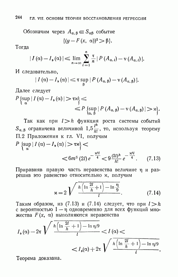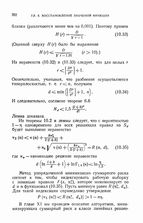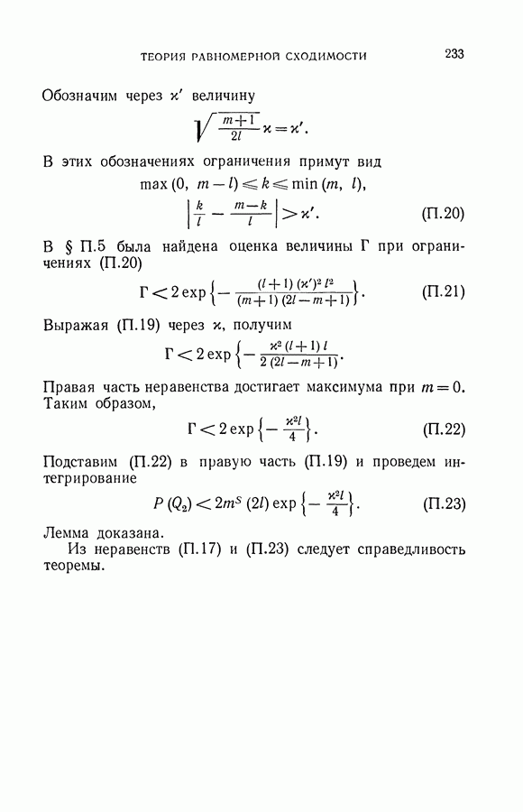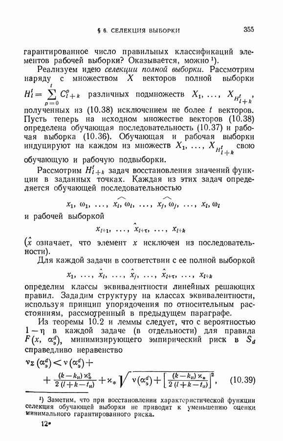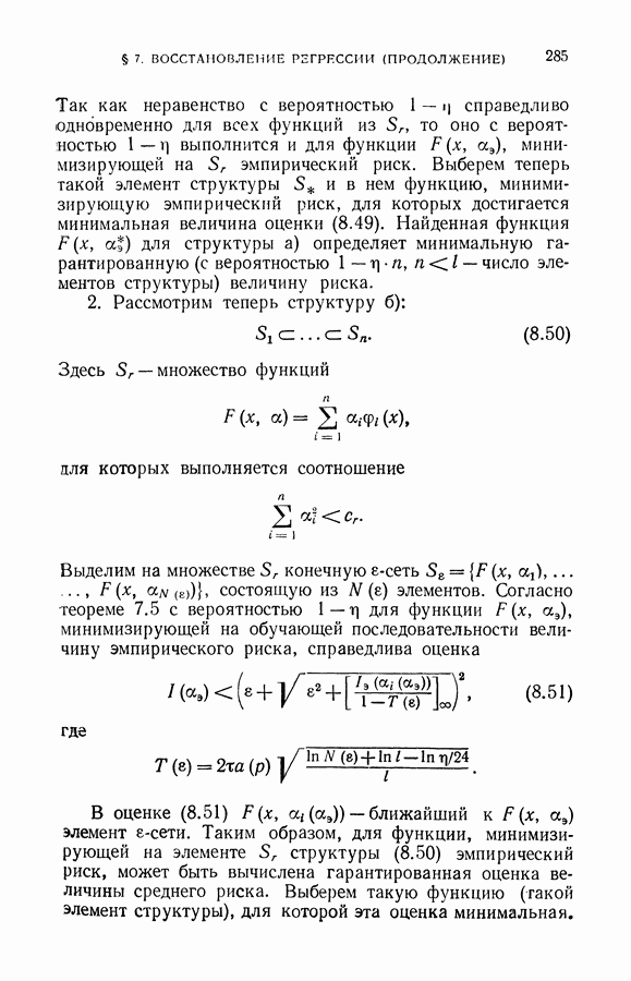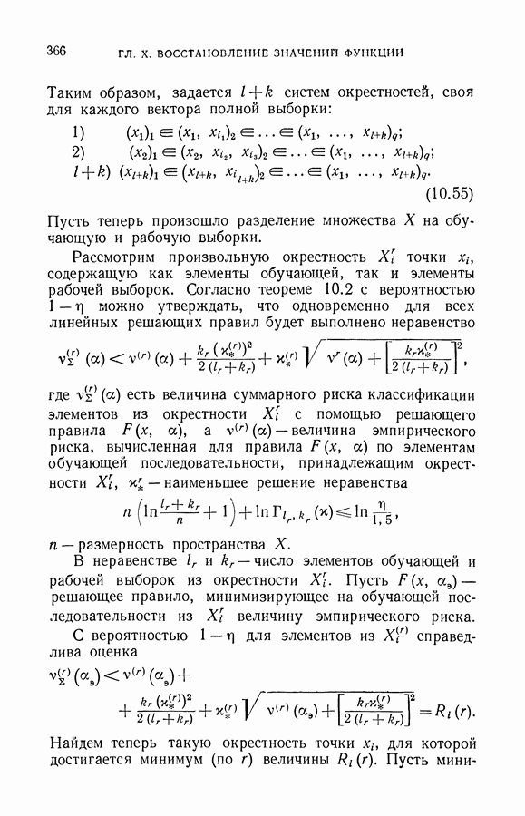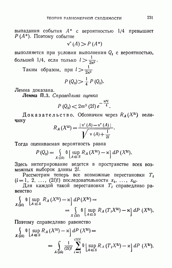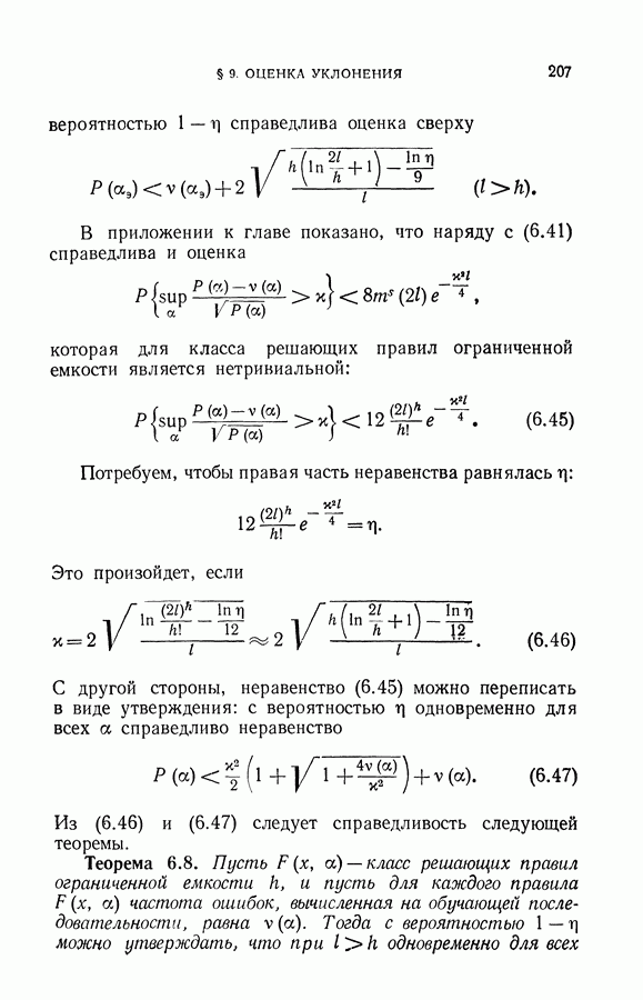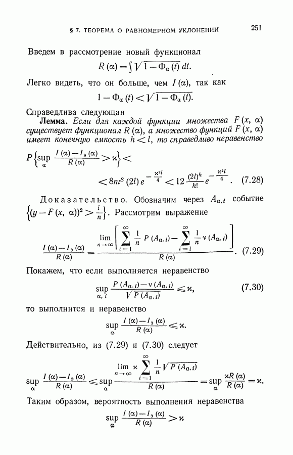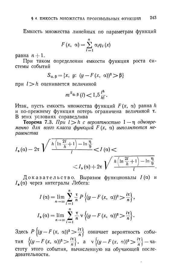 Итак, второй механизм минимизации риска связан с равномерной по параметру а сходимостью эмпирических средних к математическим ожиданиям. Однако для наших целей — минимизации среднего риска на выборках фиксированного объема — просто факта равномерной сходимости недостаточно, Для того чтобы с заданной