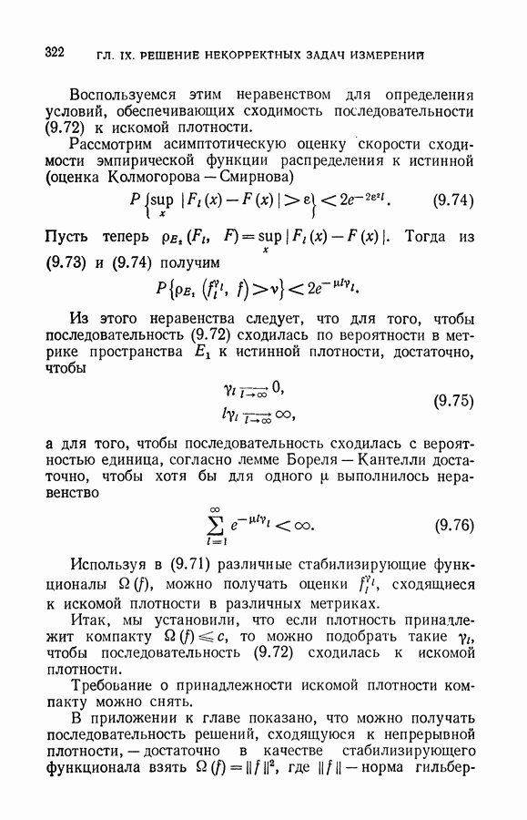 вероятностью можно было гарантировать отыскание решения, доставляющего функционалу значение, близкое к минимальному, надо, чтобы была известна оценка скорости равномерной сходимости. Действительно, выполнение неравенства