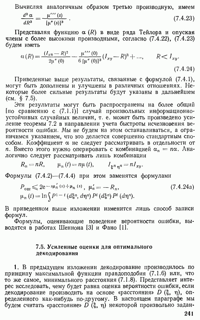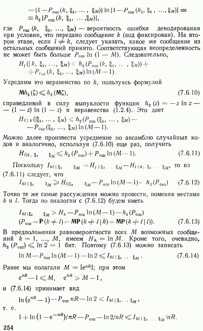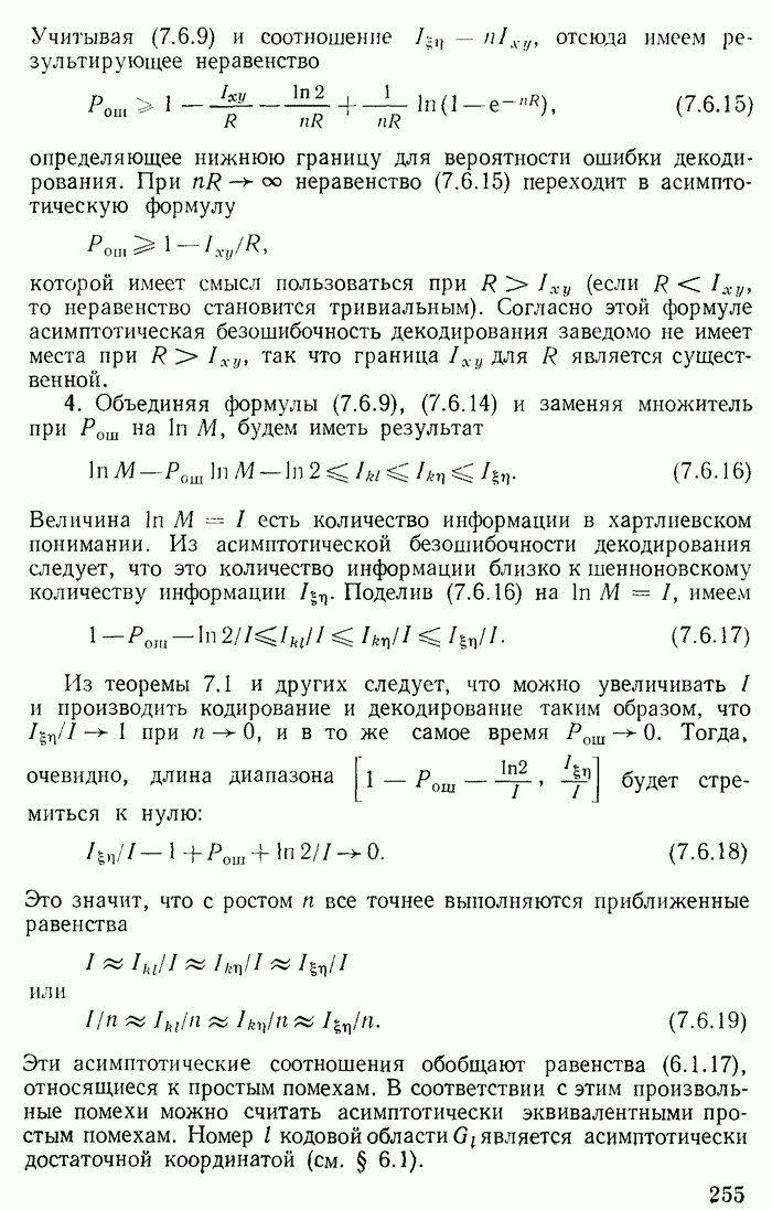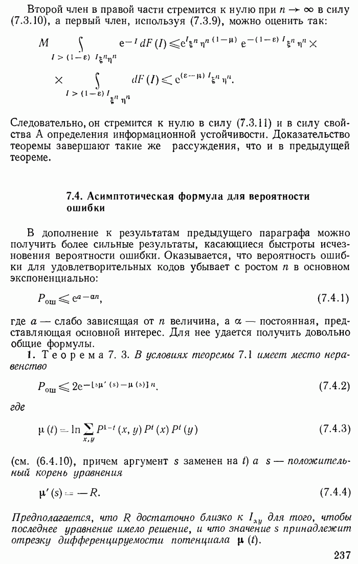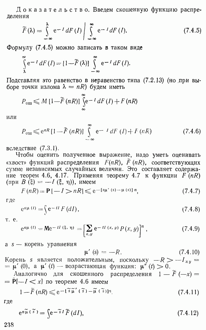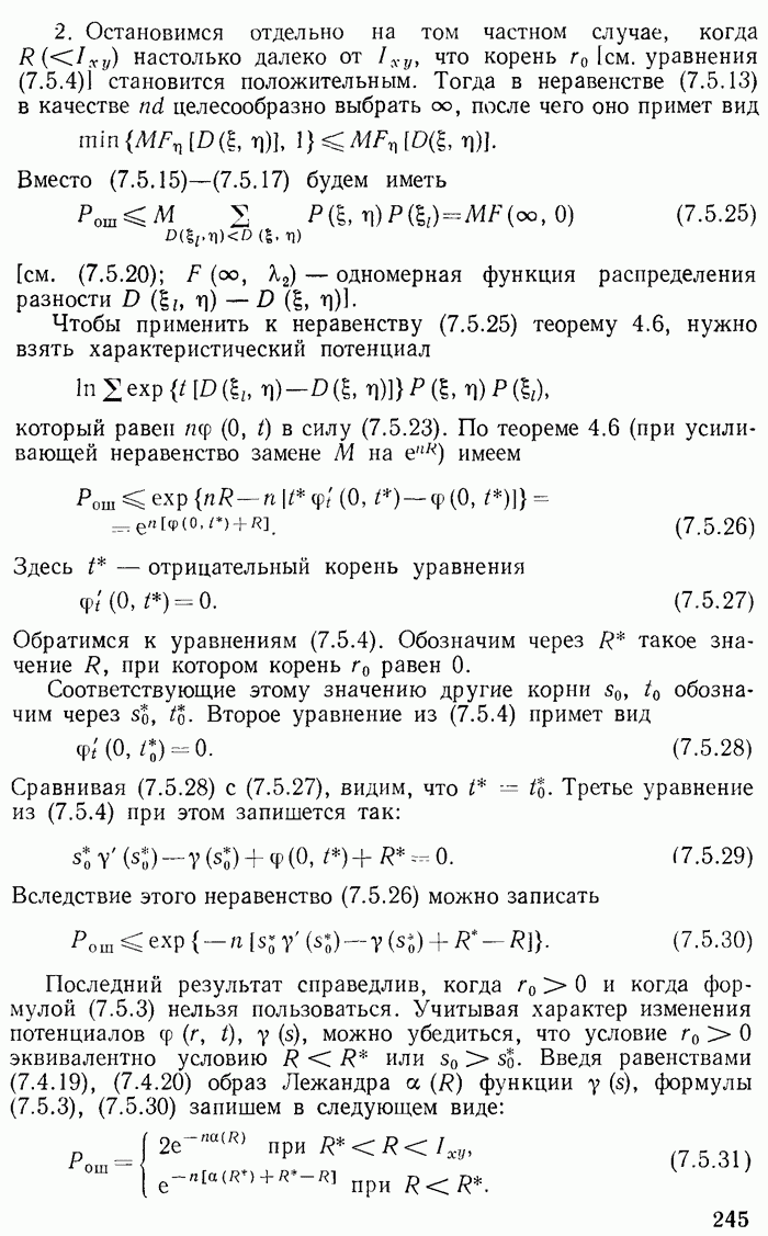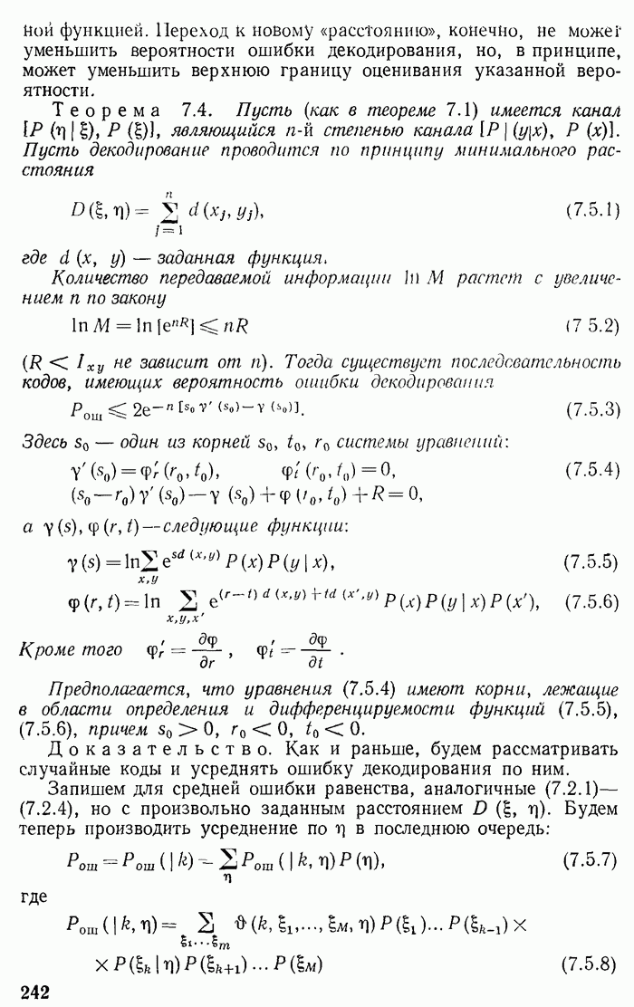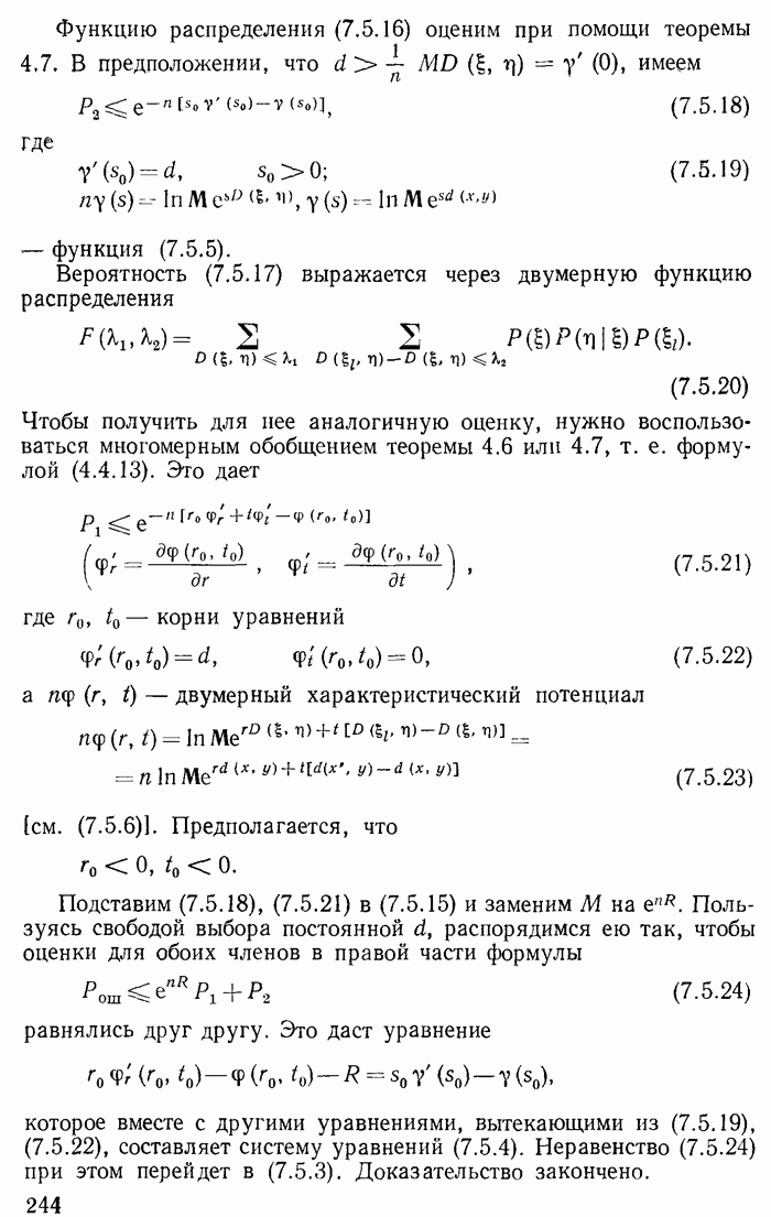 (7.4.3), позволяющий оценить вероятность ошибки декодирования (7.4.2) в соответствии с теоремой 7.3. Подставляя (8.5.2), (8.5.4) в (7.4.3), получаем