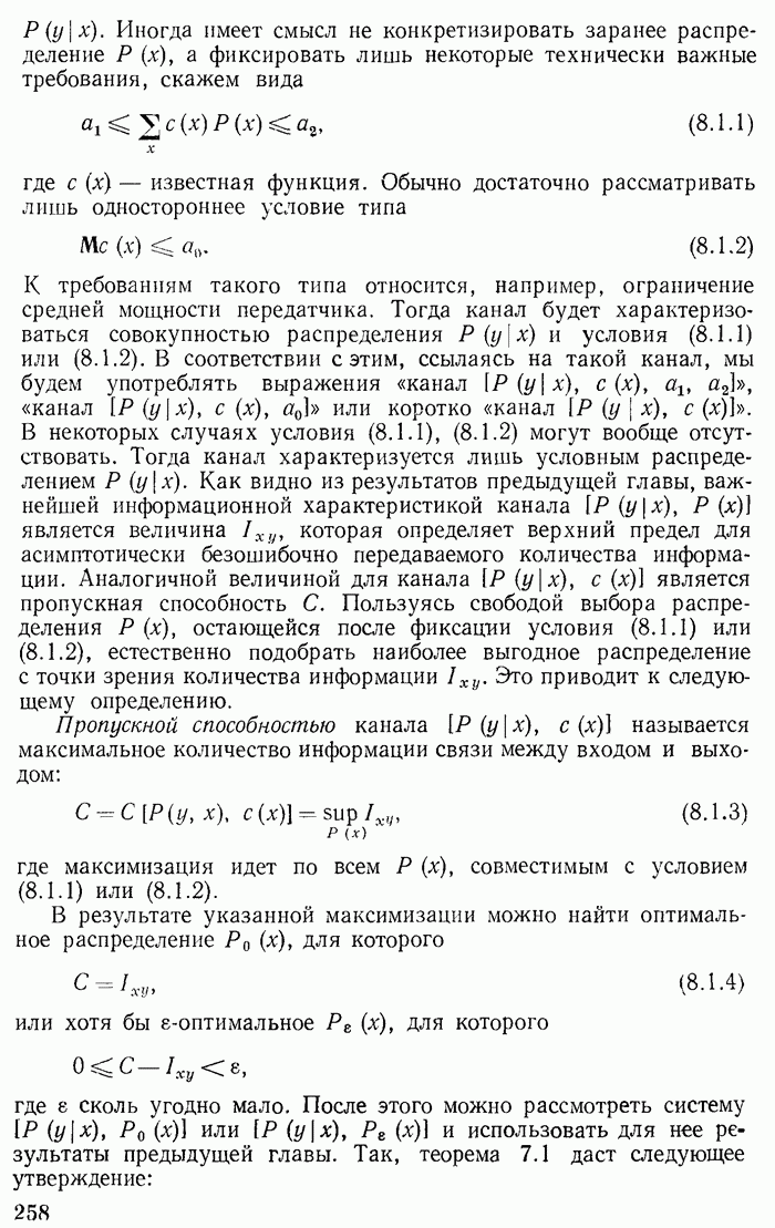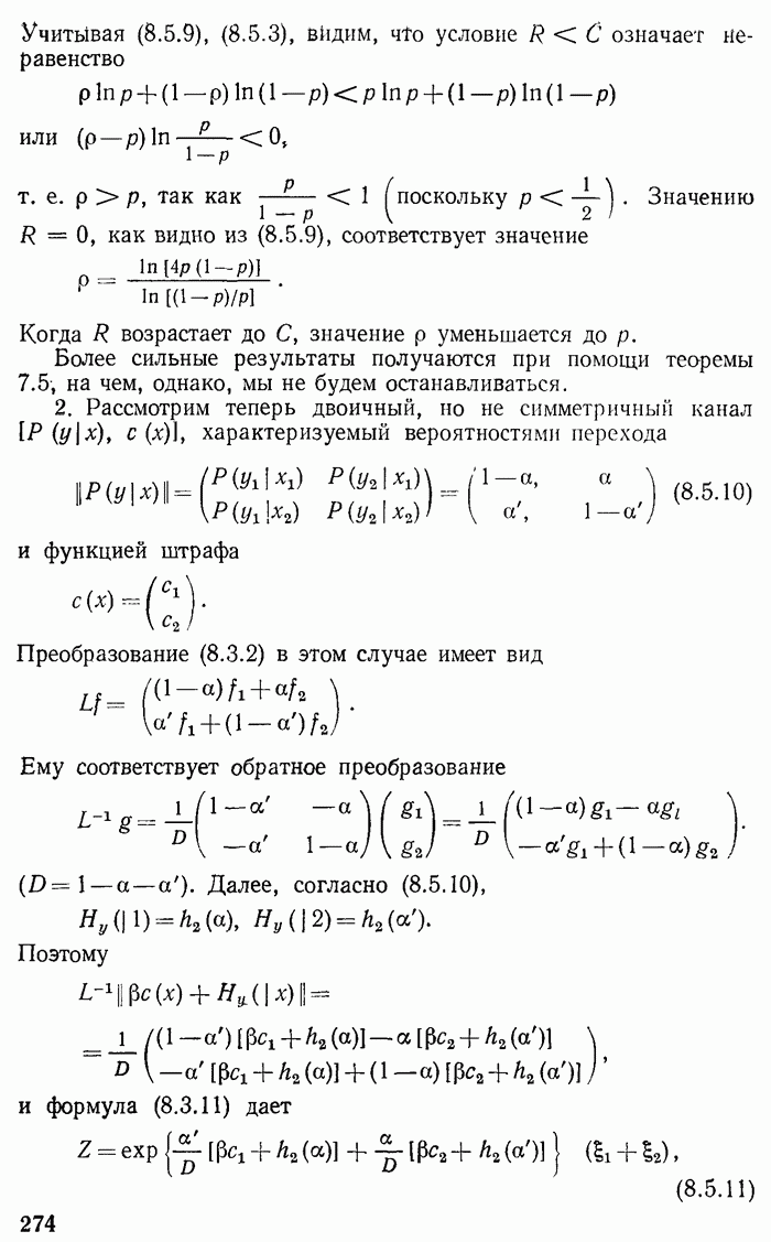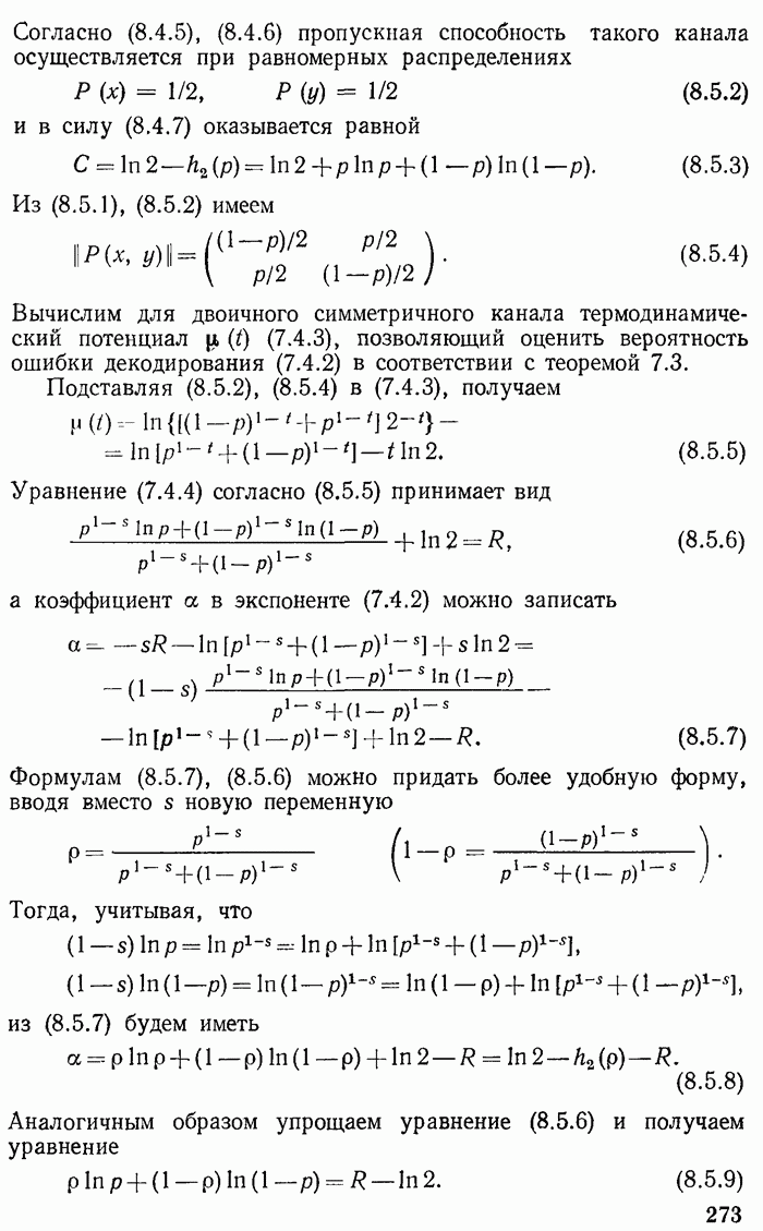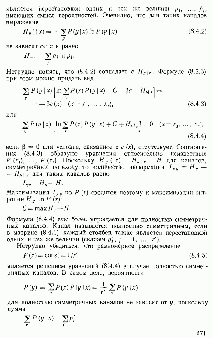 Согласно (8.4.5), (8.4.6) пропускная способность такого канала осуществляется при равномерных распределениях