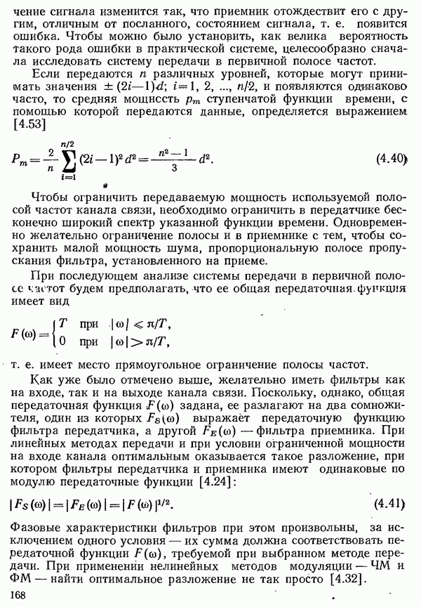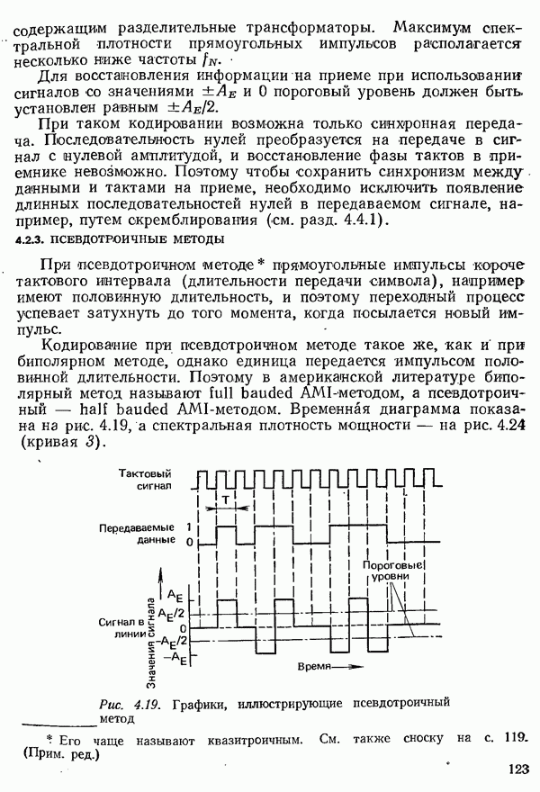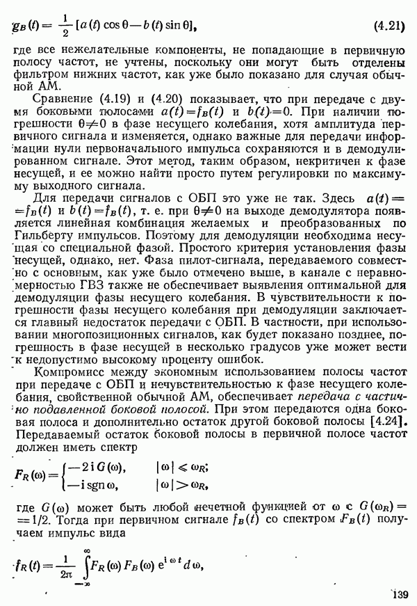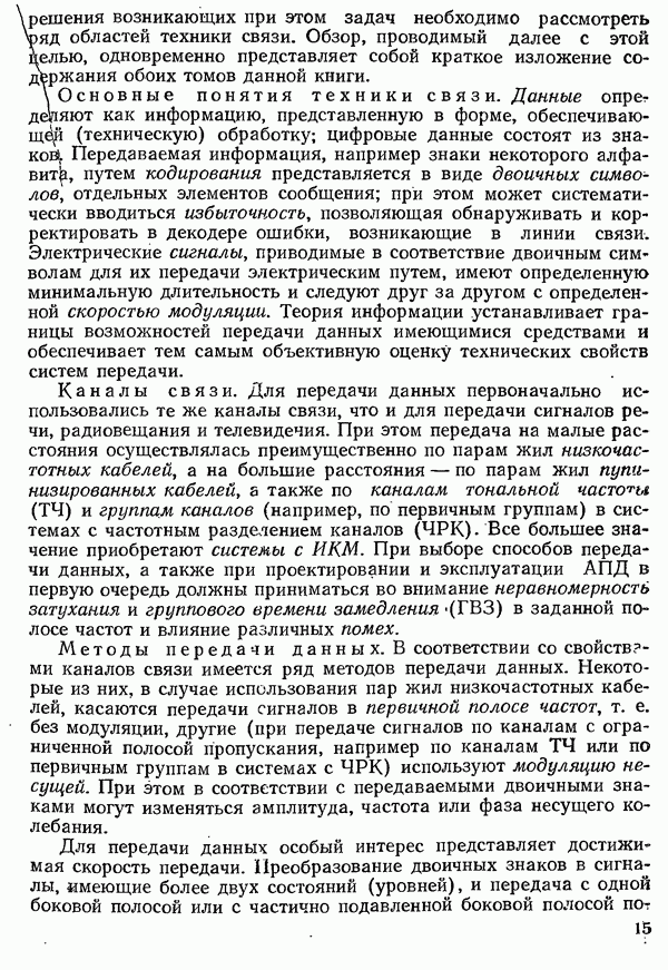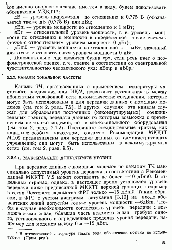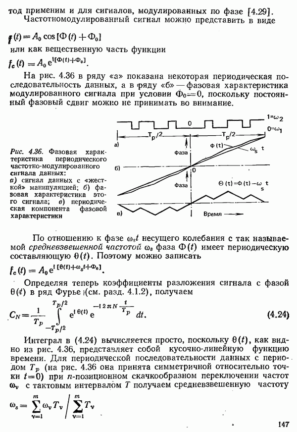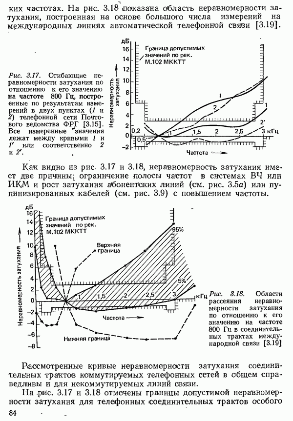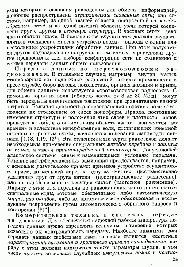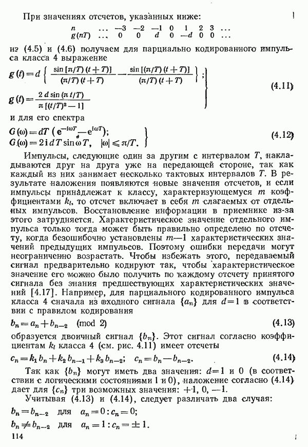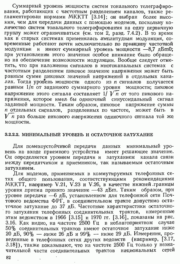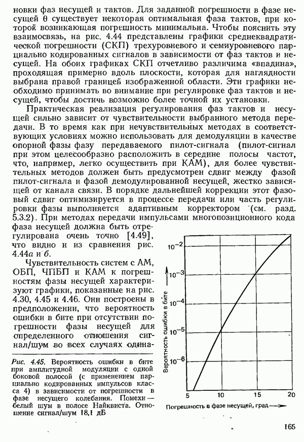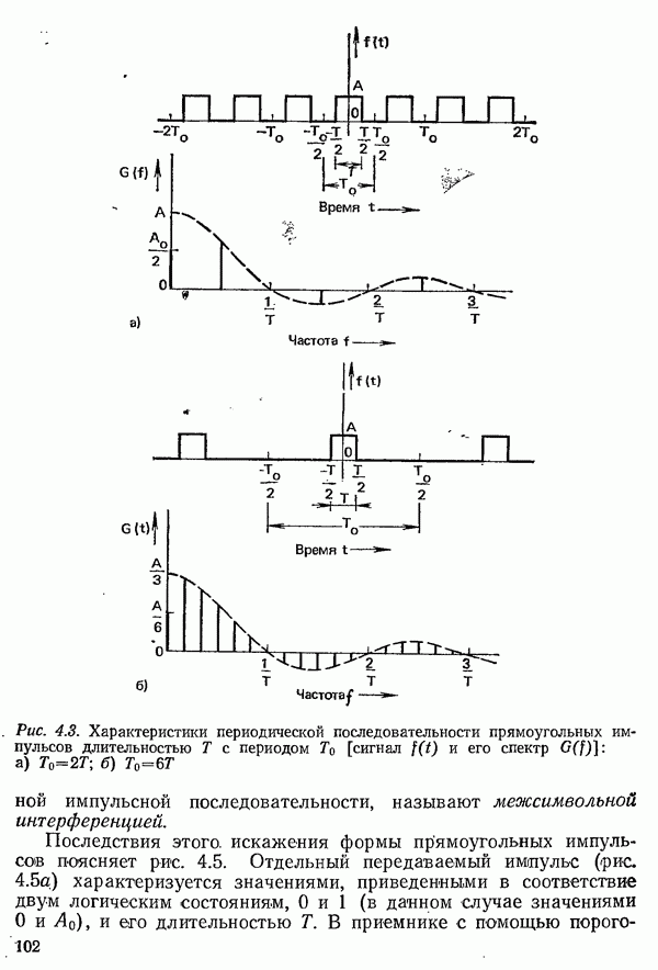 5.3. КОРРЕКЦИЯ ПРИНИМАЕМОГО СИГНАЛА ДАННЫХВ разд. 5.2 обсуждалось влияние характеристик канала связи на передачу сигналов данных. Влияние случайной помехи можно свести к минимуму в а счет надлежащей частотной избирательности цепей аппаратуры передачи данных. Характеристики и свойства каналов связи, практически постоянные во времени, — частотные характеристики затухания и ГВЗ, эхо, сдвиг частоты и периодическое дрожание фазы (джиттер фазы) — ведут к изменению формы принимаемого сигнала, а тем самым, в зависимости от метода и скорости передачи, к более сильной чувствительности к случайным помехам. Изменение формы передаваемого сигнала при высокой удельной скорости передачи может быть столь большим, что и без дополнительных помех безошибочная передача окажется уже невозможной. Так как упомянутые выше свойства канала связи практически постоянны, т. е. очень мало и медленно изменяются во времени, то их влияние можно в значительной степени скомпенсировать путем коррекции принимаемого сигнала. При этом следует различать коррекцию принимаемого аналогового сигнала и коррекцию восстановленного по нему двоичного сигнала данных. Прежде чем обсуждать коррекцию аналогового сигнала, коротко остановимся на коррекции двоичного сигнала данных. Как видно из рис. 4.42 (ем. разд. 4.4.1), показанный в строке 4 искаженно принятый аналоговый сигнал пересекает пороговый уровень с временными отклонениями В сетях передачи данных без синхронизации соединительный тракт содержит много последовательно включенных участков, которые работают асинхронно (см. том 2, разд. 11.1). Если ожидаемые во всем соединительном тракте краевые искажения слишком велики, то после одного или нескольких участков могут быть установлены корректоры, которые регенерируют знаки, передаваемые вместе со стартстопными элементами. Каждый принятый искаженный знак считывается при этом, начиная со стартового элемента, и неискаженным передается дальше. Такая коррекция зависит от скорости, а во многих случаях — и от знаков. При синхронной передаче сигнал данных, в принципе, корректируется. Наряду с тактовыми искажениями сигнала данных, при синхронной передаче необходимо принимать во внимание и тактовое дрожание. Тактовым дрожанием (тактовым джиттером) называют максимальное отклонение тактовых моментов времени от требуемых, отнесенное к требуемой длительности тактового интервала Принимаемый аналоговый сигнал данных, показанный на рис. 4.42, имеет такое искажение, которое еще не приводит к ошибочному решению. Ошибки в восстановленном двоичном сигнале, появляющиеся при более значительных искажениях, могут быть устранены лишь с помощью кодов, обнаруживающих или иоправляющих ошибки. Их можно также избежать, если корректировать уже аналоговый сигнал. Влияние незначительно и медленно меняющихся во времени характеристик канала связи на передаваемый сигнал данных основано, главным образом, на изменении с частотой затухания и ГВЗ. При этом учитывается также и эхо, которое согласно разд. 3.2.2.5 проявляется в периодических колебаниях частотных характеристик затухания и ГВЗ. В двух последующих разделах будут рассмотрены способы уменьшения влияния частотных характеристик канала за счет коррекции в частотной и временной областях. Методы уменьшения влияния периодического дрожания ф