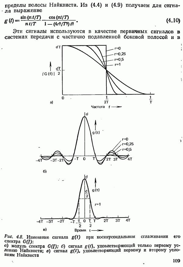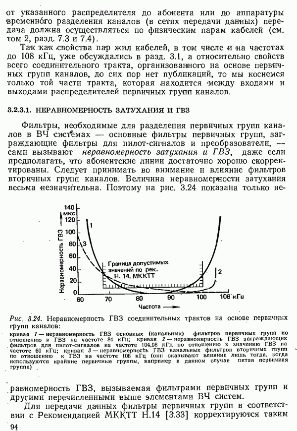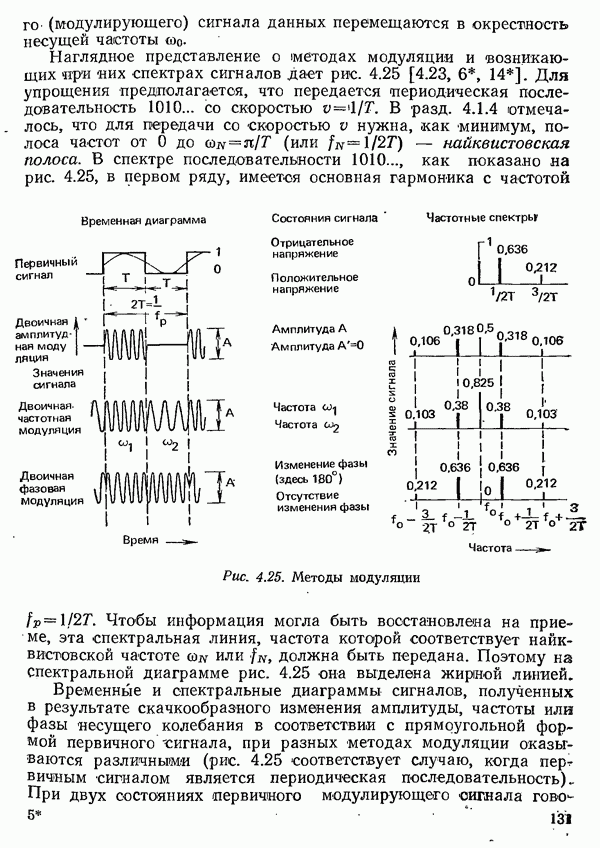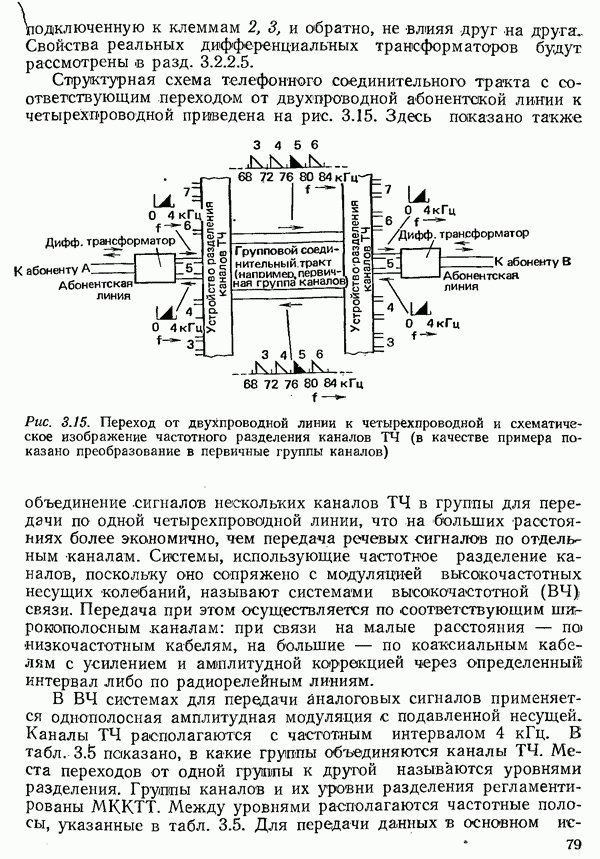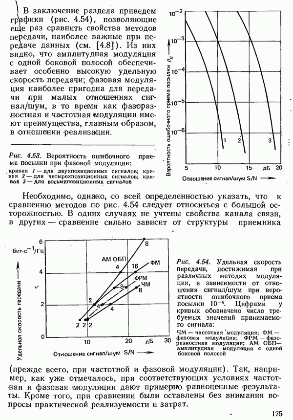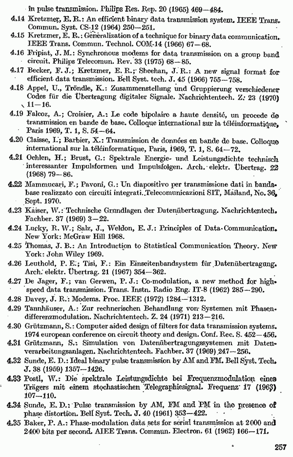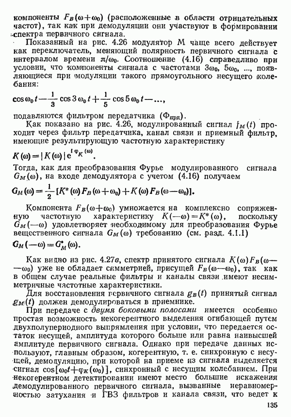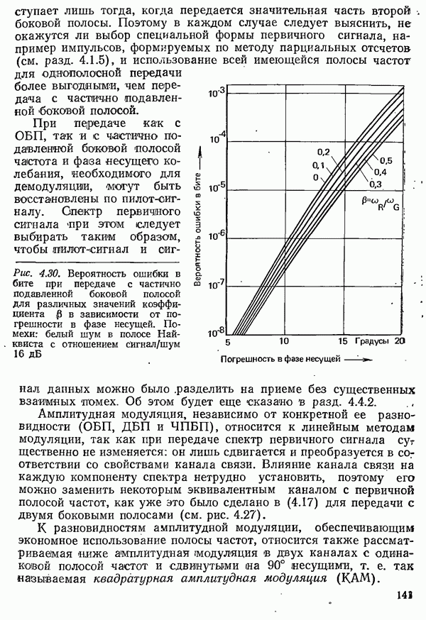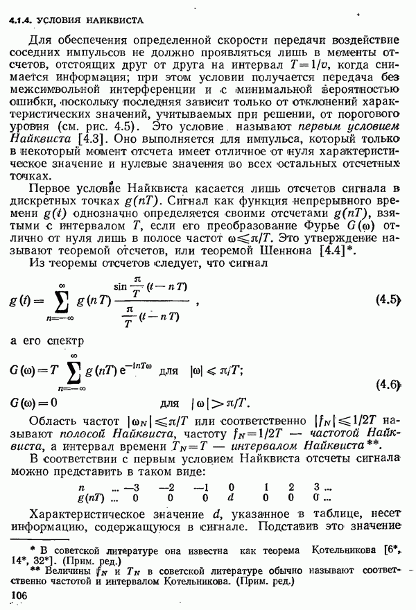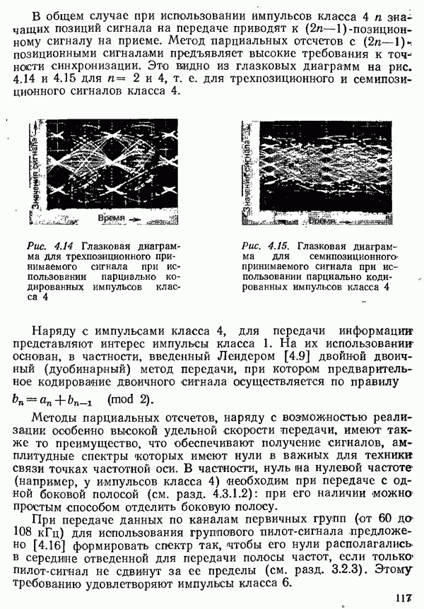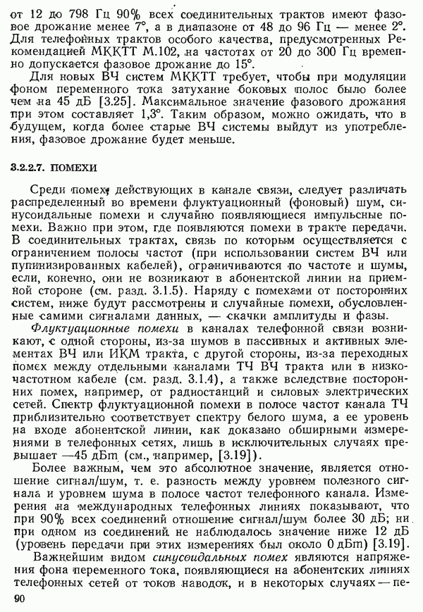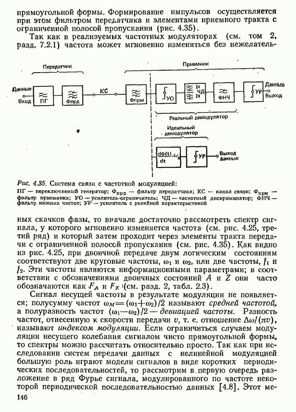 5.3. КОРРЕКЦИЯ ПРИНИМАЕМОГО СИГНАЛА ДАННЫХВ разд. 5.2 обсуждалось влияние характеристик канала связи на передачу сигналов данных. Влияние случайной помехи можно свести к минимуму в а счет надлежащей частотной избирательности цепей аппаратуры передачи данных. Характеристики и свойства каналов связи, практически постоянные во времени, — частотные характеристики затухания и ГВЗ, эхо, сдвиг частоты и периодическое дрожание фазы (джиттер фазы) — ведут к изменению формы принимаемого сигнала, а тем самым, в зависимости от метода и скорости передачи, к более сильной чувствительности к случайным помехам. Изменение формы передаваемого сигнала при высокой удельной скорости передачи может быть столь большим, что и без дополнительных помех безошибочная передача окажется уже невозможной. Так как упомянутые выше свойства канала связи практически постоянны, т. е. очень мало и медленно изменяются во времени, то их влияние можно в значительной степени скомпенсировать путем коррекции принимаемого сигнала. При этом следует различать коррекцию принимаемого аналогового сигнала и коррекцию восстановленного по нему двоичного сигнала данных. Прежде чем обсуждать коррекцию аналогового сигнала, коротко остановимся на коррекции двоичного сигнала данных. Как видно из рис. 4.42 (ем. разд. 4.4.1), показанный в строке 4 искаженно принятый аналоговый сигнал пересекает пороговый уровень с временными отклонениями В сетях передачи данных без синхронизации соединительный тракт содержит много последовательно включенных участков, которые работают асинхронно (см. том 2, разд. 11.1). Если ожидаемые во всем соединительном тракте краевые искажения слишком велики, то после одного или нескольких участков могут быть установлены корректоры, которые регенерируют знаки, передаваемые вместе со стартстопными элементами. Каждый принятый искаженный знак считывается при этом, начиная со стартового элемента, и неискаженным передается дальше. Такая коррекция зависит от скорости, а во многих случаях — и от знаков. При синхронной передаче сигнал данных, в принципе, корректируется. Наряду с тактовыми искажениями сигнала данных, при синхронной передаче необходимо принимать во внимание и тактовое дрожание. Тактовым дрожанием (тактовым джиттером) называют максимальное отклонение тактовых моментов времени от требуемых, отнесенное к требуемой длительности тактового интервала Принимаемый аналоговый сигнал данных, показанный на рис. 4.42, имеет такое искажение, которое еще не приводит к ошибочному решению. Ошибки в восстановленном двоичном сигнале, появляющиеся при более значительных искажениях, могут быть устранены лишь с помощью кодов, обнаруживающих или иоправляющих ошибки. Их можно также избежать, если корректировать уже аналоговый сигнал. Влияние незначительно и медленно меняющихся во времени характеристик канала связи на передаваемый сигнал данных основано, главным образом, на изменении с частотой затухания и ГВЗ. При этом учитывается также и эхо, которое согласно разд. 3.2.2.5 проявляется в периодических колебаниях частотных характеристик затухания и ГВЗ. В двух последующих разделах будут рассмотрены способы уменьшения влияния частотных характеристик канала за счет коррекции в частотной и временной областях. Методы уменьшения влияния периодического дрожания ф