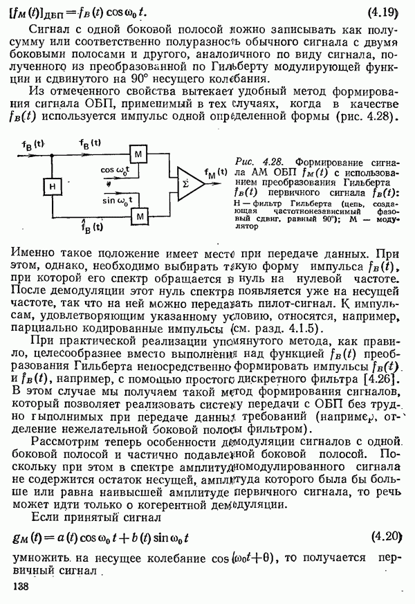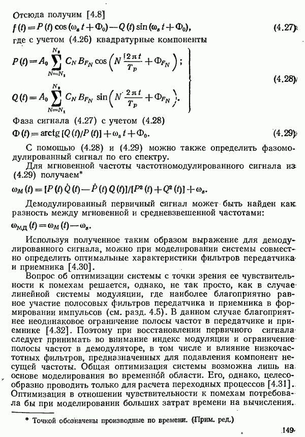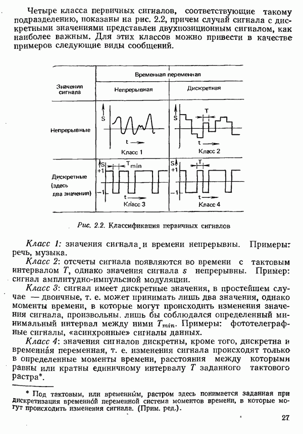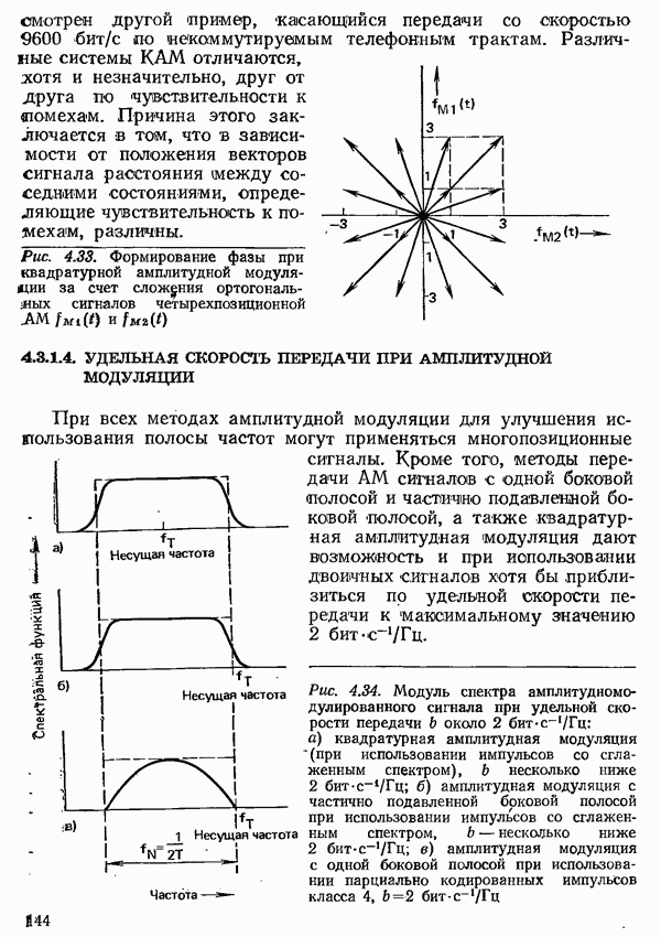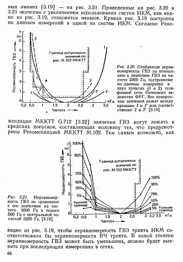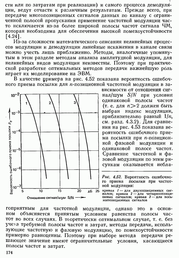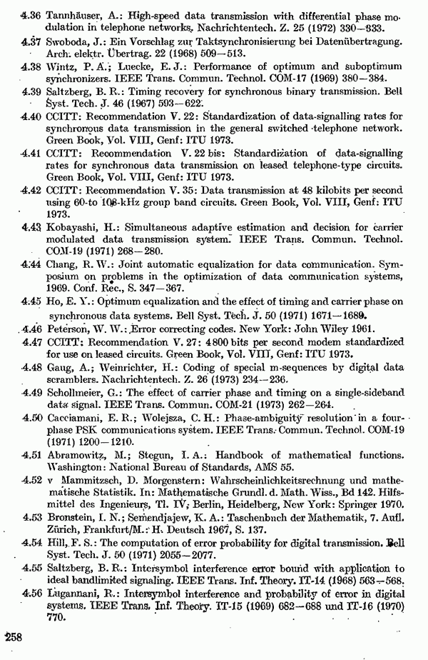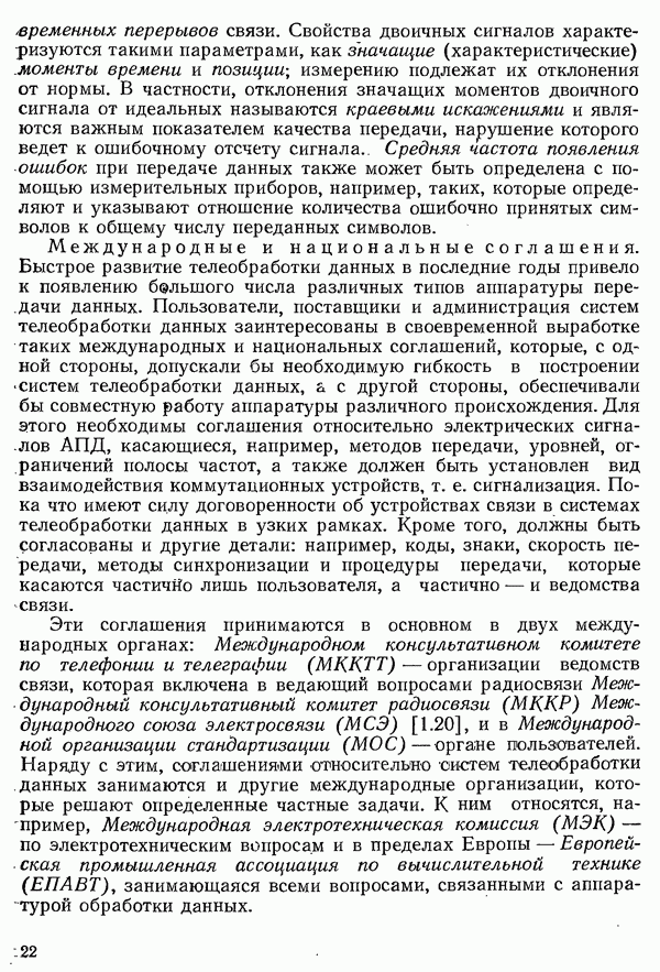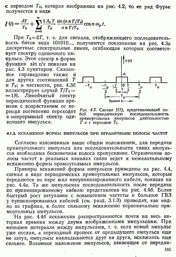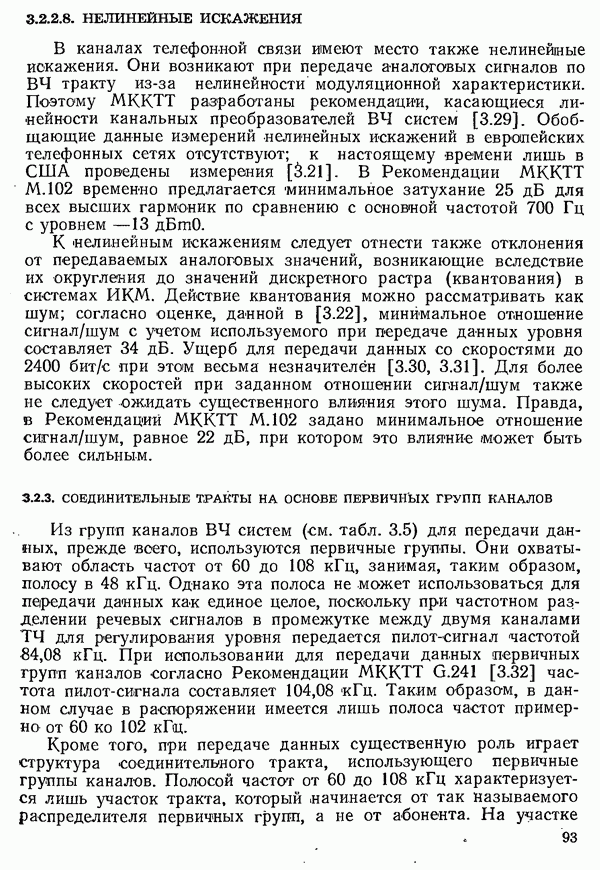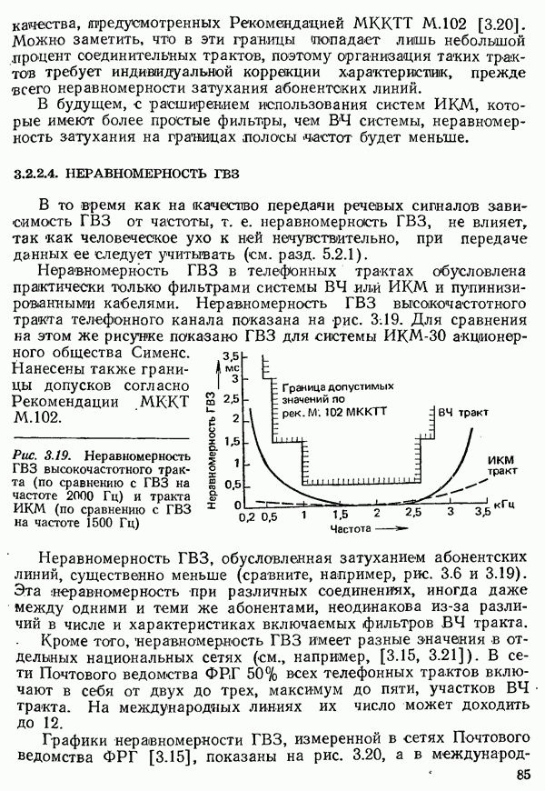 5.3. КОРРЕКЦИЯ ПРИНИМАЕМОГО СИГНАЛА ДАННЫХВ разд. 5.2 обсуждалось влияние характеристик канала связи на передачу сигналов данных. Влияние случайной помехи можно свести к минимуму в а счет надлежащей частотной избирательности цепей аппаратуры передачи данных. Характеристики и свойства каналов связи, практически постоянные во времени, — частотные характеристики затухания и ГВЗ, эхо, сдвиг частоты и периодическое дрожание фазы (джиттер фазы) — ведут к изменению формы принимаемого сигнала, а тем самым, в зависимости от метода и скорости передачи, к более сильной чувствительности к случайным помехам. Изменение формы передаваемого сигнала при высокой удельной скорости передачи может быть столь большим, что и без дополнительных помех безошибочная передача окажется уже невозможной. Так как упомянутые выше свойства канала связи практически постоянны, т. е. очень мало и медленно изменяются во времени, то их влияние можно в значительной степени скомпенсировать путем коррекции принимаемого сигнала. При этом следует различать коррекцию принимаемого аналогового сигнала и коррекцию восстановленного по нему двоичного сигнала данных. Прежде чем обсуждать коррекцию аналогового сигнала, коротко остановимся на коррекции двоичного сигнала данных. Как видно из рис. 4.42 (ем. разд. 4.4.1), показанный в строке 4 искаженно принятый аналоговый сигнал пересекает пороговый уровень с временными отклонениями В сетях передачи данных без синхронизации соединительный тракт содержит много последовательно включенных участков, которые работают асинхронно (см. том 2, разд. 11.1). Если ожидаемые во всем соединительном тракте краевые искажения слишком велики, то после одного или нескольких участков могут быть установлены корректоры, которые регенерируют знаки, передаваемые вместе со стартстопными элементами. Каждый принятый искаженный знак считывается при этом, начиная со стартового элемента, и неискаженным передается дальше. Такая коррекция зависит от скорости, а во многих случаях — и от знаков. При синхронной передаче сигнал данных, в принципе, корректируется. Наряду с тактовыми искажениями сигнала данных, при синхронной передаче необходимо принимать во внимание и тактовое дрожание. Тактовым дрожанием (тактовым джиттером) называют максимальное отклонение тактовых моментов времени от требуемых, отнесенное к требуемой длительности тактового интервала Принимаемый аналоговый сигнал данных, показанный на рис. 4.42, имеет такое искажение, которое еще не приводит к ошибочному решению. Ошибки в восстановленном двоичном сигнале, появляющиеся при более значительных искажениях, могут быть устранены лишь с помощью кодов, обнаруживающих или иоправляющих ошибки. Их можно также избежать, если корректировать уже аналоговый сигнал. Влияние незначительно и медленно меняющихся во времени характеристик канала связи на передаваемый сигнал данных основано, главным образом, на изменении с частотой затухания и ГВЗ. При этом учитывается также и эхо, которое согласно разд. 3.2.2.5 проявляется в периодических колебаниях частотных характеристик затухания и ГВЗ. В двух последующих разделах будут рассмотрены способы уменьшения влияния частотных характеристик канала за счет коррекции в частотной и временной областях. Методы уменьшения влияния периодического дрожания ф