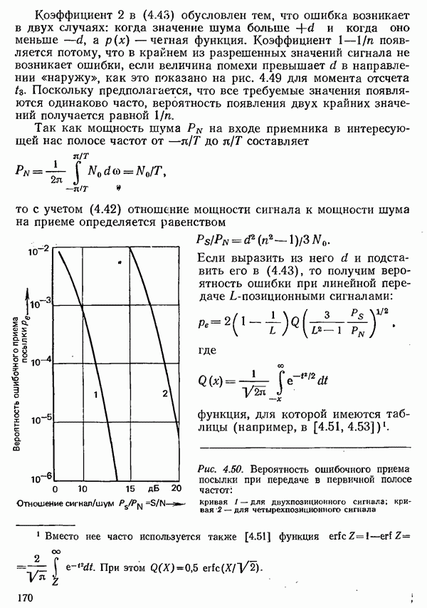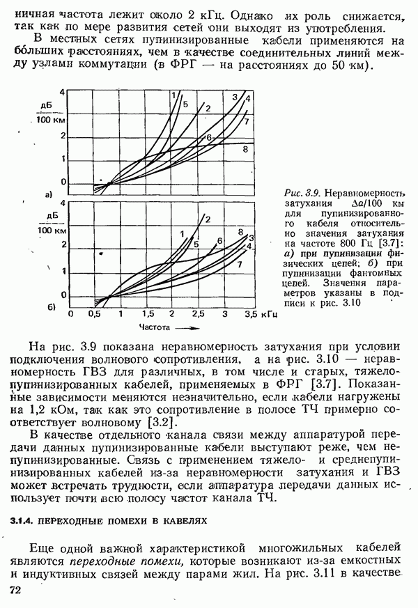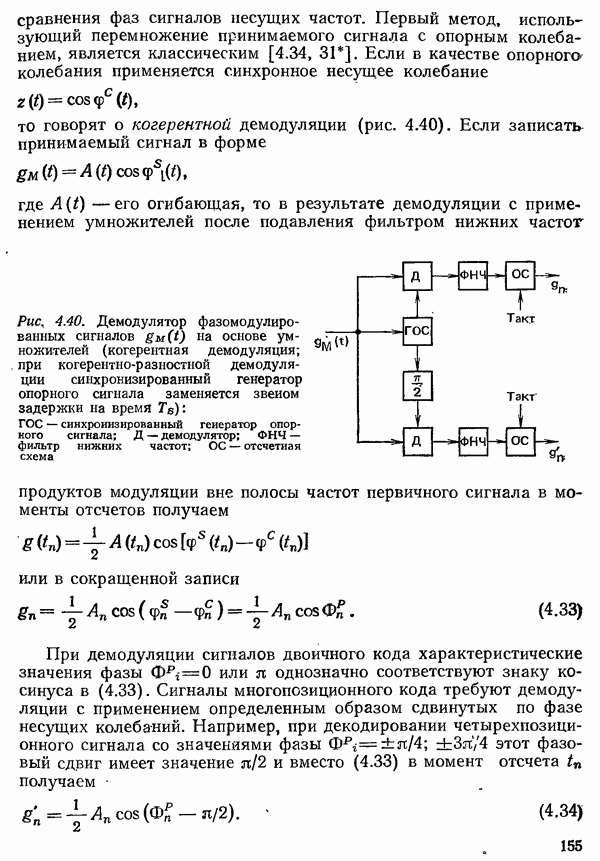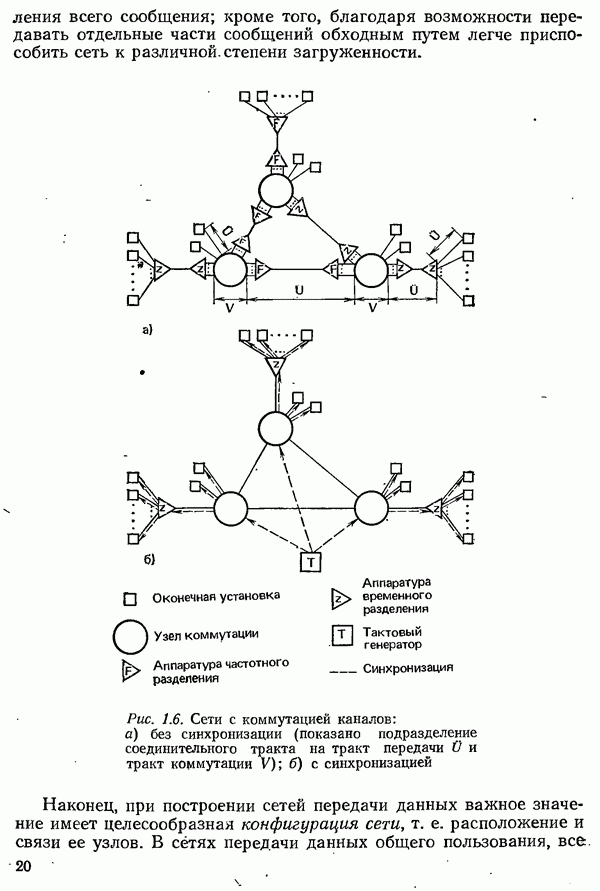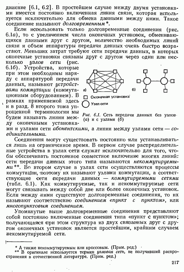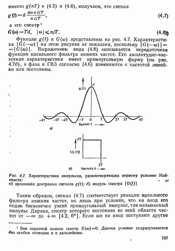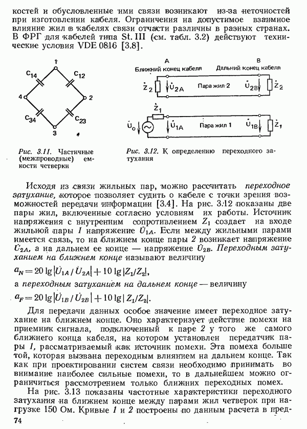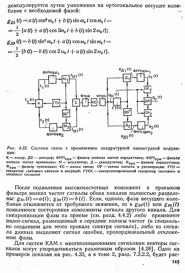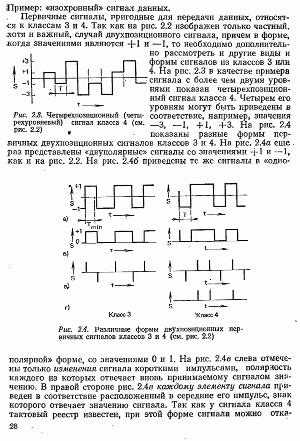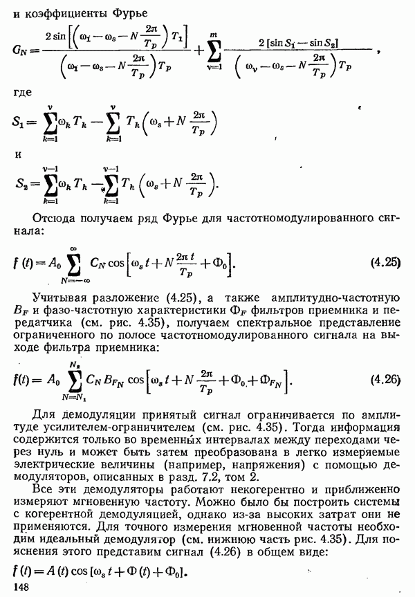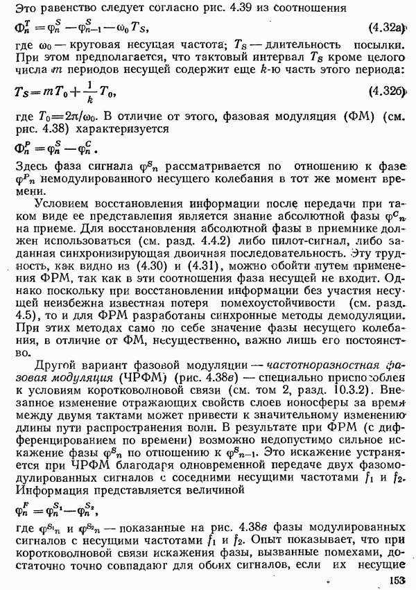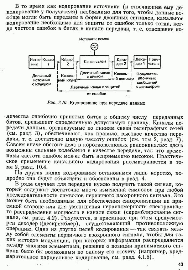 5.3. КОРРЕКЦИЯ ПРИНИМАЕМОГО СИГНАЛА ДАННЫХВ разд. 5.2 обсуждалось влияние характеристик канала связи на передачу сигналов данных. Влияние случайной помехи можно свести к минимуму в а счет надлежащей частотной избирательности цепей аппаратуры передачи данных. Характеристики и свойства каналов связи, практически постоянные во времени, — частотные характеристики затухания и ГВЗ, эхо, сдвиг частоты и периодическое дрожание фазы (джиттер фазы) — ведут к изменению формы принимаемого сигнала, а тем самым, в зависимости от метода и скорости передачи, к более сильной чувствительности к случайным помехам. Изменение формы передаваемого сигнала при высокой удельной скорости передачи может быть столь большим, что и без дополнительных помех безошибочная передача окажется уже невозможной. Так как упомянутые выше свойства канала связи практически постоянны, т. е. очень мало и медленно изменяются во времени, то их влияние можно в значительной степени скомпенсировать путем коррекции принимаемого сигнала. При этом следует различать коррекцию принимаемого аналогового сигнала и коррекцию восстановленного по нему двоичного сигнала данных. Прежде чем обсуждать коррекцию аналогового сигнала, коротко остановимся на коррекции двоичного сигнала данных. Как видно из рис. 4.42 (ем. разд. 4.4.1), показанный в строке 4 искаженно принятый аналоговый сигнал пересекает пороговый уровень с временными отклонениями В сетях передачи данных без синхронизации соединительный тракт содержит много последовательно включенных участков, которые работают асинхронно (см. том 2, разд. 11.1). Если ожидаемые во всем соединительном тракте краевые искажения слишком велики, то после одного или нескольких участков могут быть установлены корректоры, которые регенерируют знаки, передаваемые вместе со стартстопными элементами. Каждый принятый искаженный знак считывается при этом, начиная со стартового элемента, и неискаженным передается дальше. Такая коррекция зависит от скорости, а во многих случаях — и от знаков. При синхронной передаче сигнал данных, в принципе, корректируется. Наряду с тактовыми искажениями сигнала данных, при синхронной передаче необходимо принимать во внимание и тактовое дрожание. Тактовым дрожанием (тактовым джиттером) называют максимальное отклонение тактовых моментов времени от требуемых, отнесенное к требуемой длительности тактового интервала Принимаемый аналоговый сигнал данных, показанный на рис. 4.42, имеет такое искажение, которое еще не приводит к ошибочному решению. Ошибки в восстановленном двоичном сигнале, появляющиеся при более значительных искажениях, могут быть устранены лишь с помощью кодов, обнаруживающих или иоправляющих ошибки. Их можно также избежать, если корректировать уже аналоговый сигнал. Влияние незначительно и медленно меняющихся во времени характеристик канала связи на передаваемый сигнал данных основано, главным образом, на изменении с частотой затухания и ГВЗ. При этом учитывается также и эхо, которое согласно разд. 3.2.2.5 проявляется в периодических колебаниях частотных характеристик затухания и ГВЗ. В двух последующих разделах будут рассмотрены способы уменьшения влияния частотных характеристик канала за счет коррекции в частотной и временной областях. Методы уменьшения влияния периодического дрожания ф