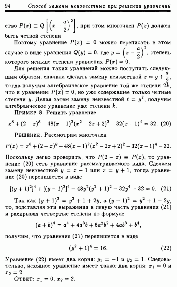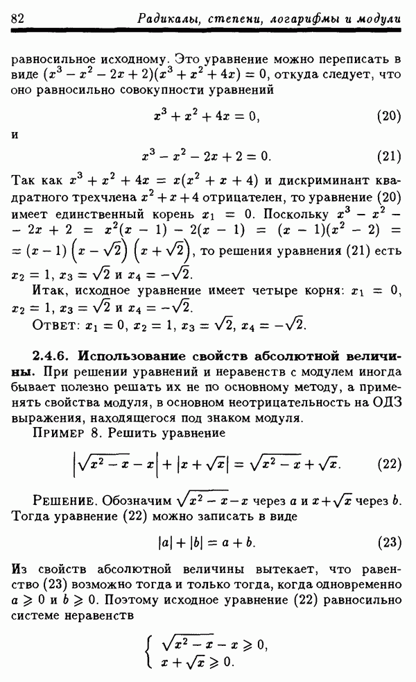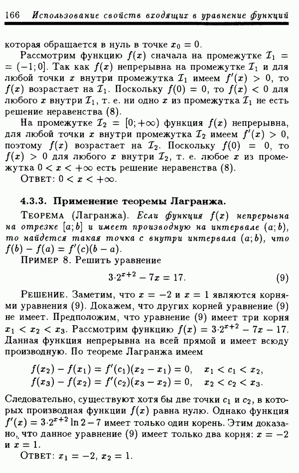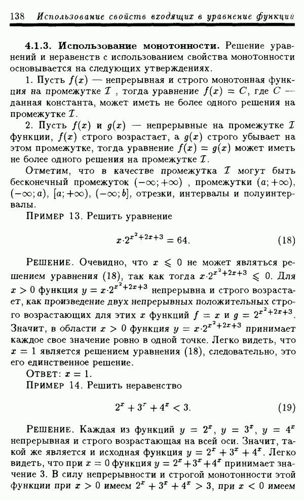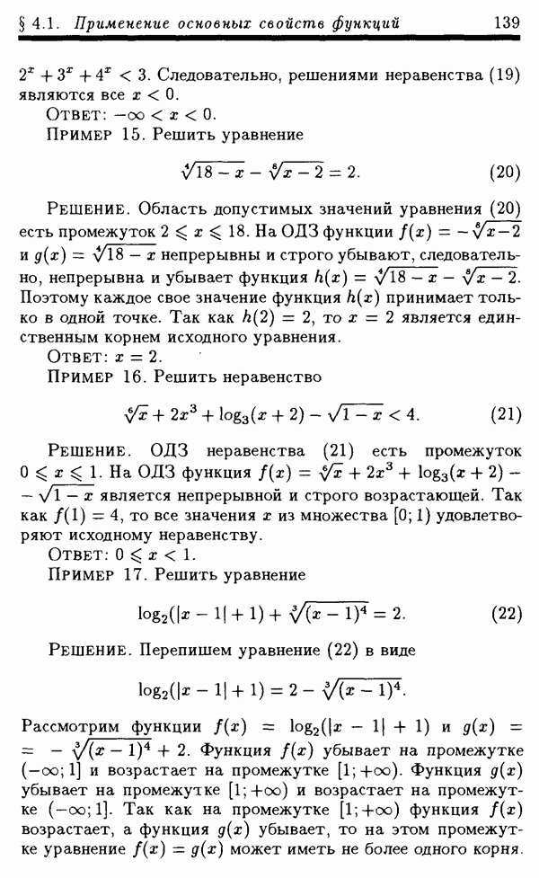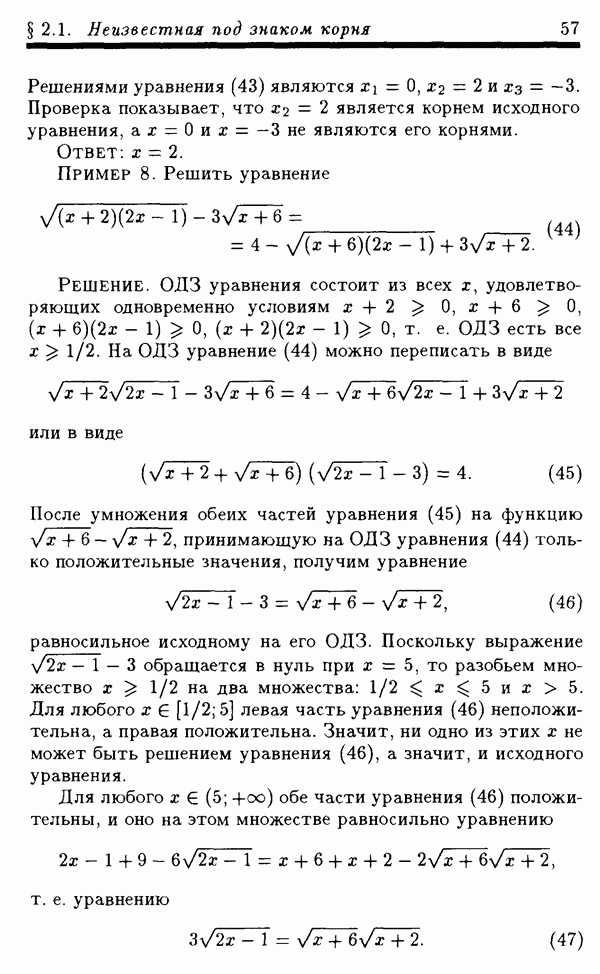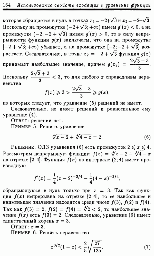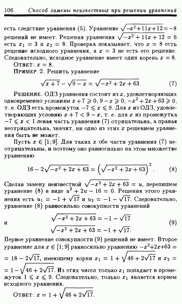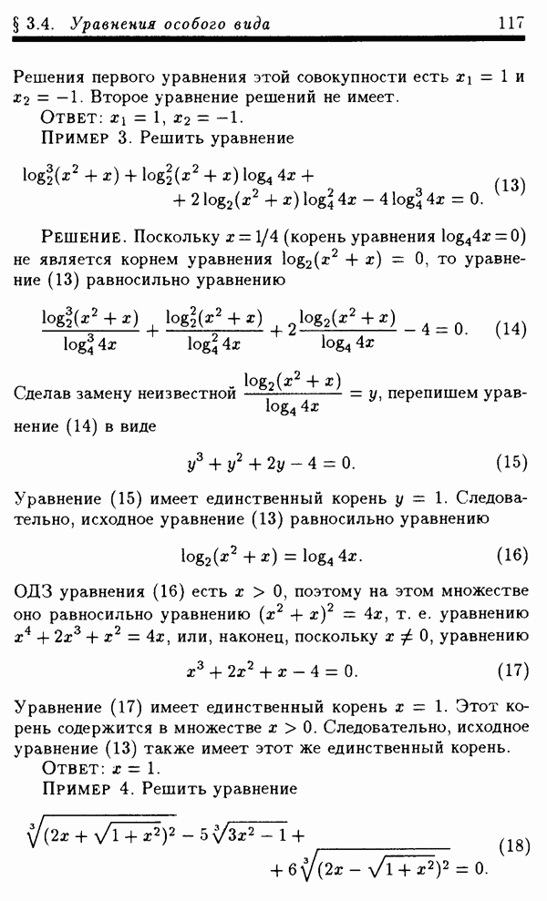 имеющеи единственное решение Подставляя эти числа в уравнение (14), убеждаемся в том, что они есть его решения. Ответ: Пример 8. Решить уравнение