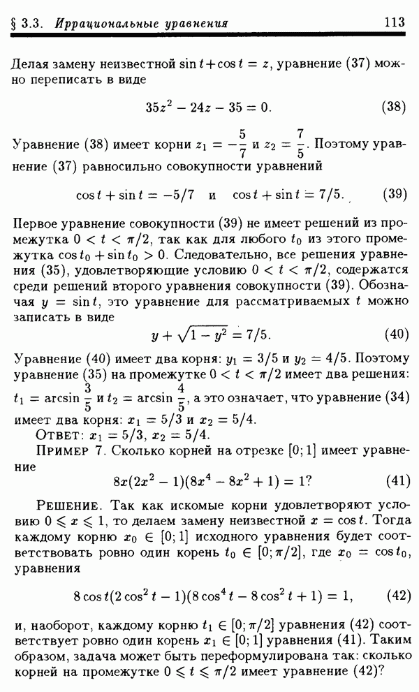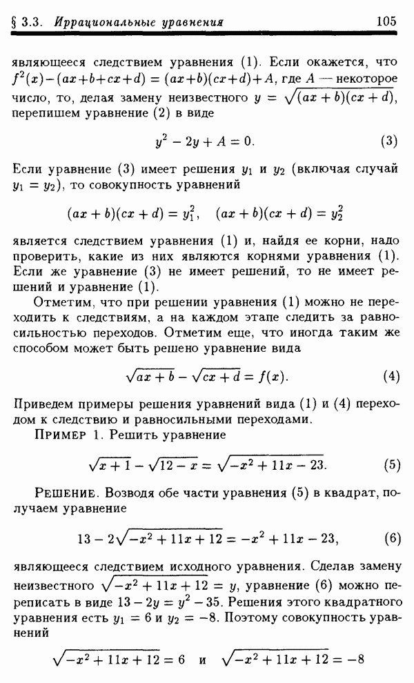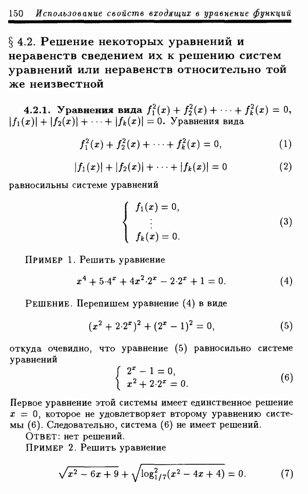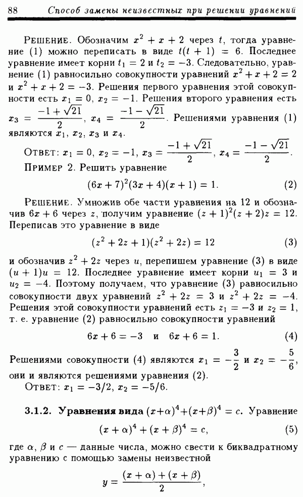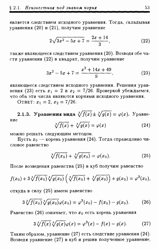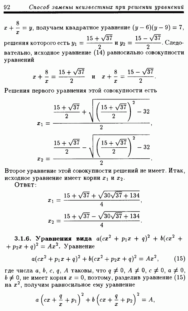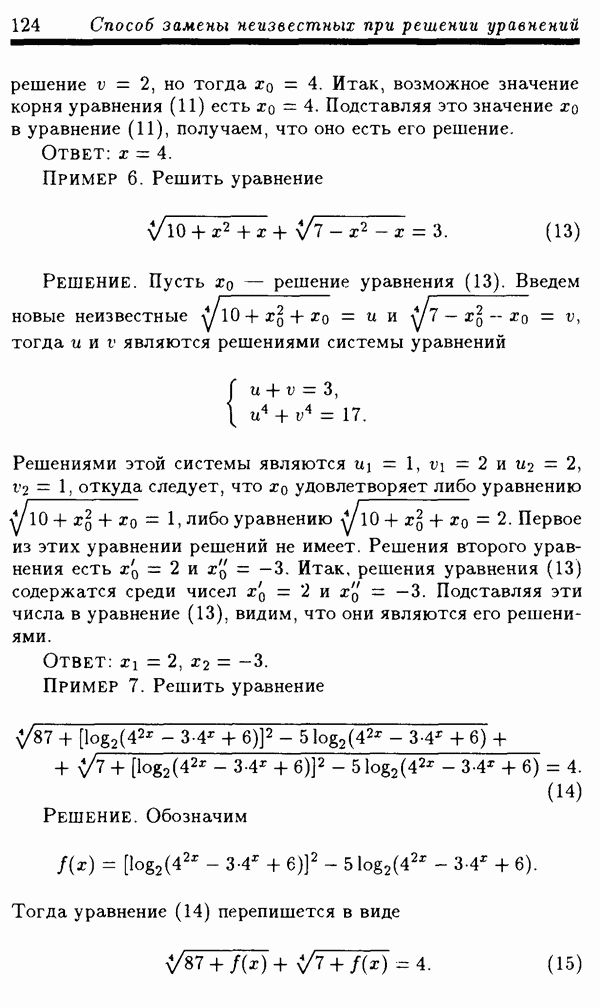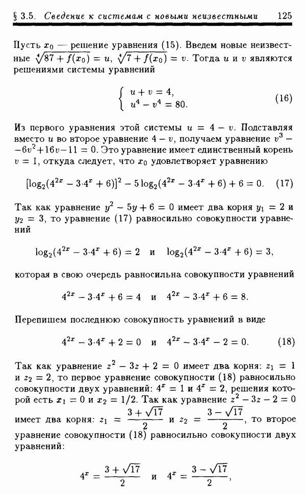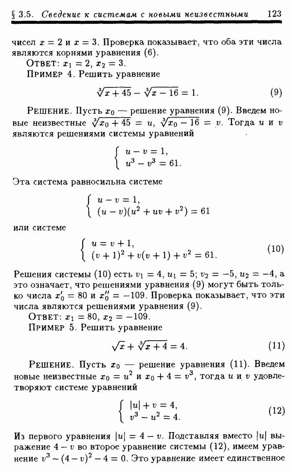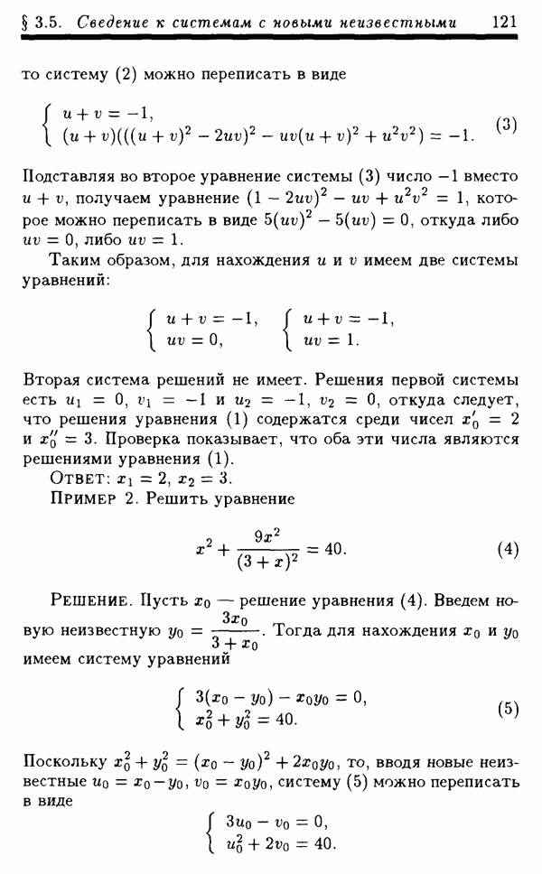 § 3.5. Решение некоторых уравнений сведением их к решению систем уравнений относительно новых неизвестныхВ некоторых случаях решение уравнения можно свести к решению системы уравнений относительно вводимых новых неизвестных. Этот прием мы проиллюстрируем на примерах. ПРИМЕР 1. Решить уравнение