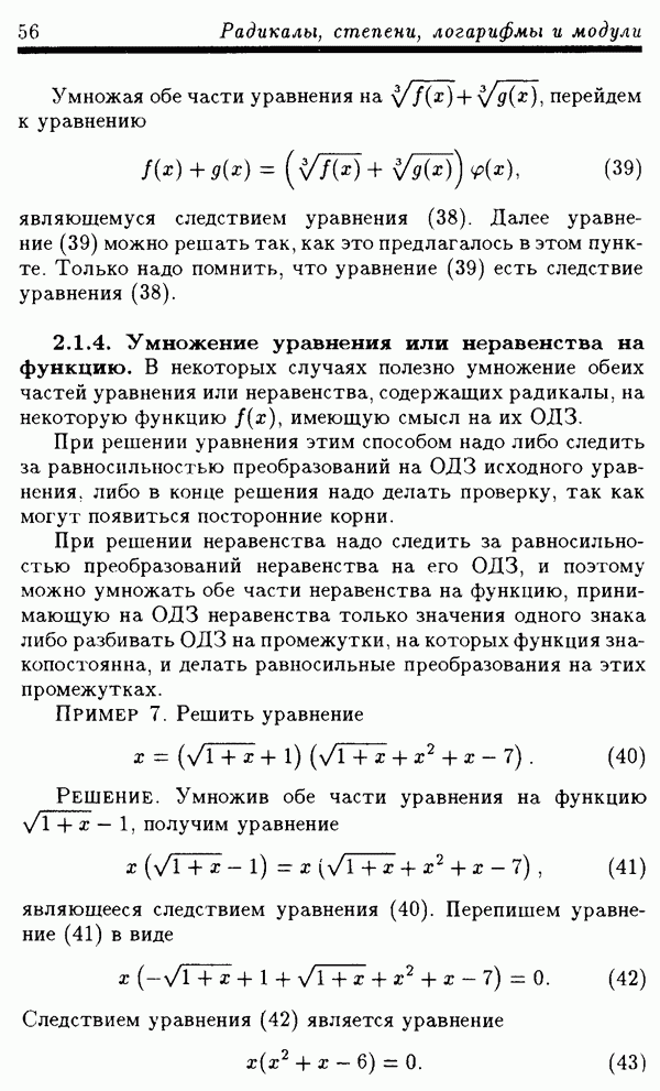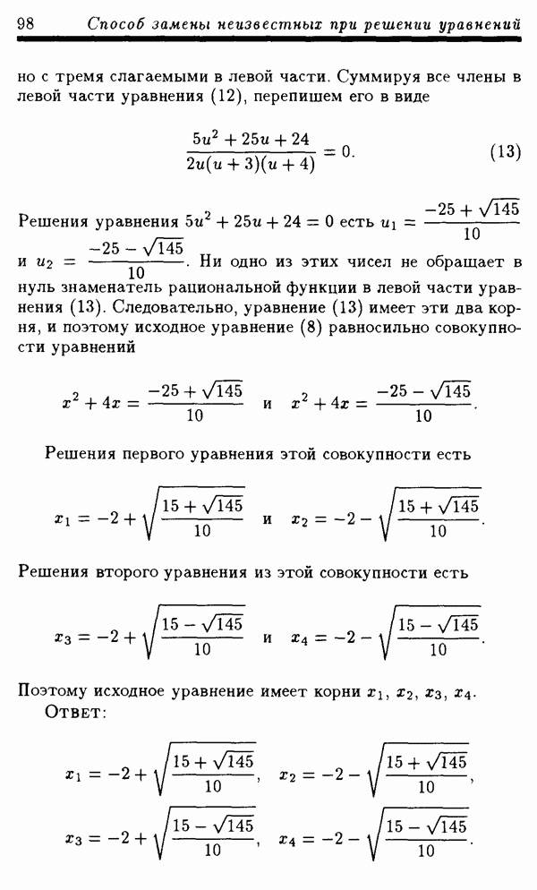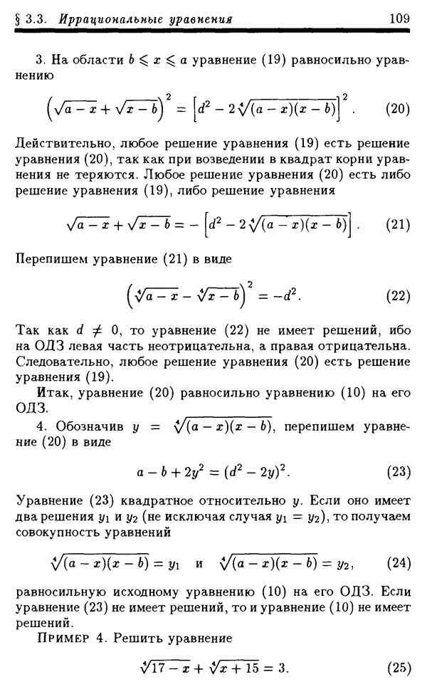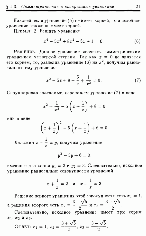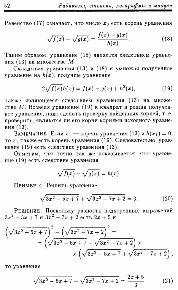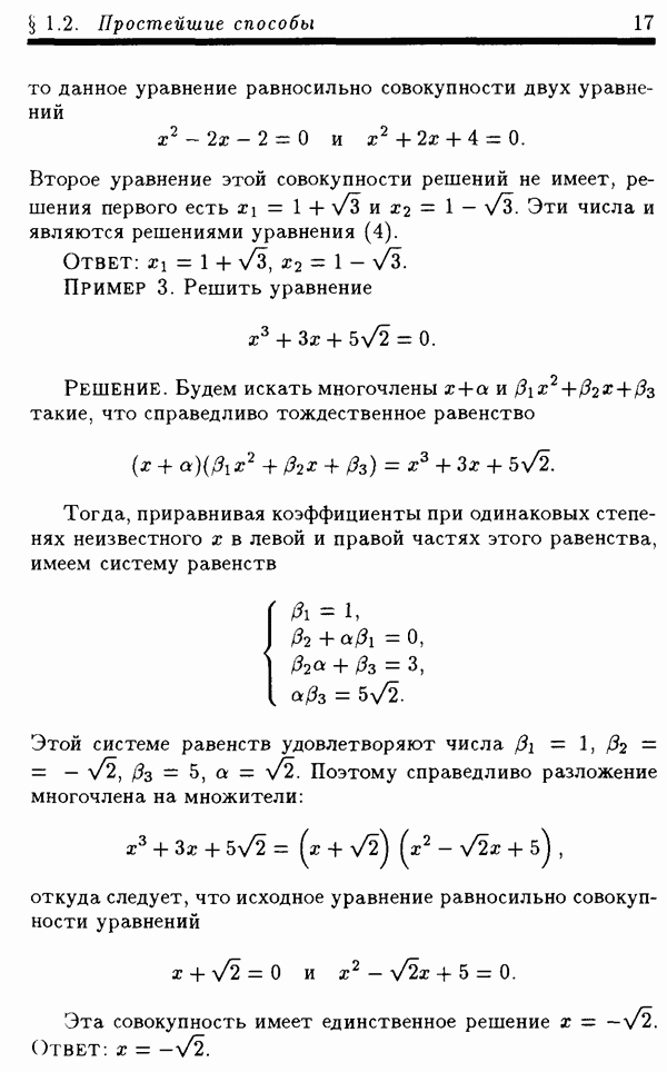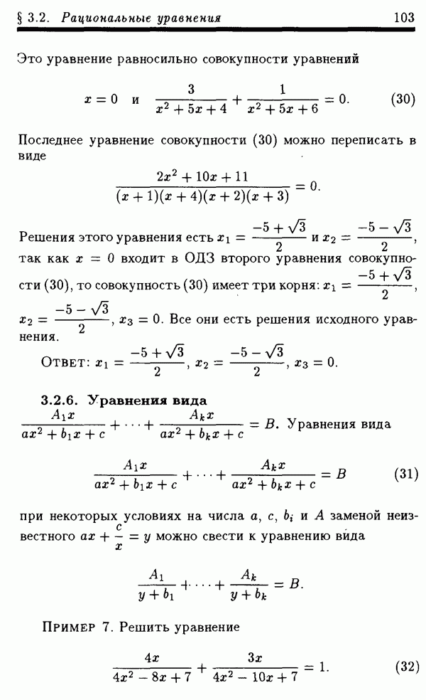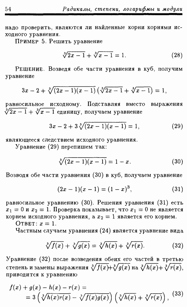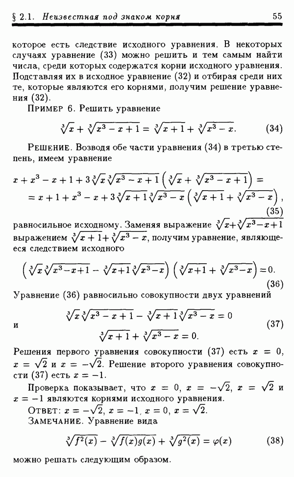 § 3.5. Решение некоторых уравнений сведением их к решению систем уравнений относительно новых неизвестныхВ некоторых случаях решение уравнения можно свести к решению системы уравнений относительно вводимых новых неизвестных. Этот прием мы проиллюстрируем на примерах. ПРИМЕР 1. Решить уравнение