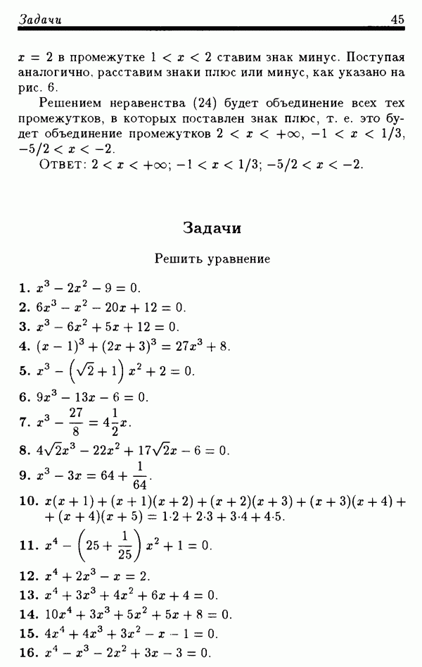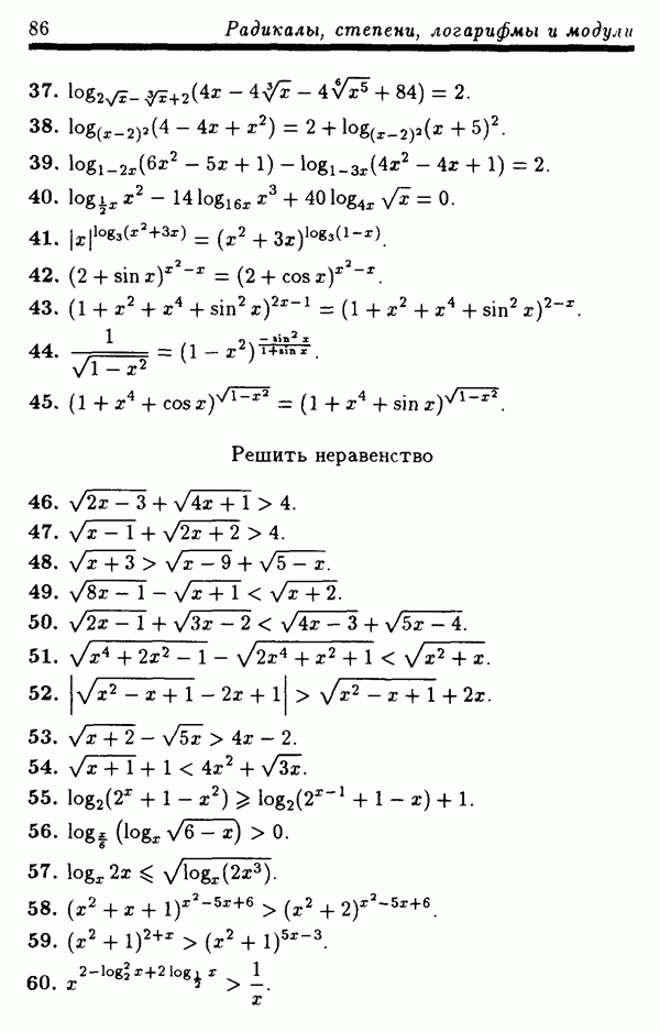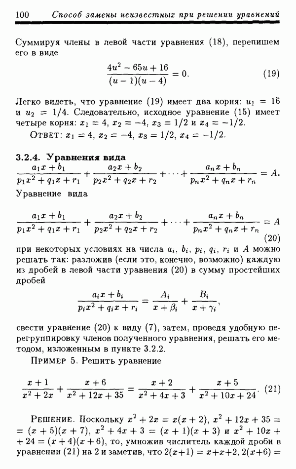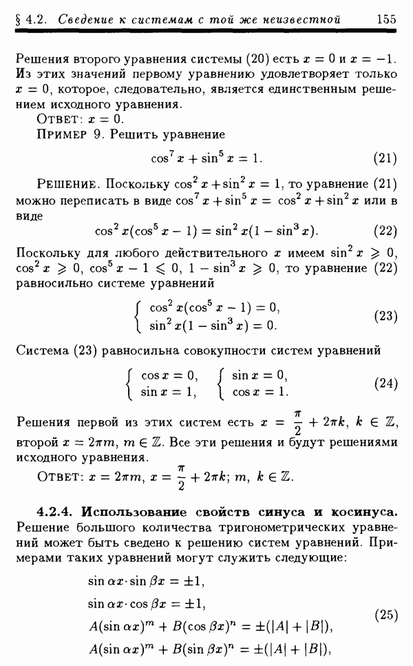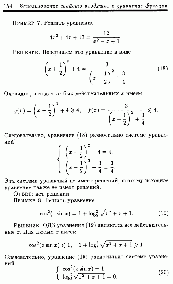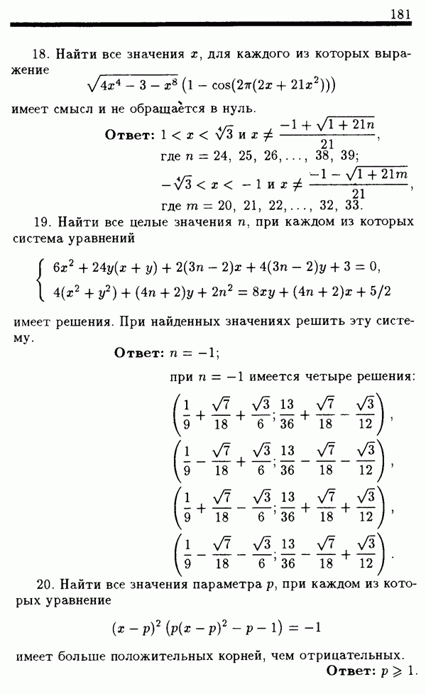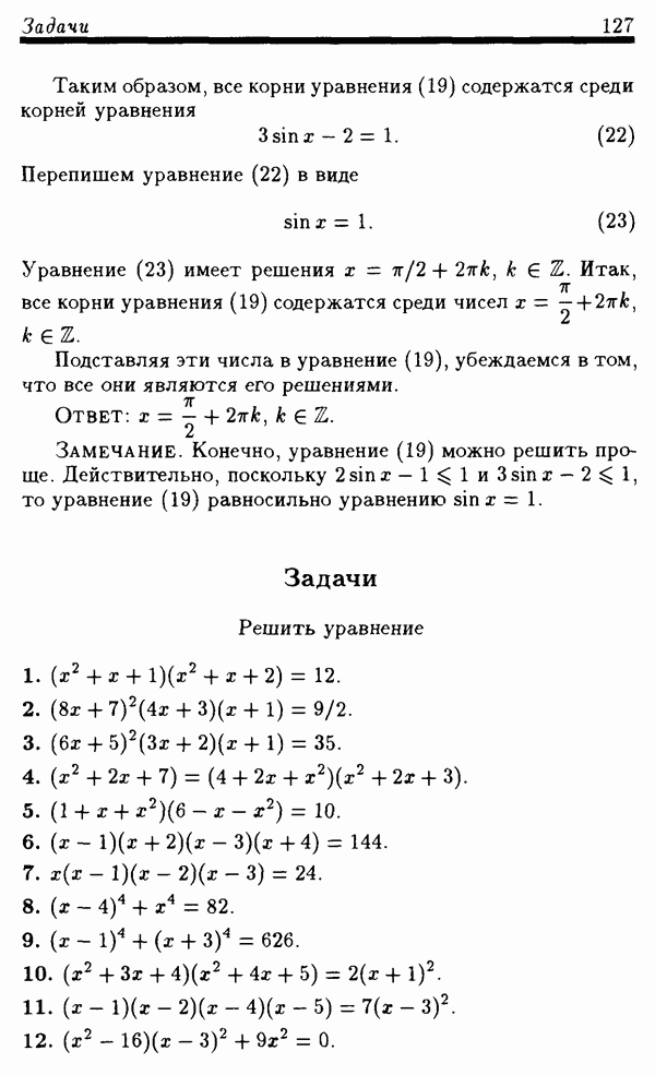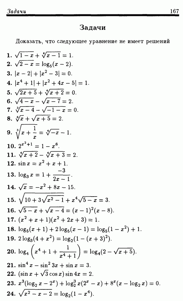 Уравнение (23) имеет решения Подставляя эти числа в уравнение (19), убеждаемся в том, что все они являются его решениями. Ответ: Замечание. Конечно, уравнение (19) можно решить проще. Действительно, поскольку Задачи(см. скан) (см. скан) (см. скан) (см. скан)