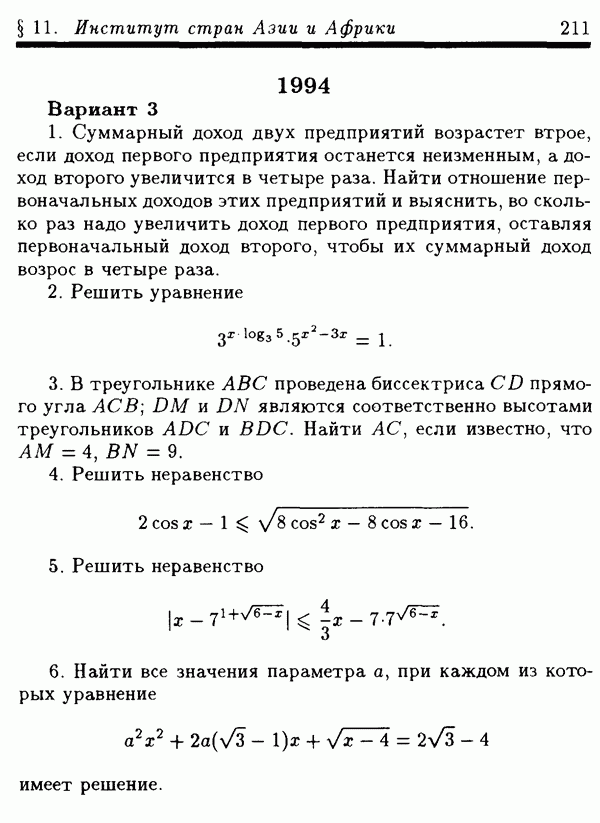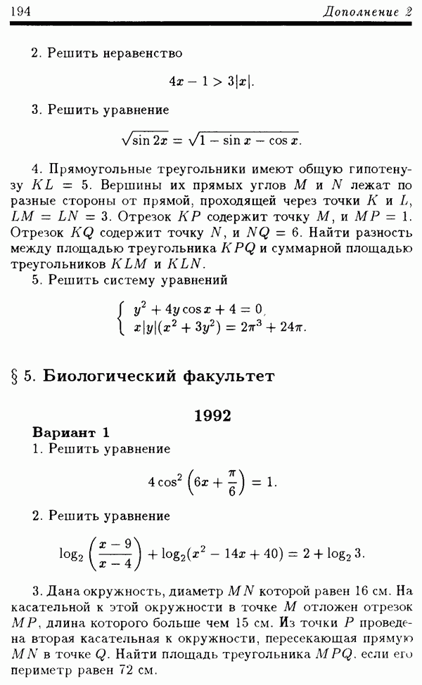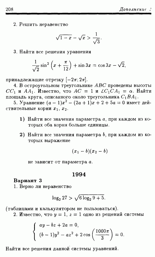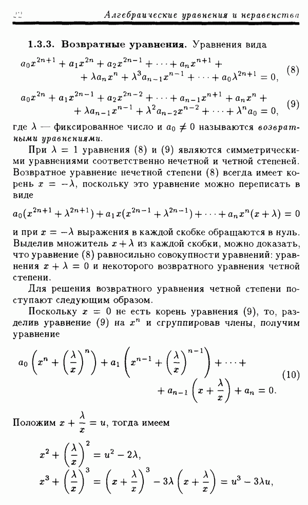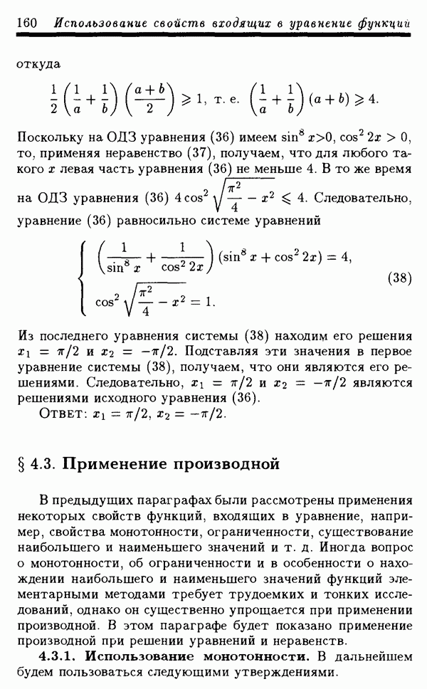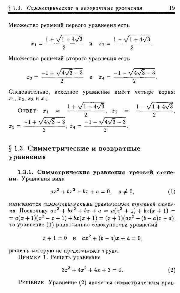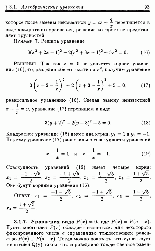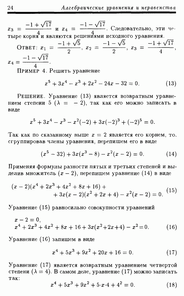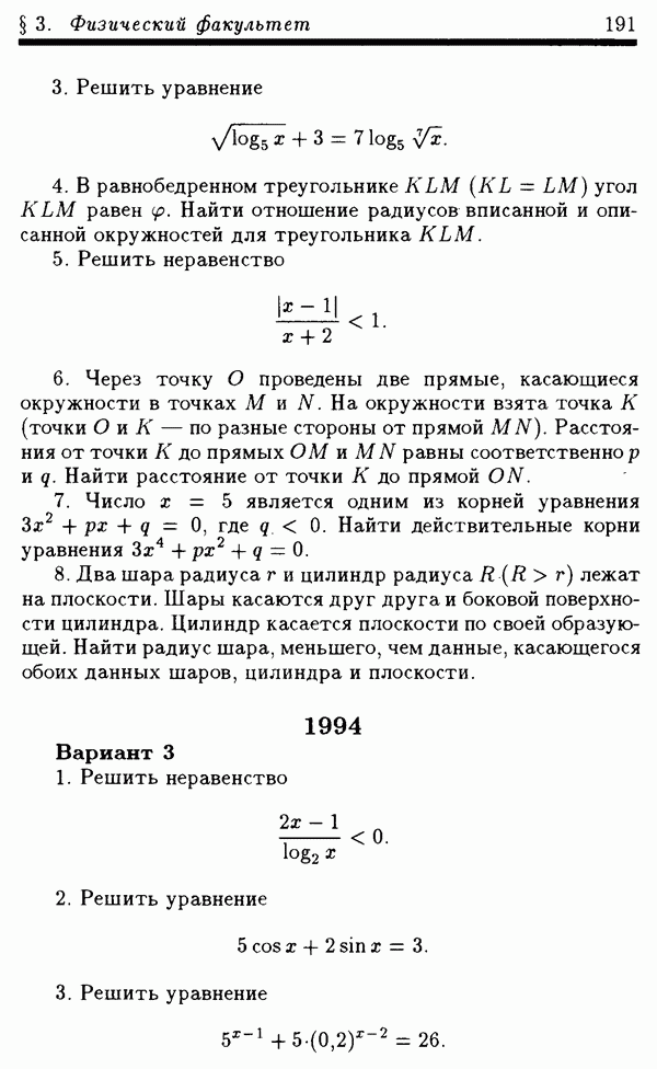 Уравнение (23) имеет решения Подставляя эти числа в уравнение (19), убеждаемся в том, что все они являются его решениями. Ответ: Замечание. Конечно, уравнение (19) можно решить проще. Действительно, поскольку Задачи(см. скан) (см. скан) (см. скан) (см. скан)