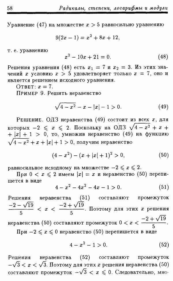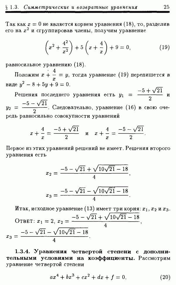 Ясно, что надо искать лишь те корни уравнения (20), которые удовлетворяют условию Таким образом, все корни уравнения (19) содержатся среди корней уравнения