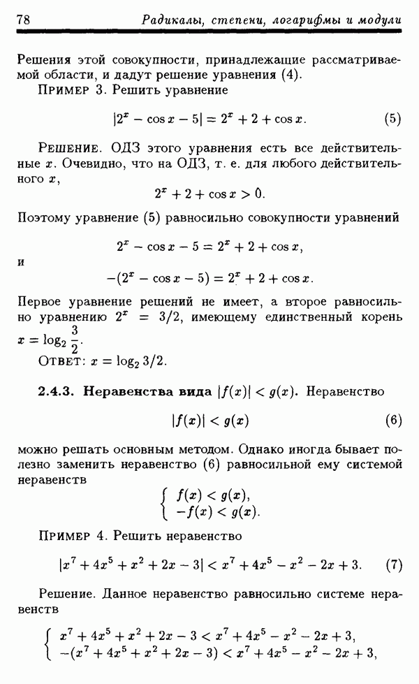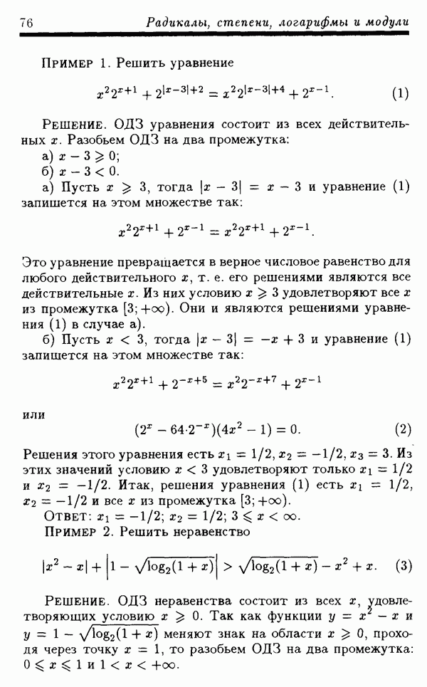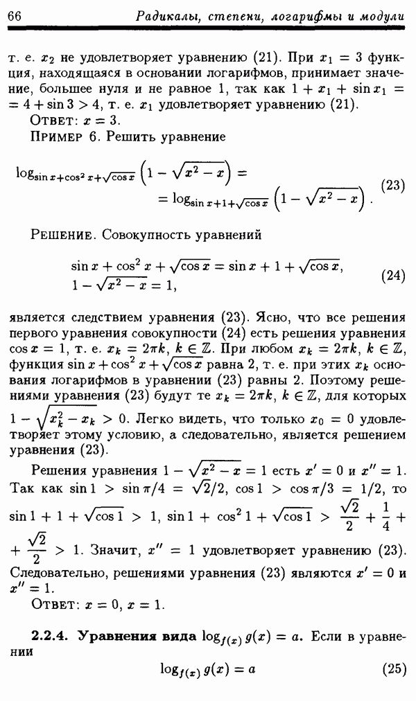 Решения первой из этих систем есть Проверка показывает, что эти числа являются решениями уравнения (4). Ответ: Пример 3. Решить уравнение