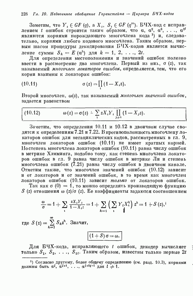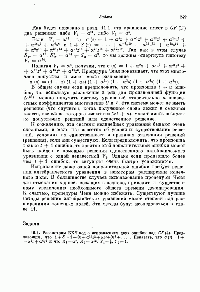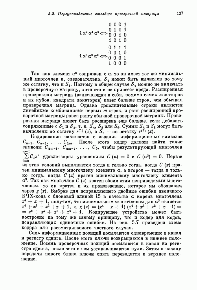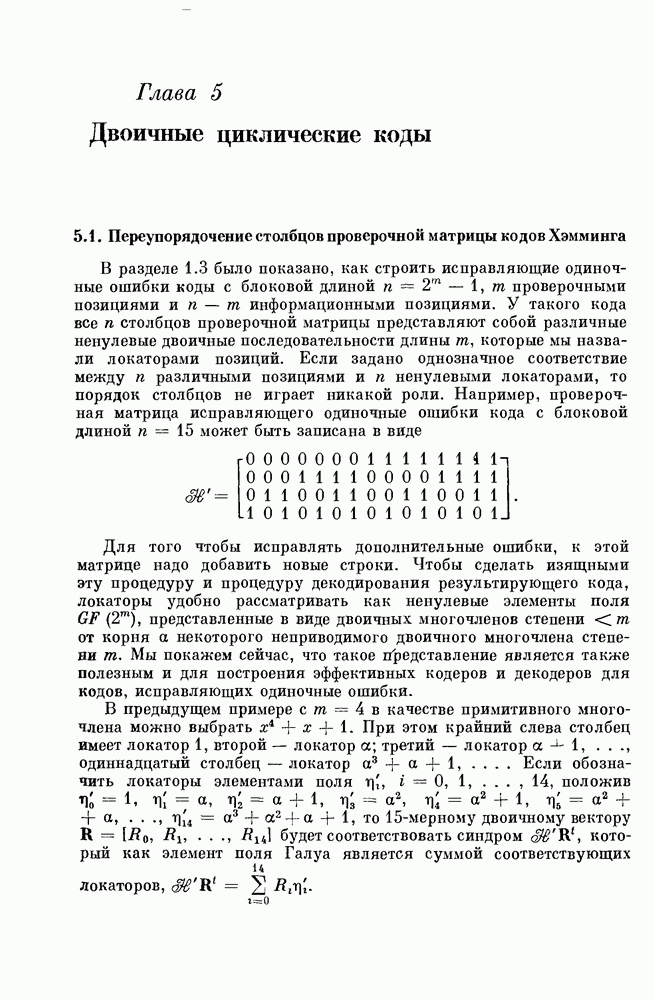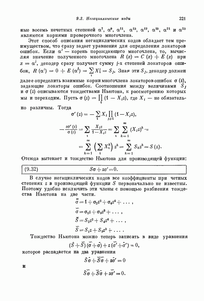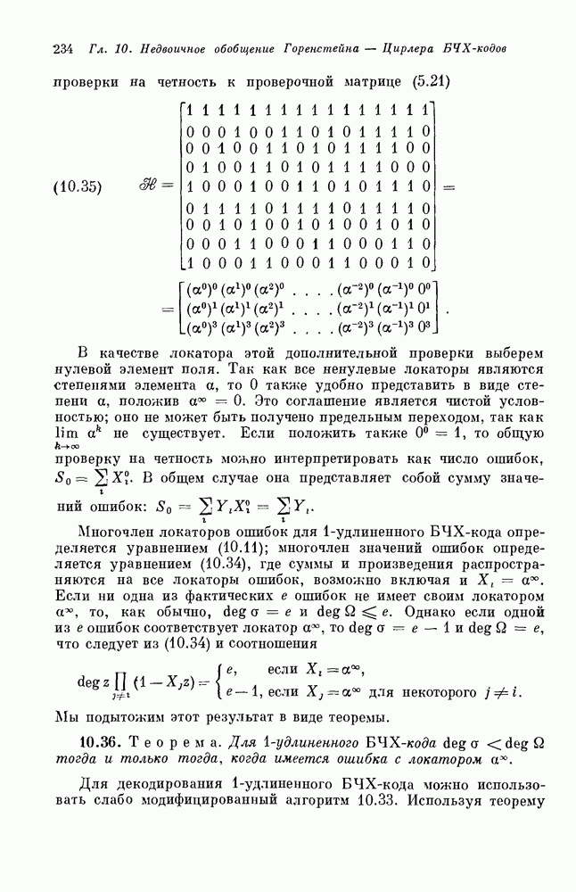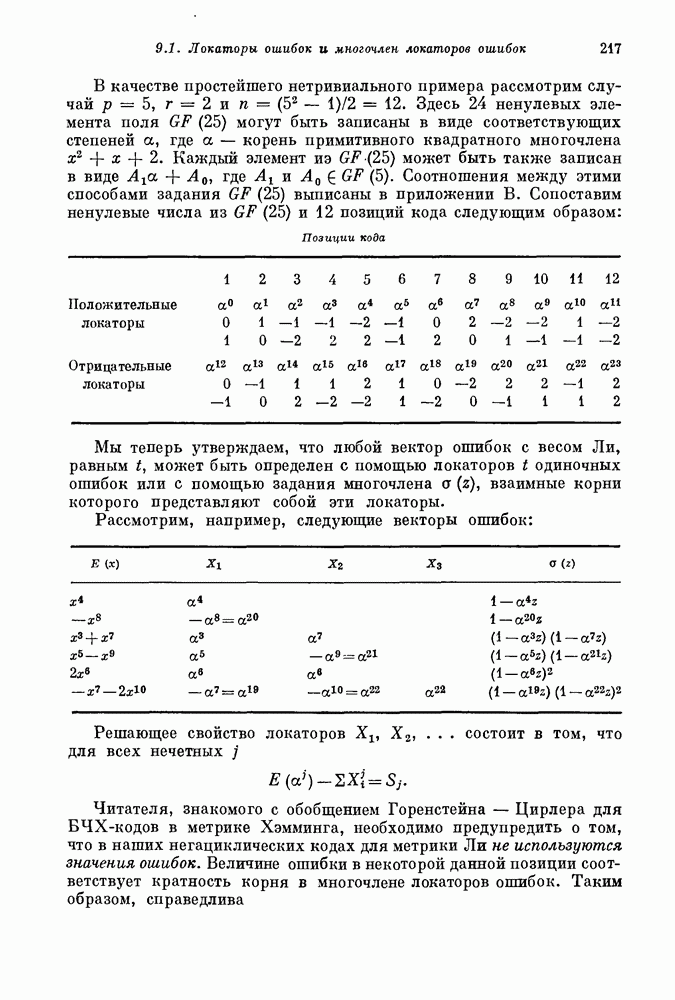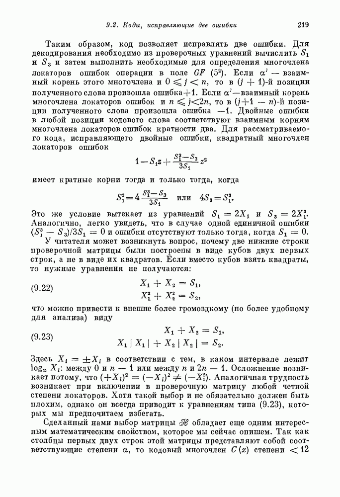 Аналогичная трудность возникает при включении в проверочную матрицу любой четной степени локаторов. Хотя такой выбор и не обязательно должен быть плохим, однако он всегда приводит к уравнениям типа (9.23), которых мы предпочитаем избегать.