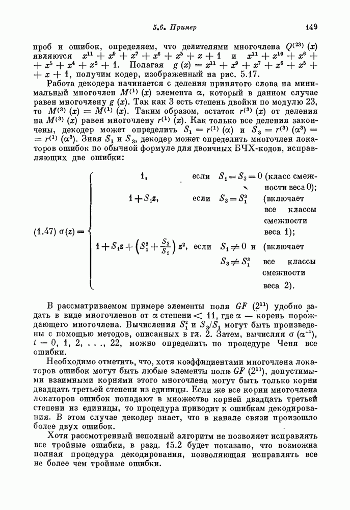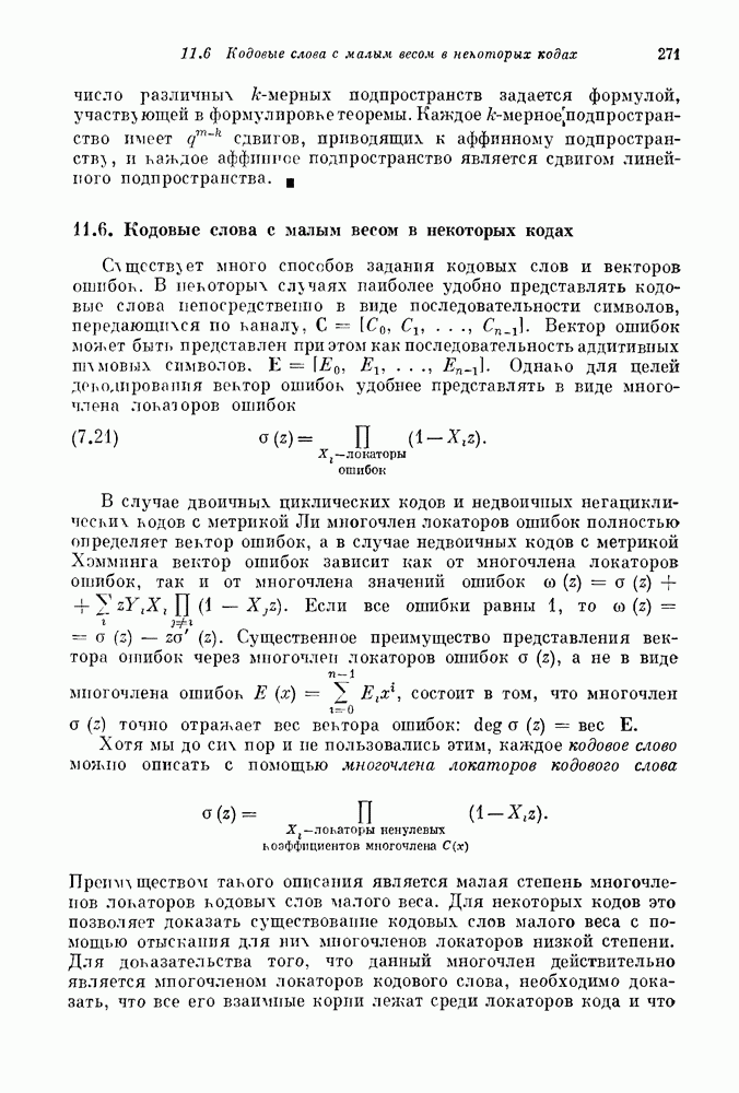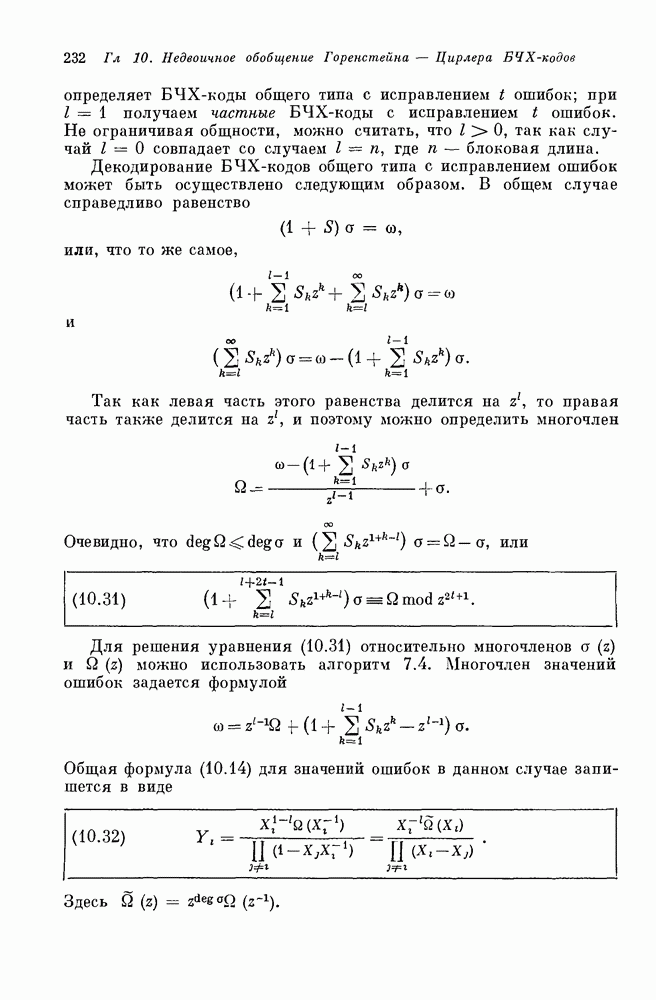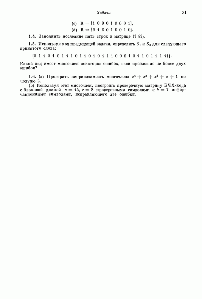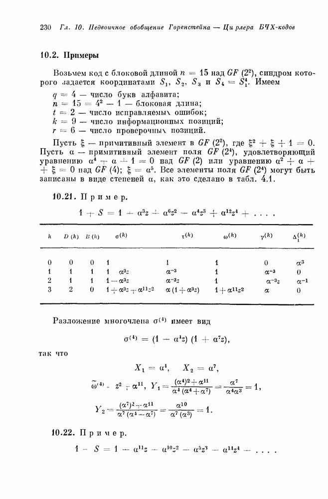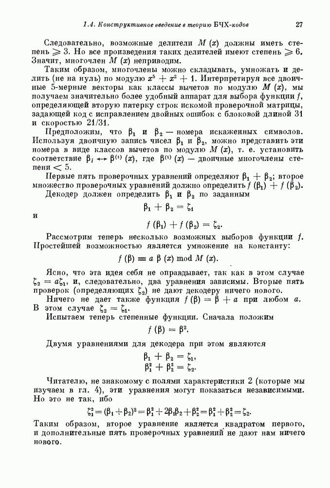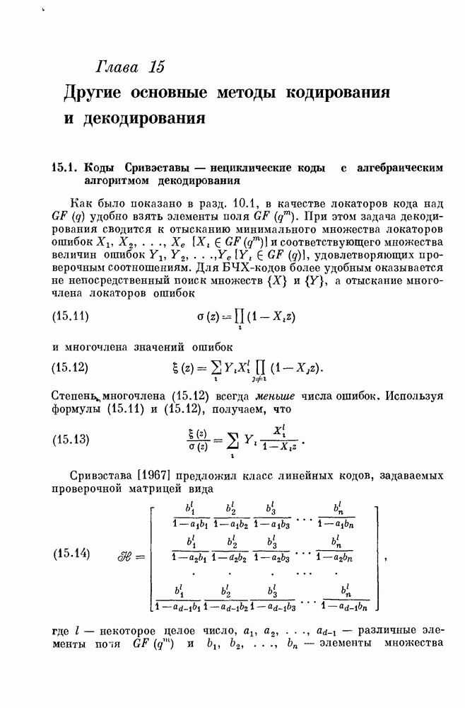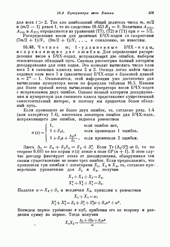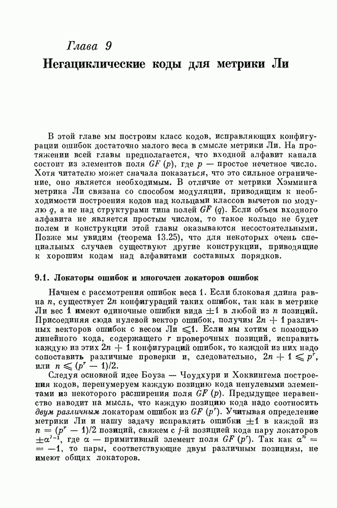 Аналогичная трудность возникает при включении в проверочную матрицу любой четной степени локаторов. Хотя такой выбор и не обязательно должен быть плохим, однако он всегда приводит к уравнениям типа (9.23), которых мы предпочитаем избегать.
