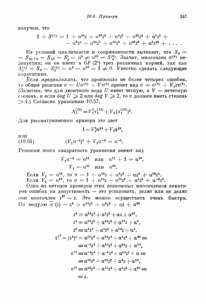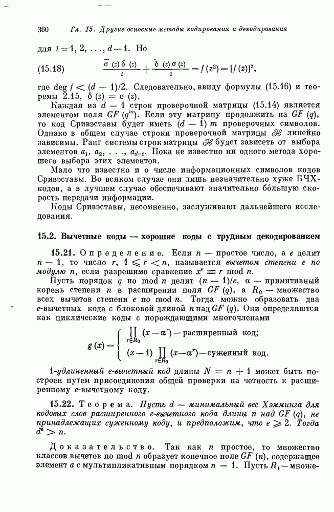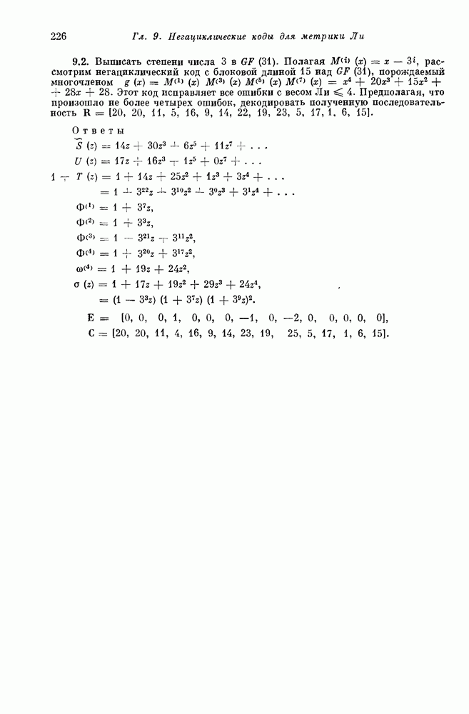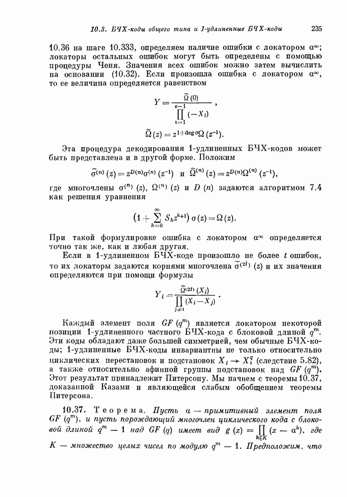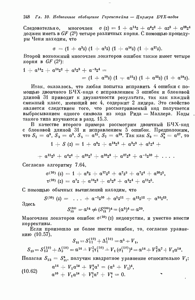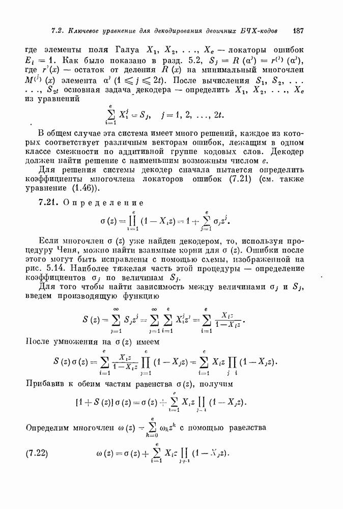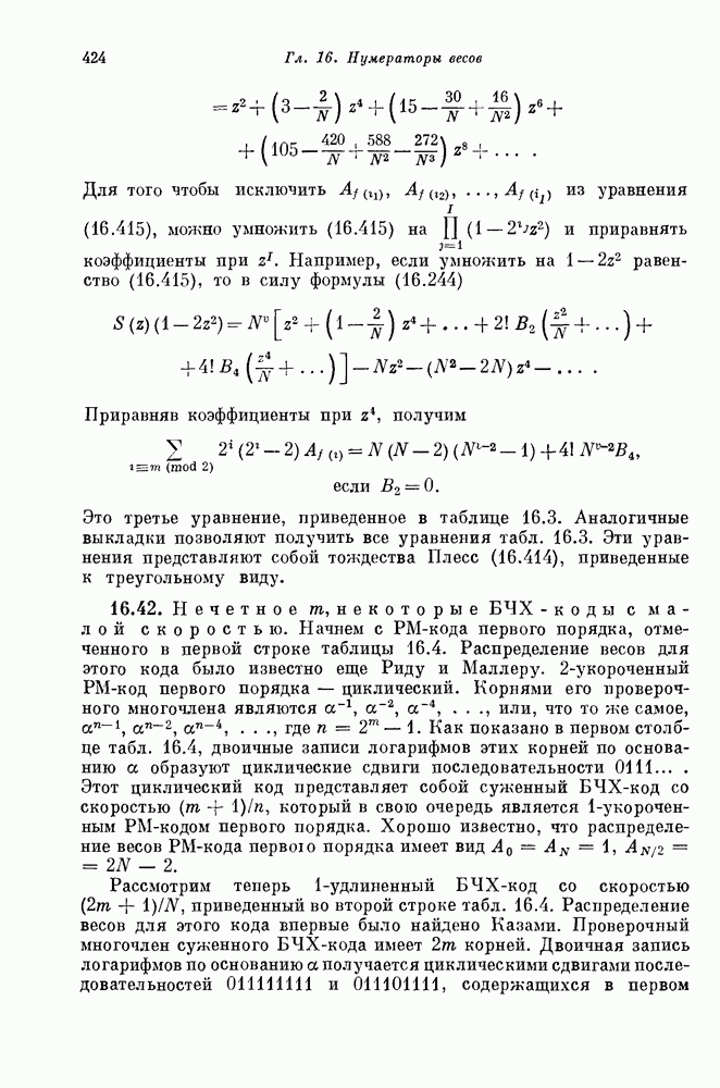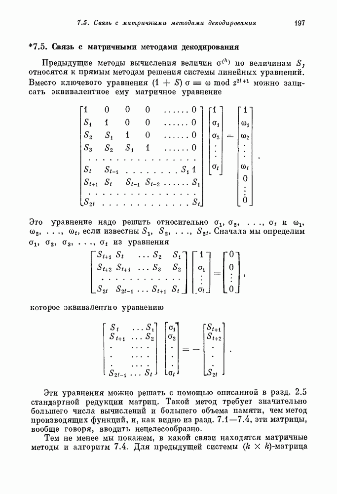 Аналогичная трудность возникает при включении в проверочную матрицу любой четной степени локаторов. Хотя такой выбор и не обязательно должен быть плохим, однако он всегда приводит к уравнениям типа (9.23), которых мы предпочитаем избегать.