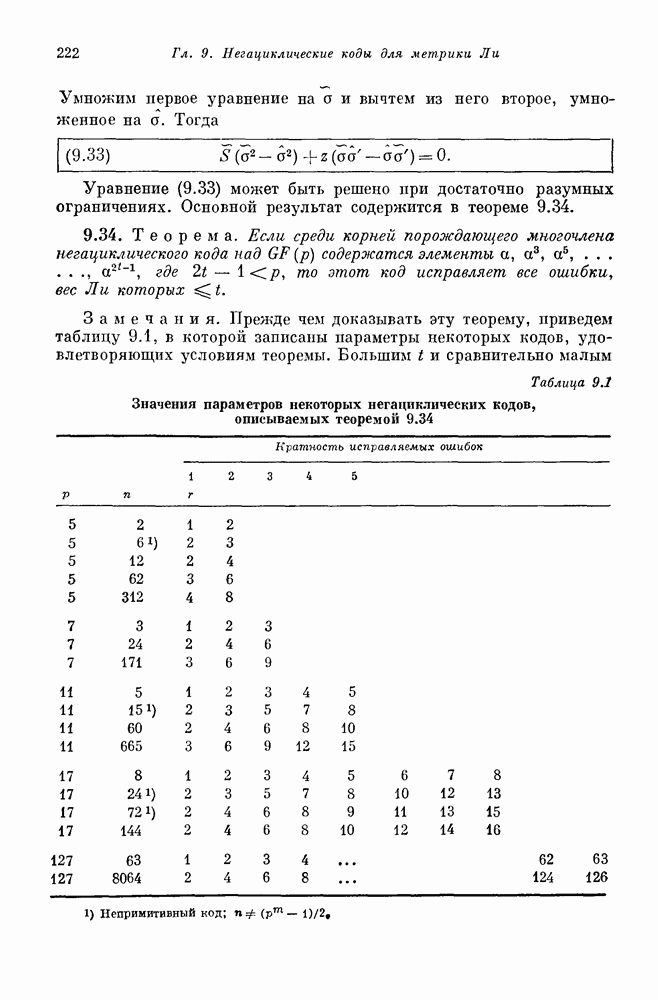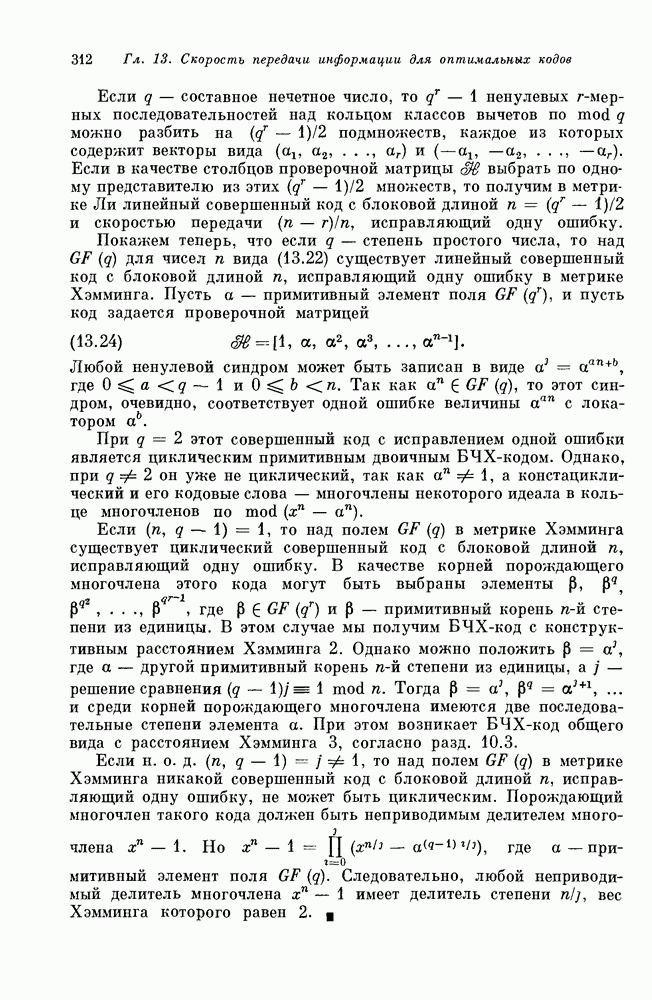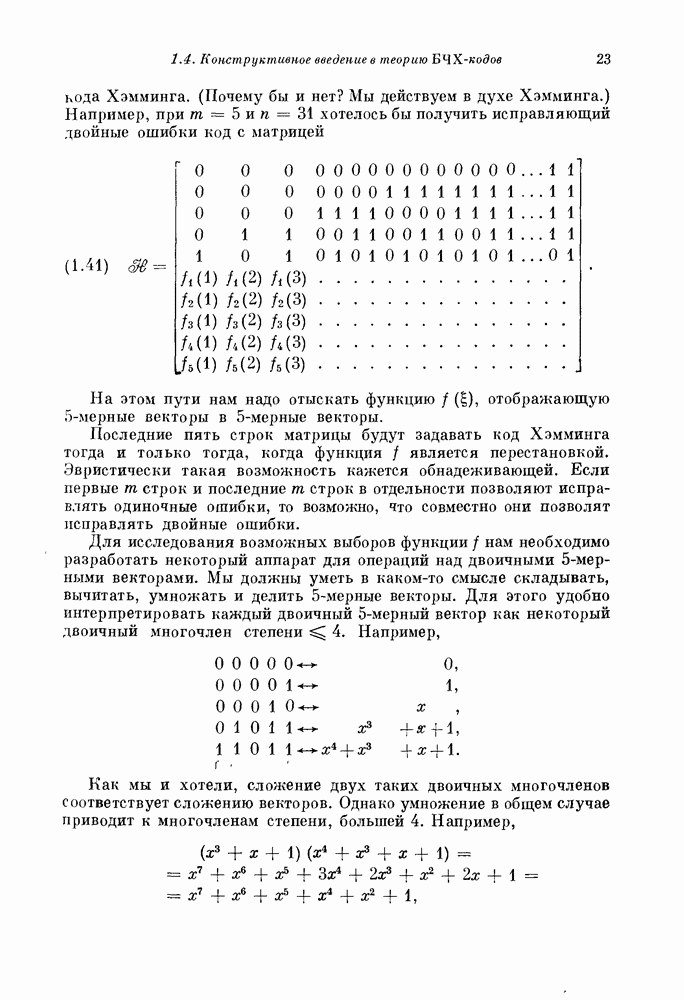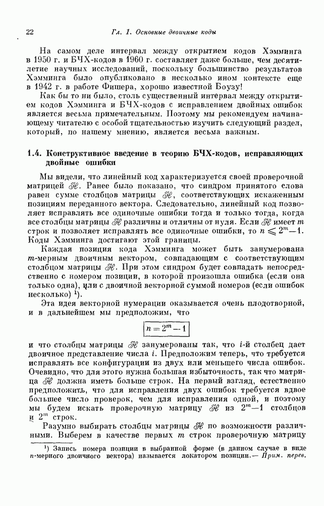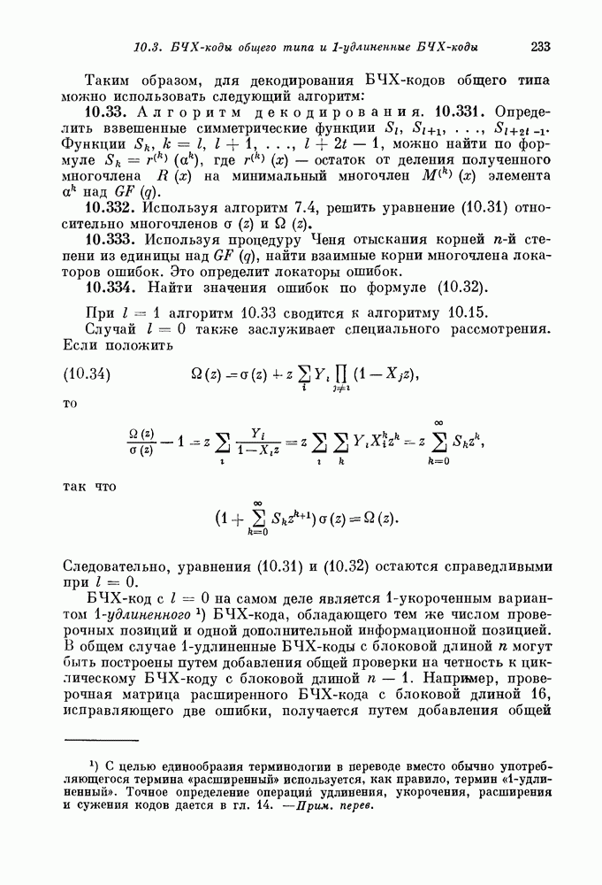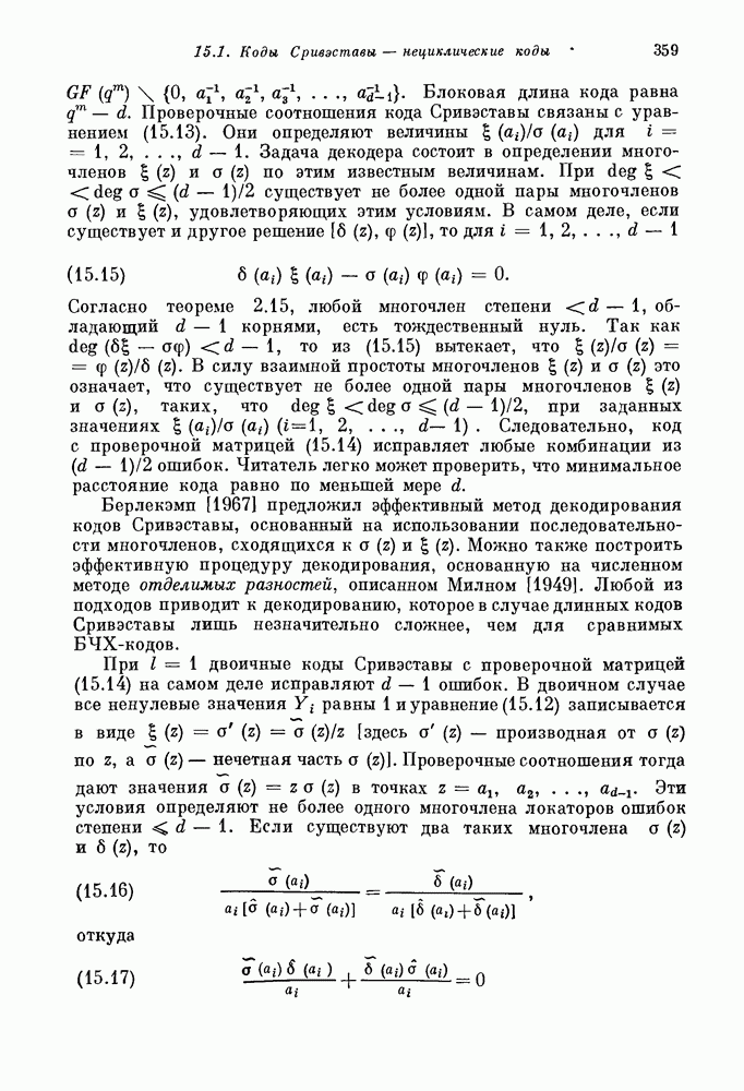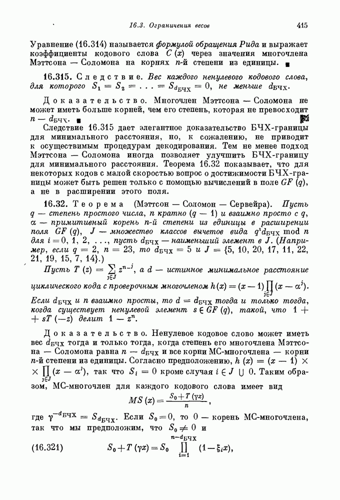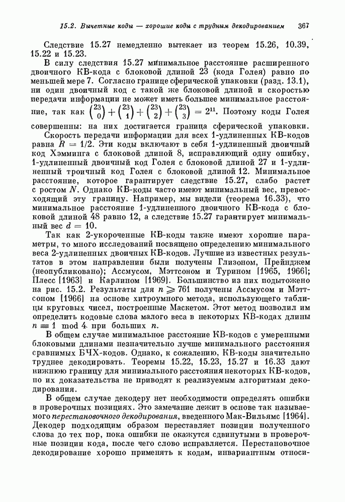 Аналогичная трудность возникает при включении в проверочную матрицу любой четной степени локаторов. Хотя такой выбор и не обязательно должен быть плохим, однако он всегда приводит к уравнениям типа (9.23), которых мы предпочитаем избегать.
