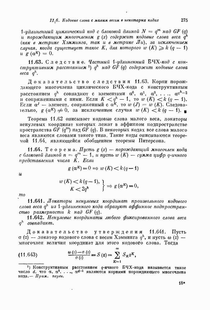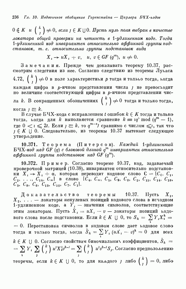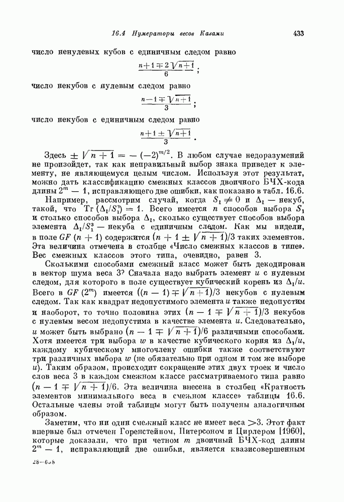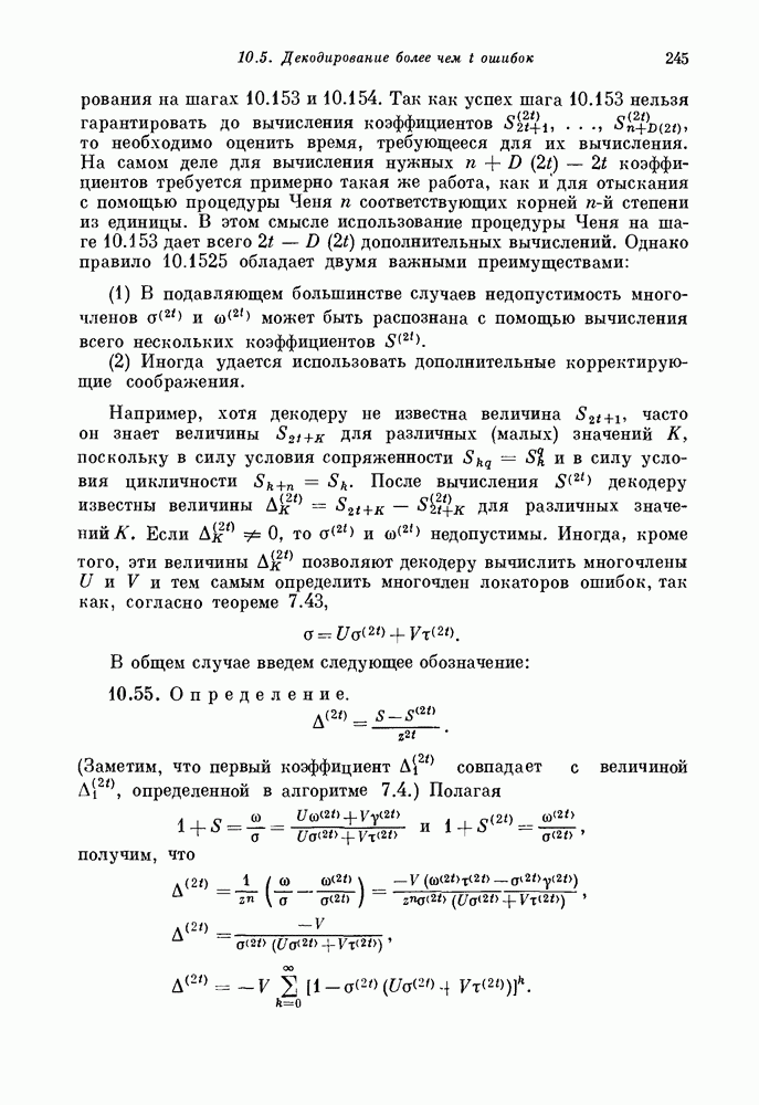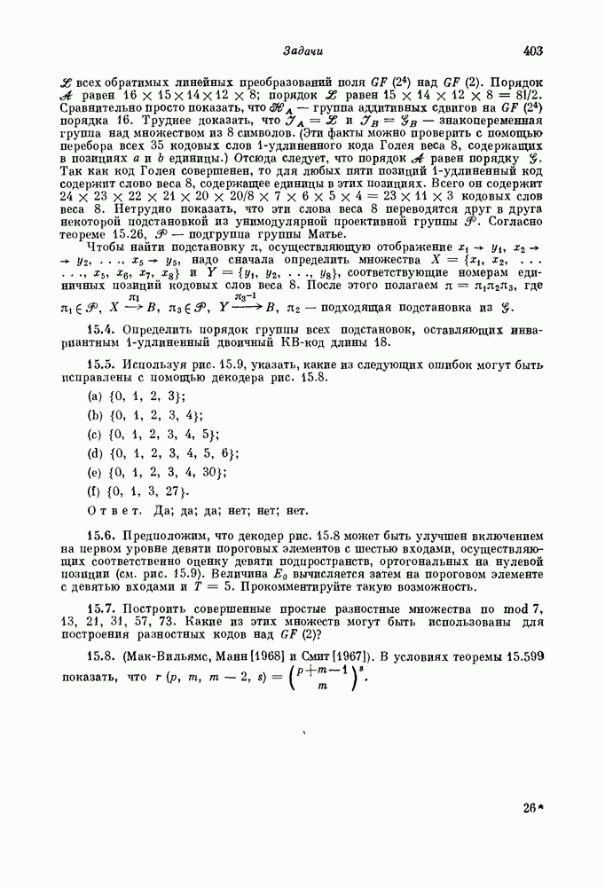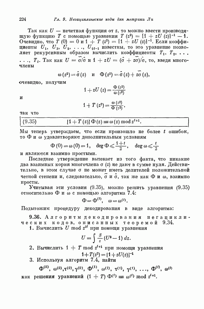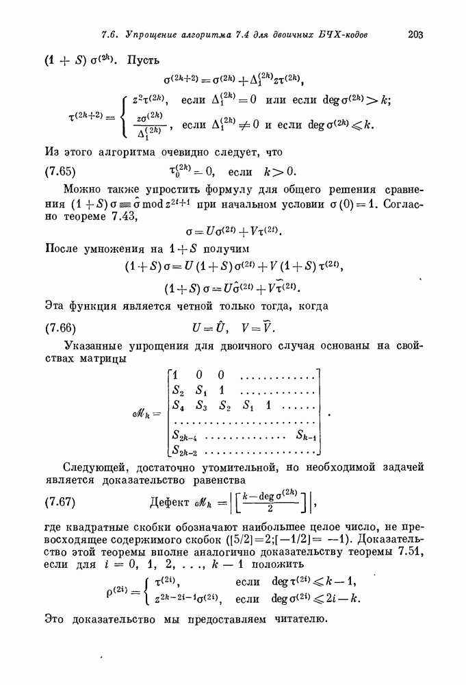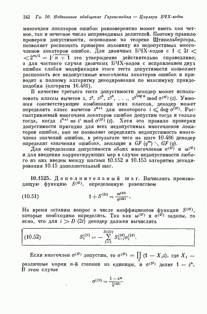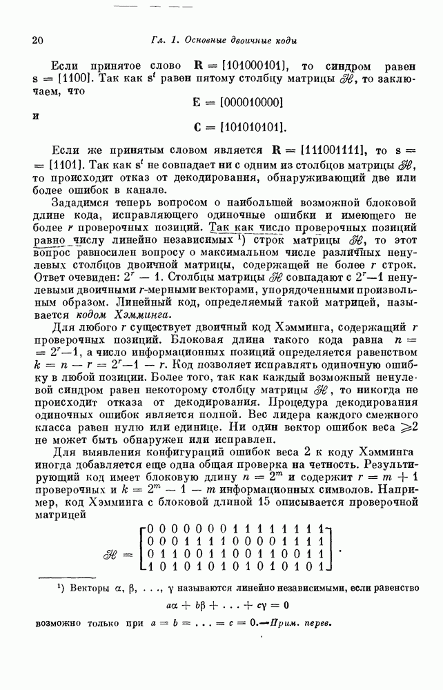 Аналогичная трудность возникает при включении в проверочную матрицу любой четной степени локаторов. Хотя такой выбор и не обязательно должен быть плохим, однако он всегда приводит к уравнениям типа (9.23), которых мы предпочитаем избегать.