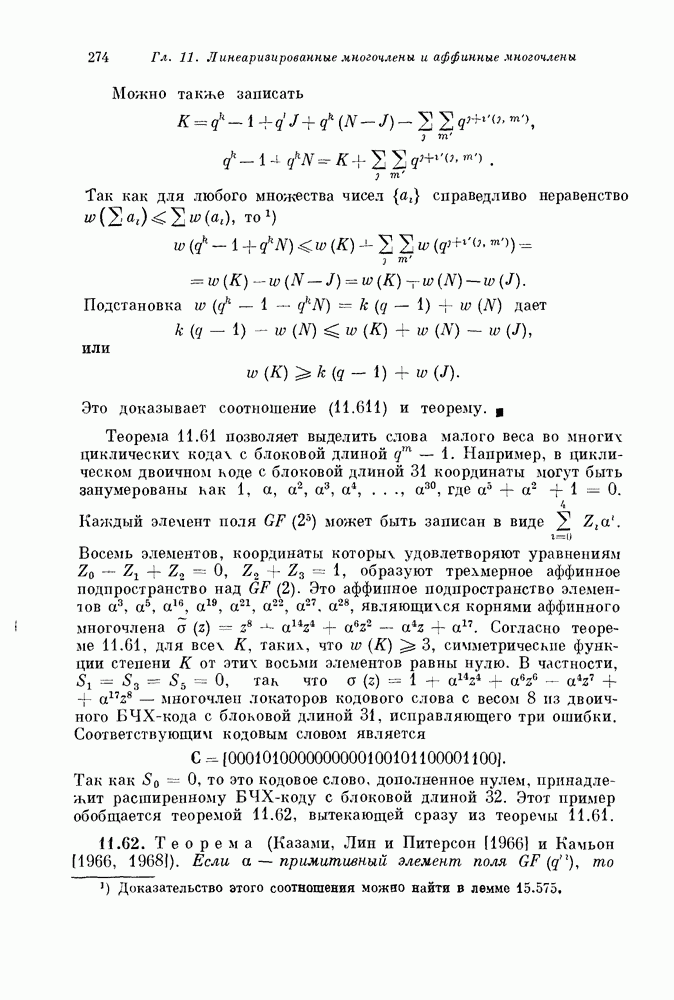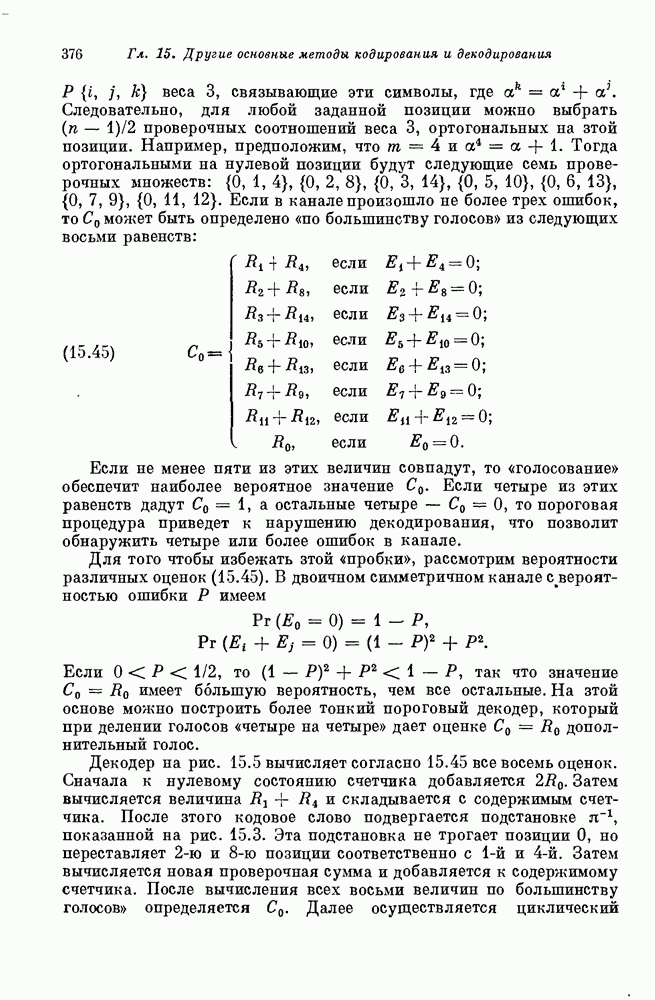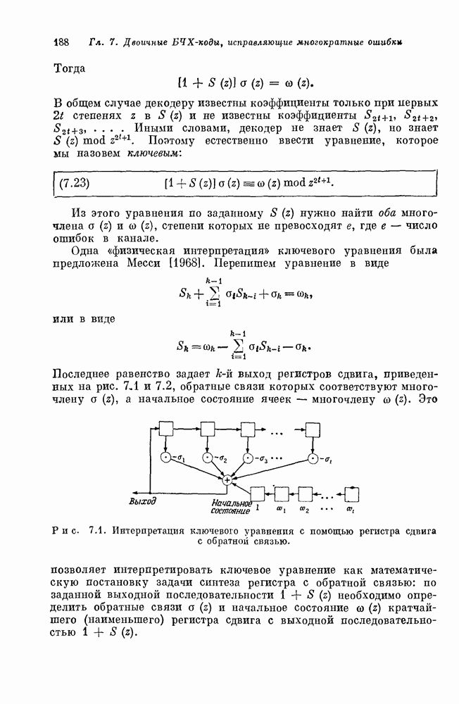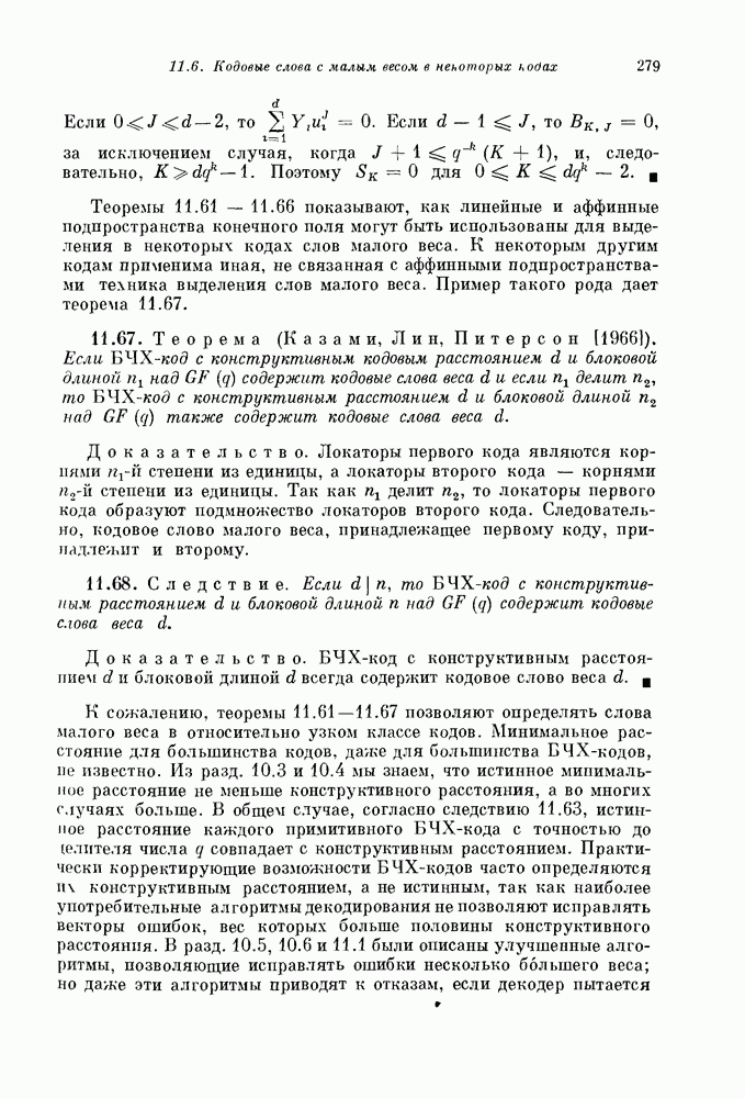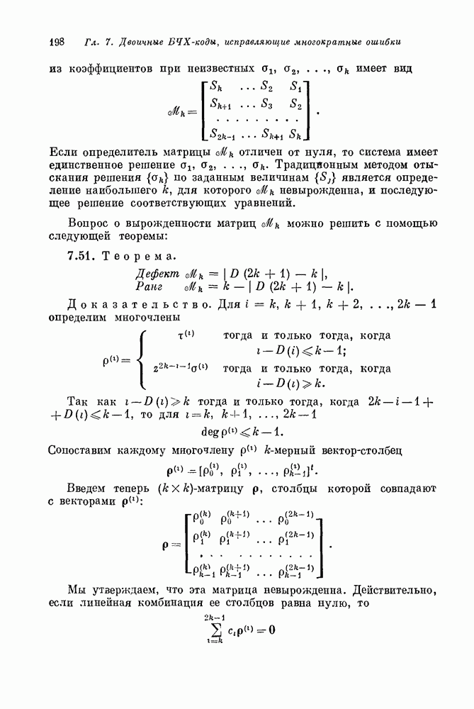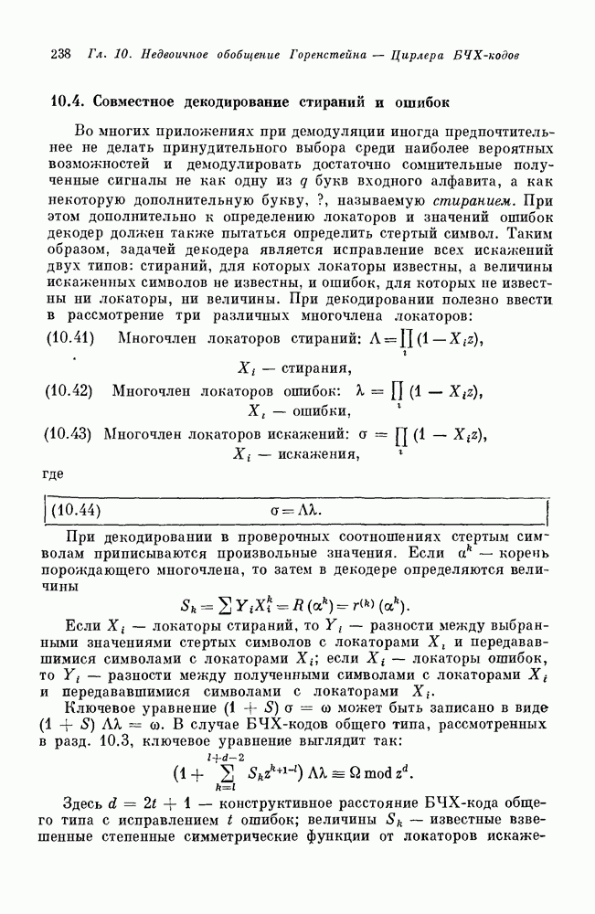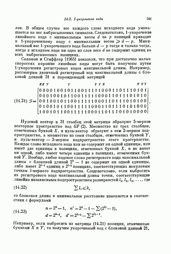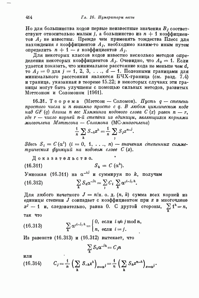 Аналогичная трудность возникает при включении в проверочную матрицу любой четной степени локаторов. Хотя такой выбор и не обязательно должен быть плохим, однако он всегда приводит к уравнениям типа (9.23), которых мы предпочитаем избегать.