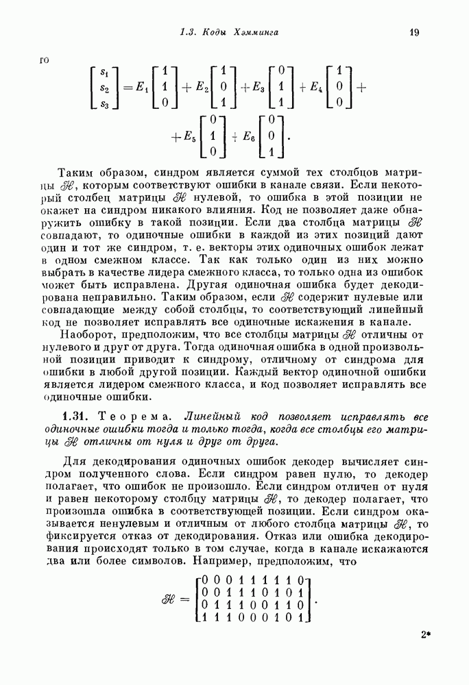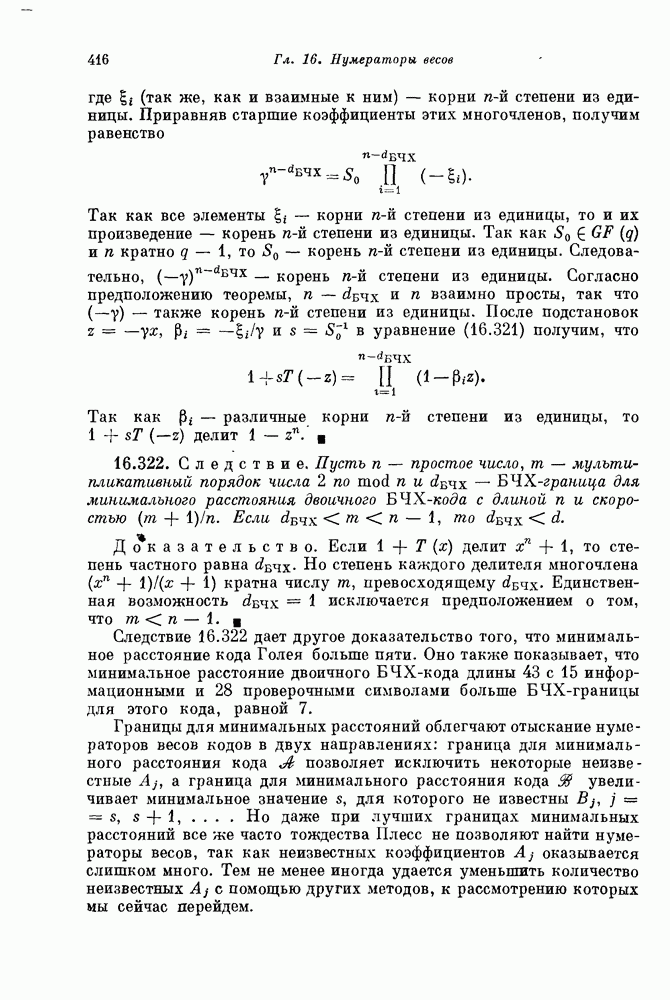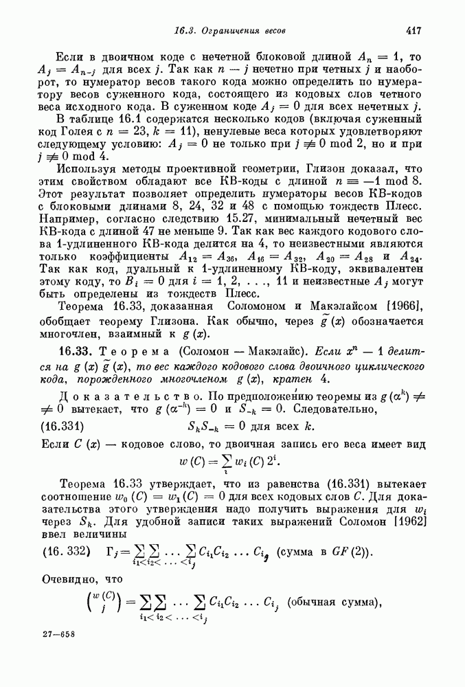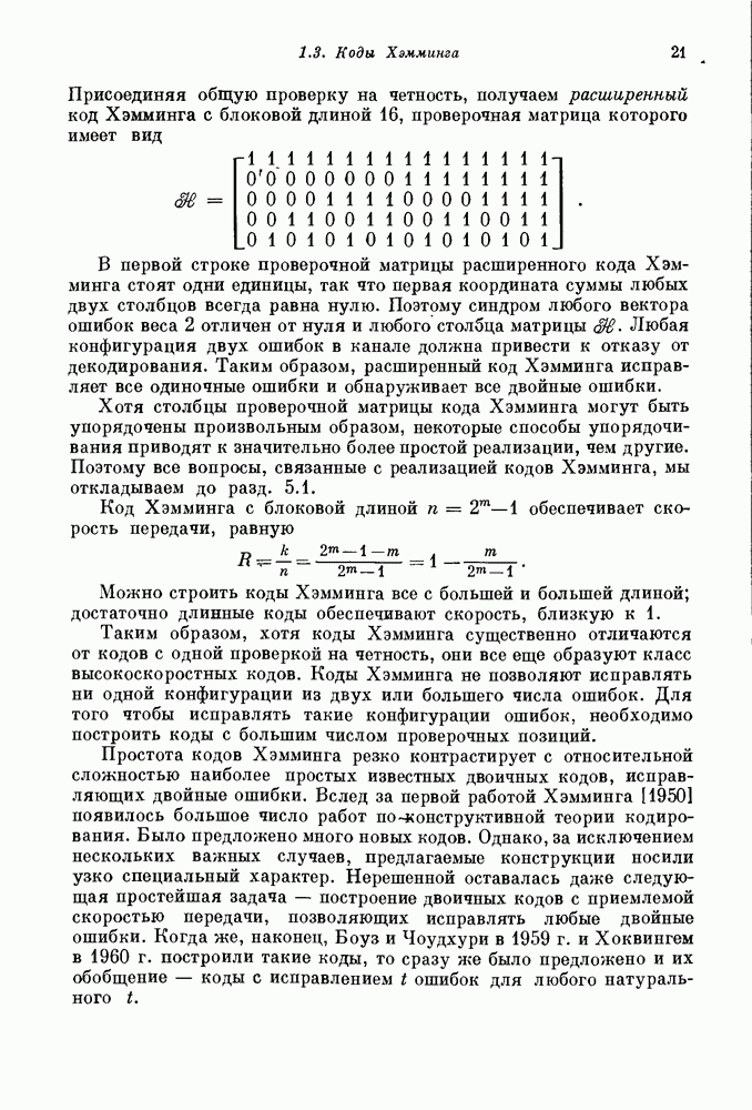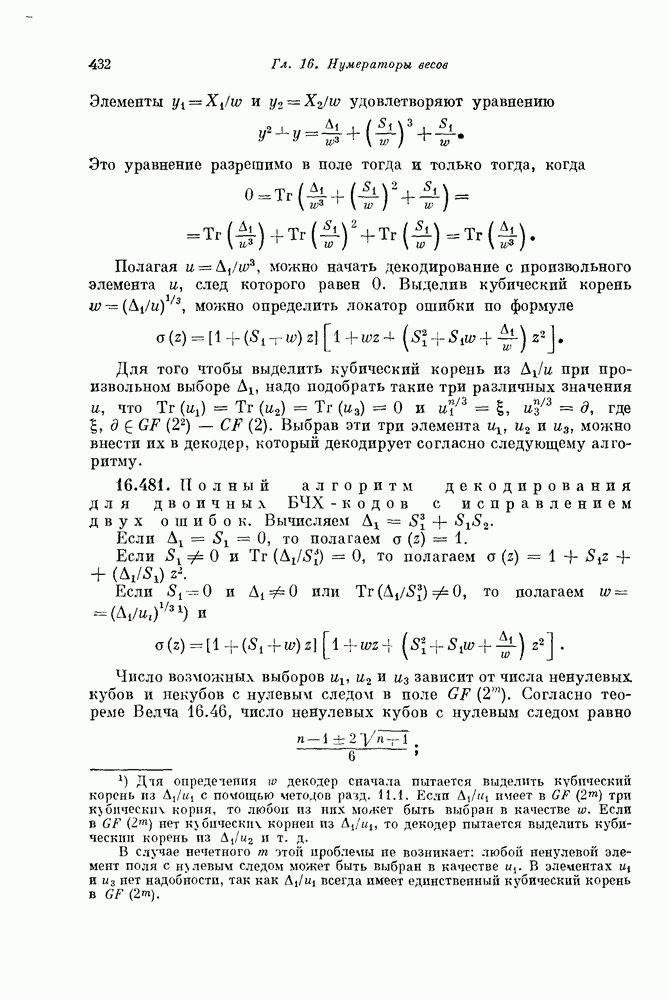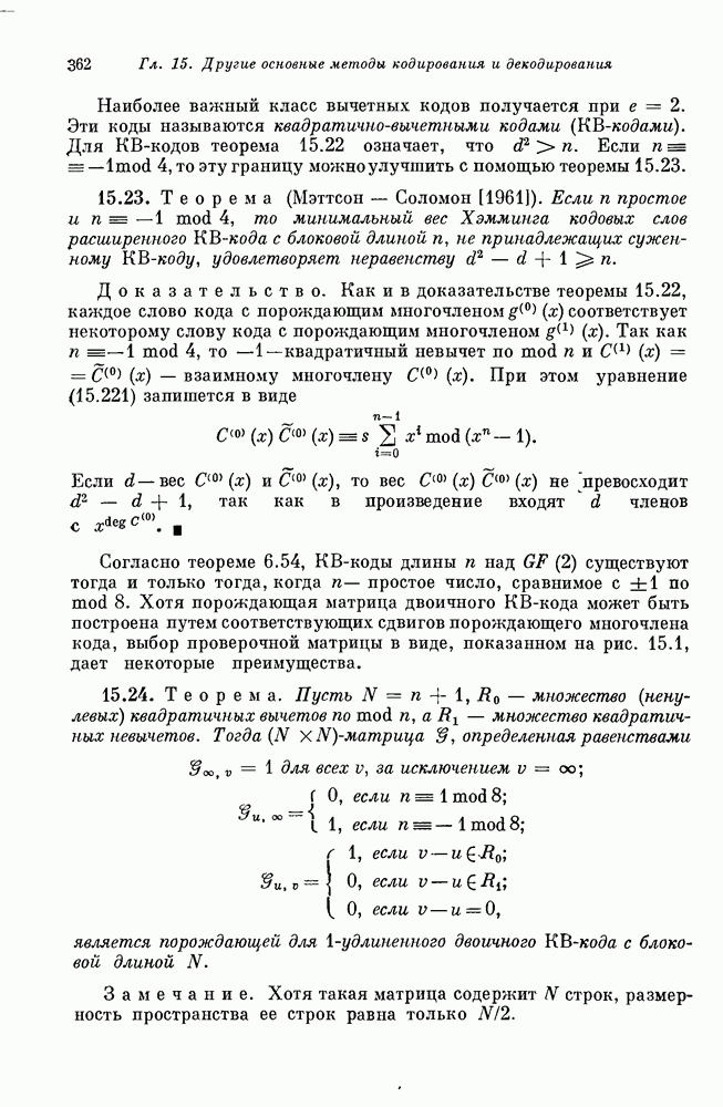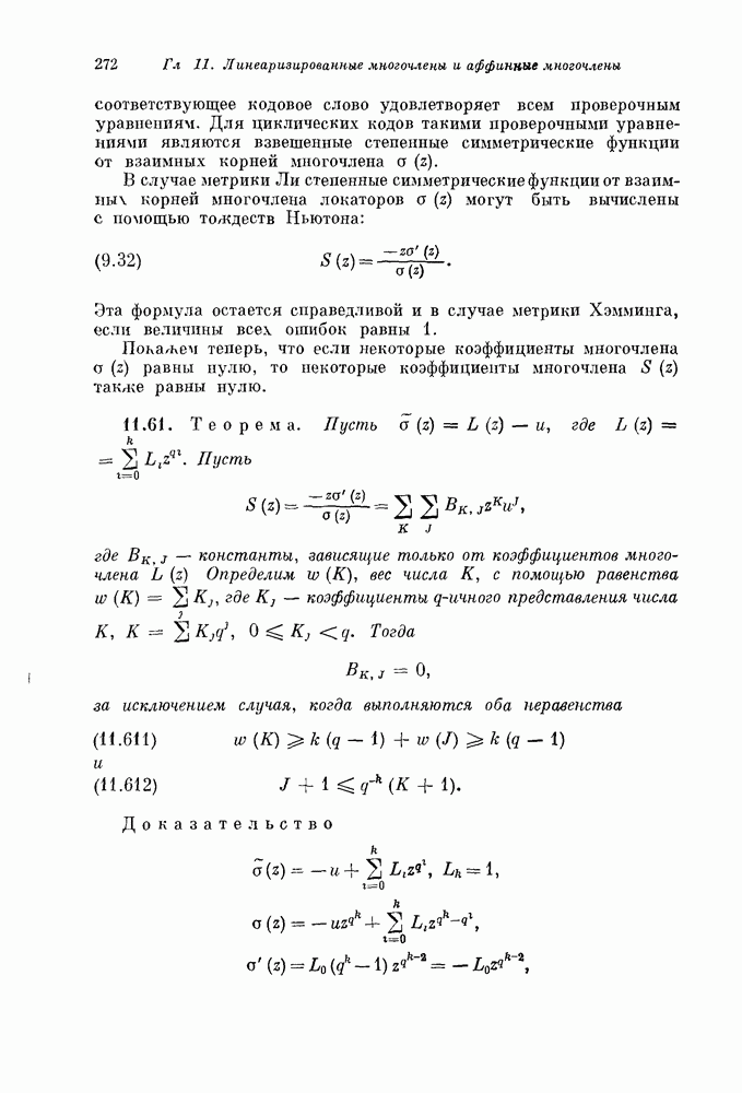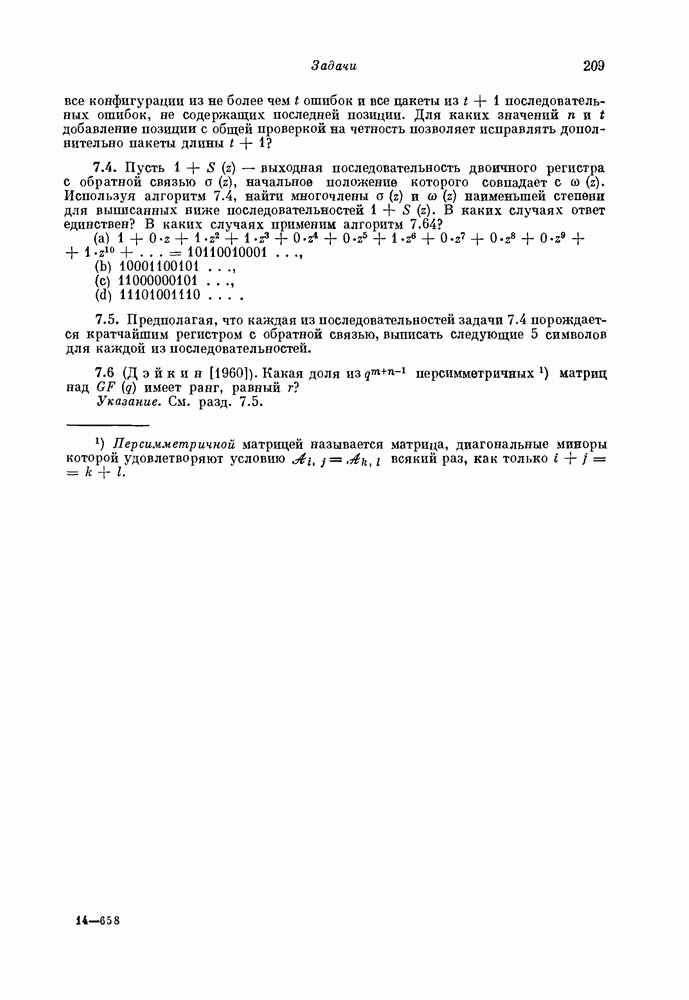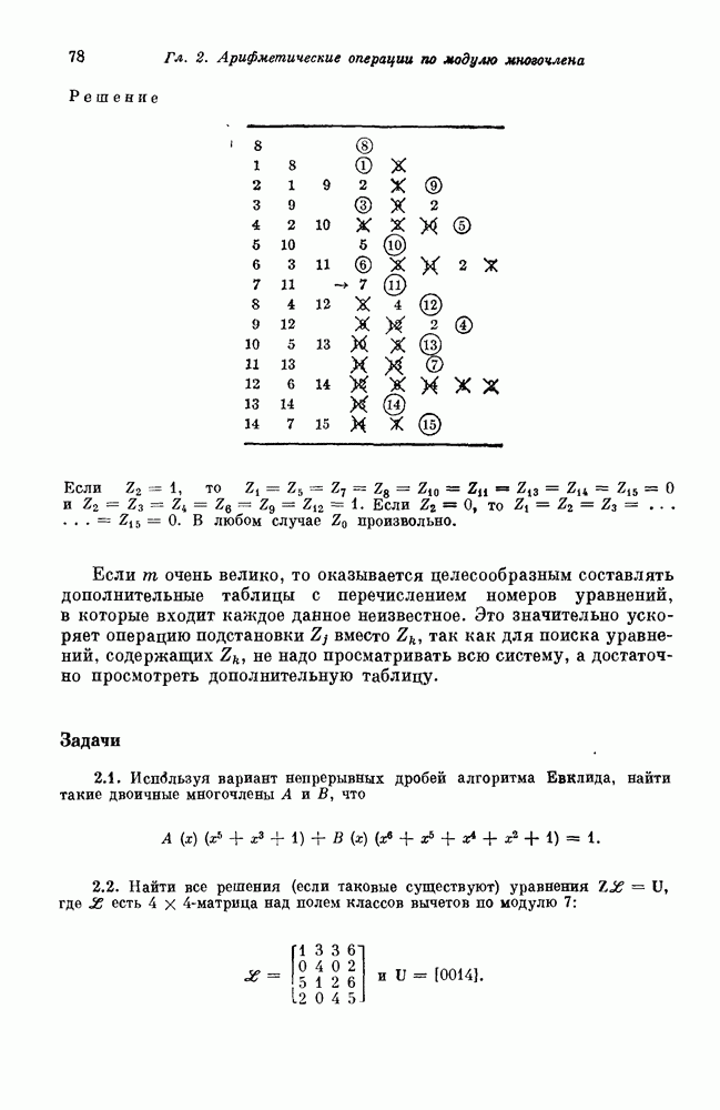 Аналогичная трудность возникает при включении в проверочную матрицу любой четной степени локаторов. Хотя такой выбор и не обязательно должен быть плохим, однако он всегда приводит к уравнениям типа (9.23), которых мы предпочитаем избегать.