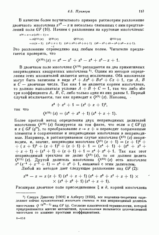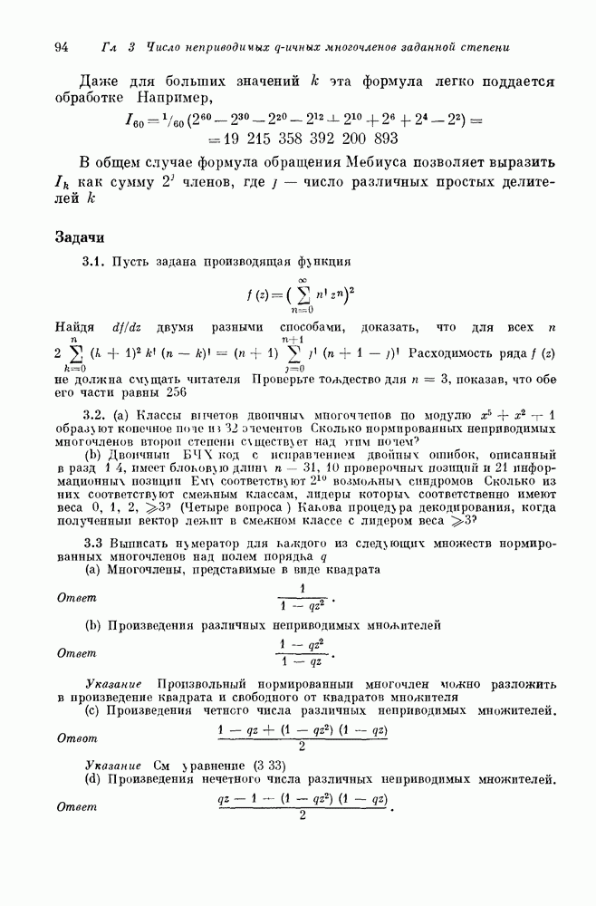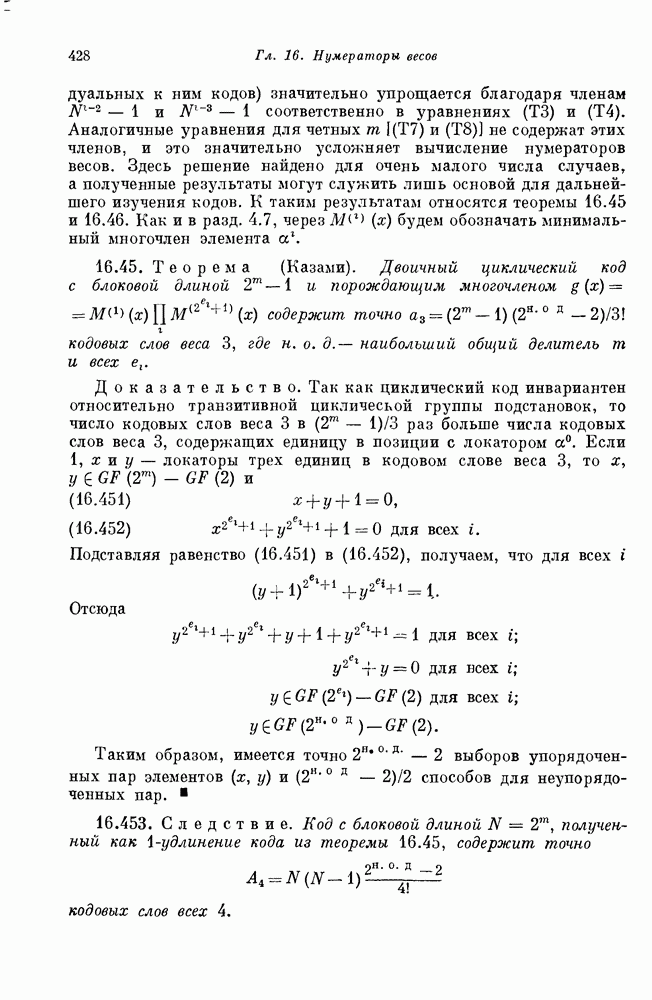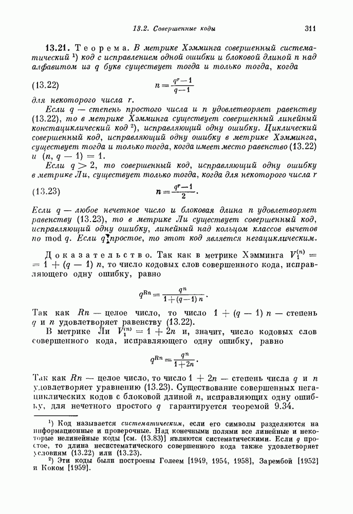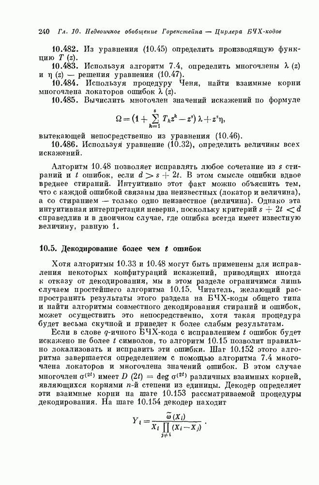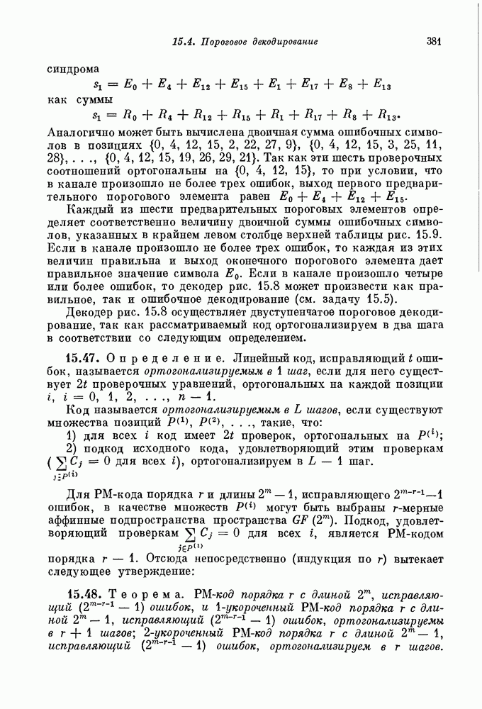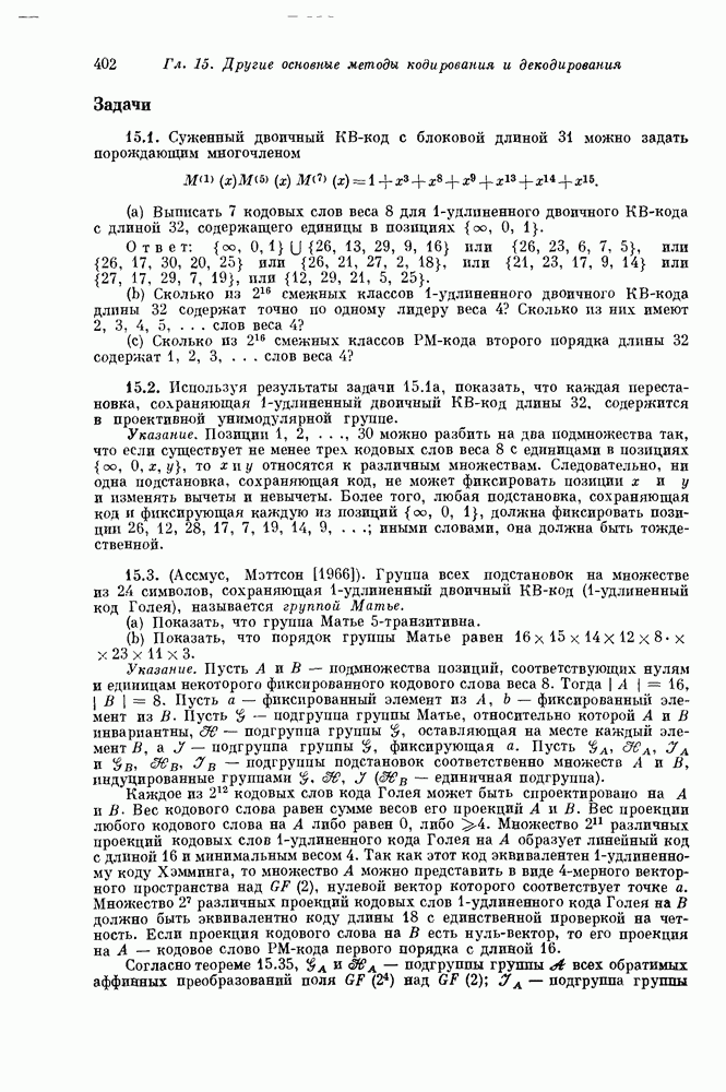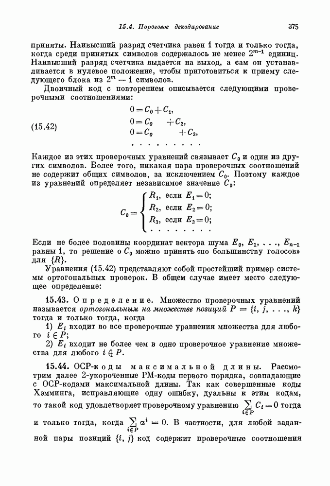 Аналогичная трудность возникает при включении в проверочную матрицу любой четной степени локаторов. Хотя такой выбор и не обязательно должен быть плохим, однако он всегда приводит к уравнениям типа (9.23), которых мы предпочитаем избегать.