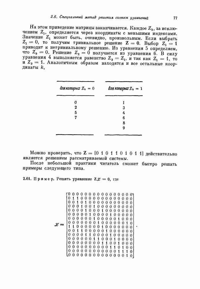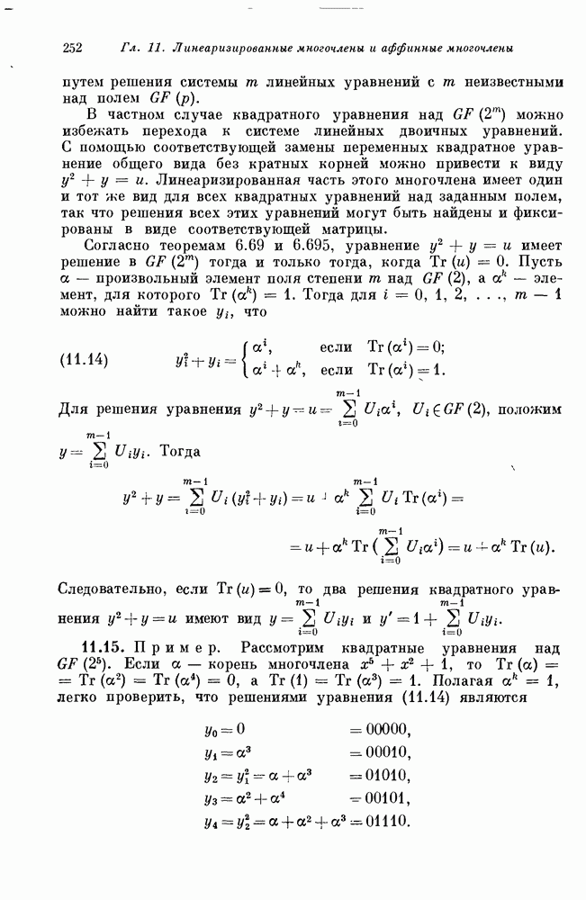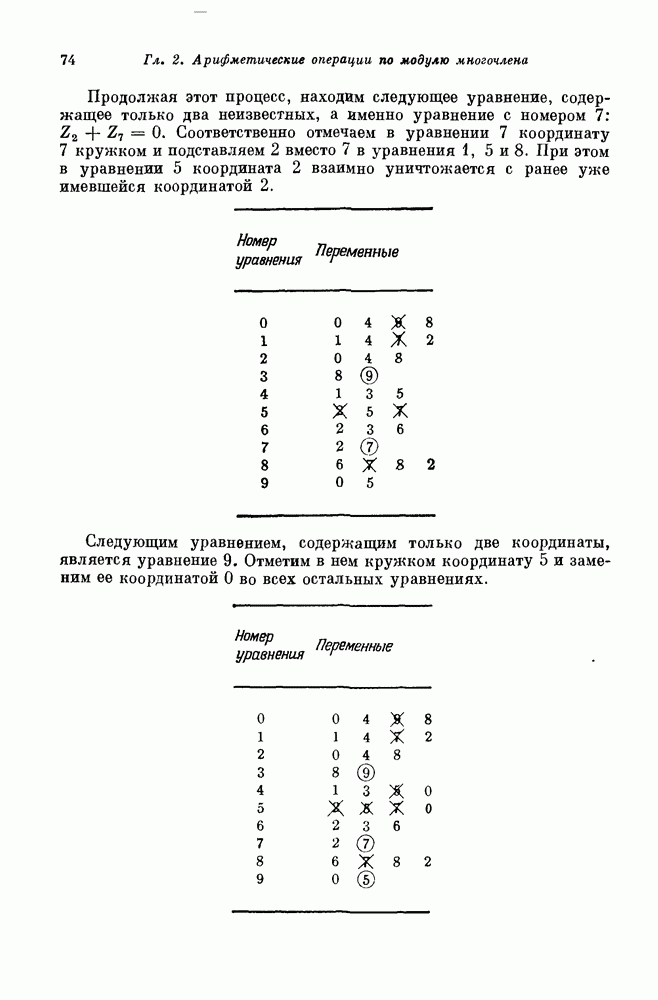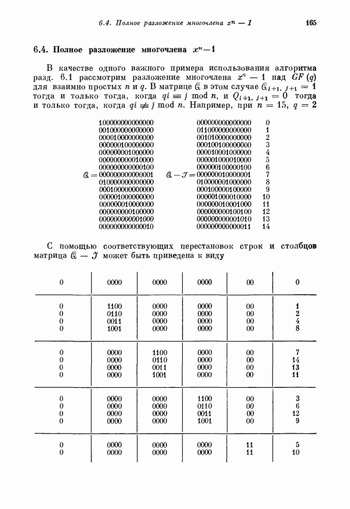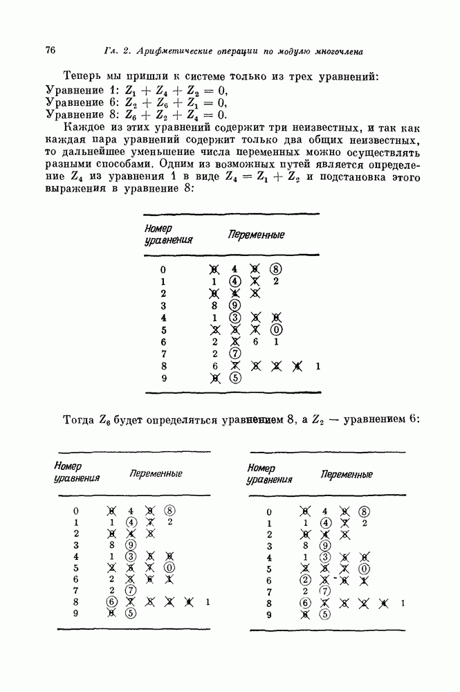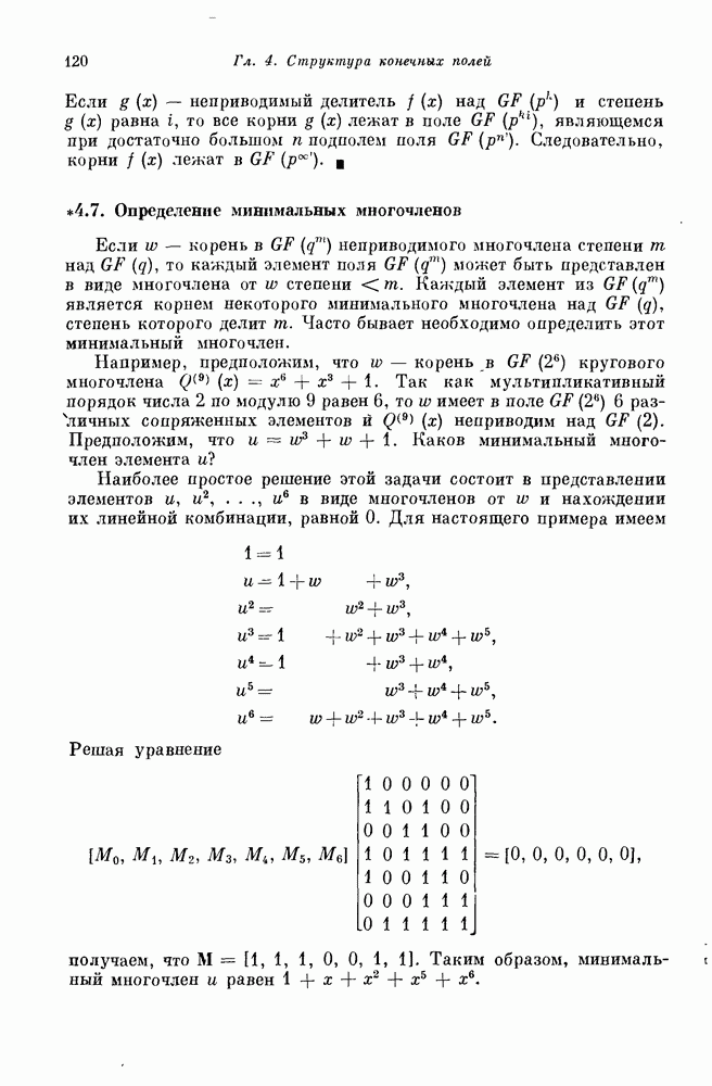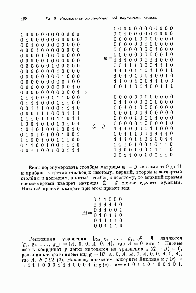 . У читателя может возникнуть вопрос, почему две нижние строки проверочной матрицы были построены в виде кубов двух первых строк, а не в виде их квадратов. Если вместо кубов взять квадраты, то нужные уравнения не получаются: