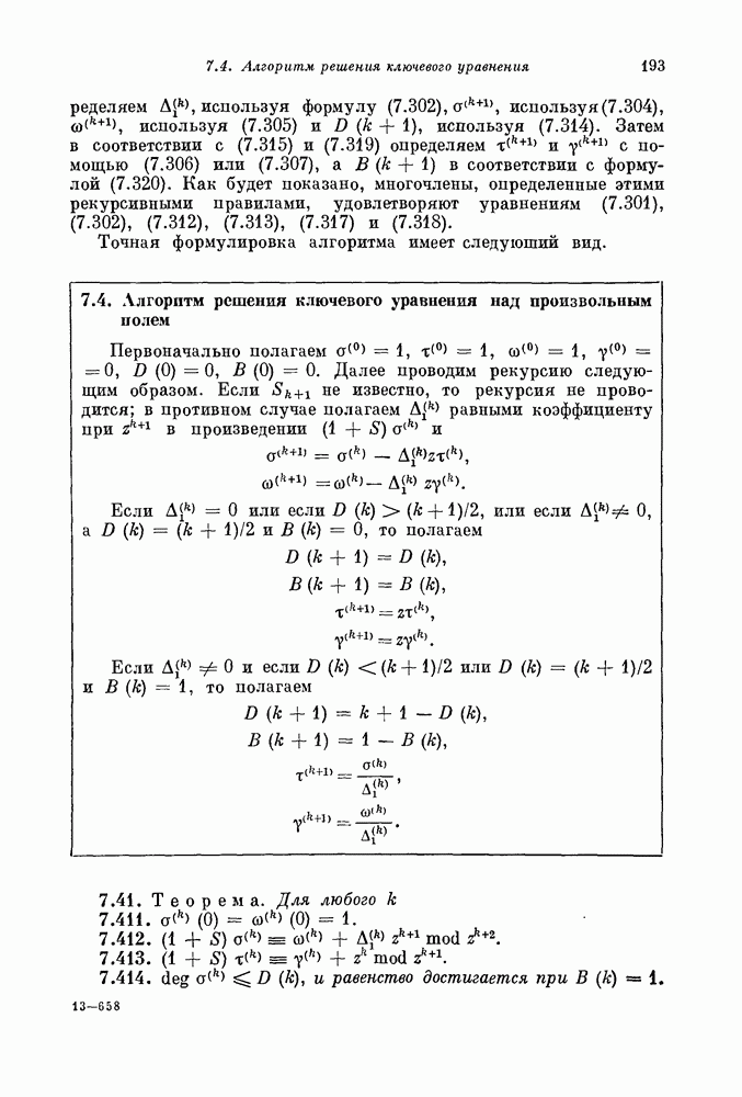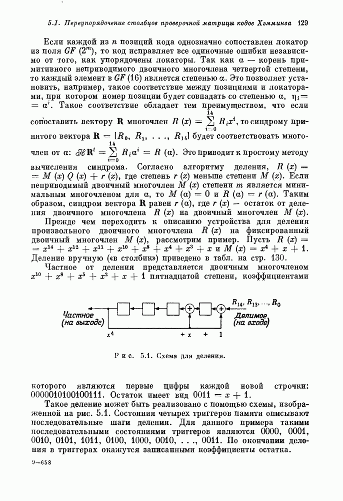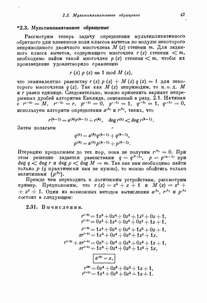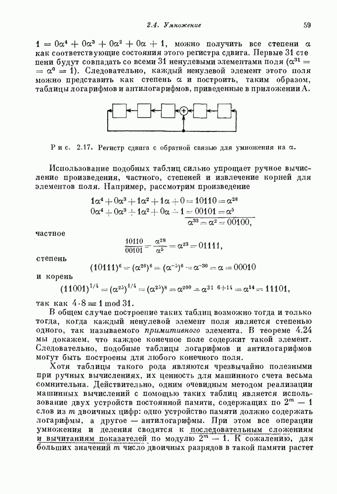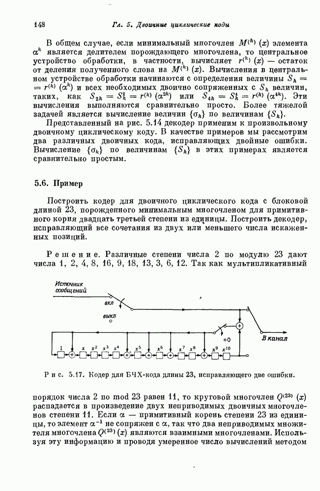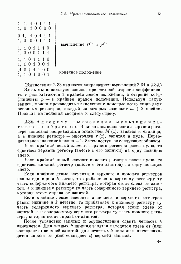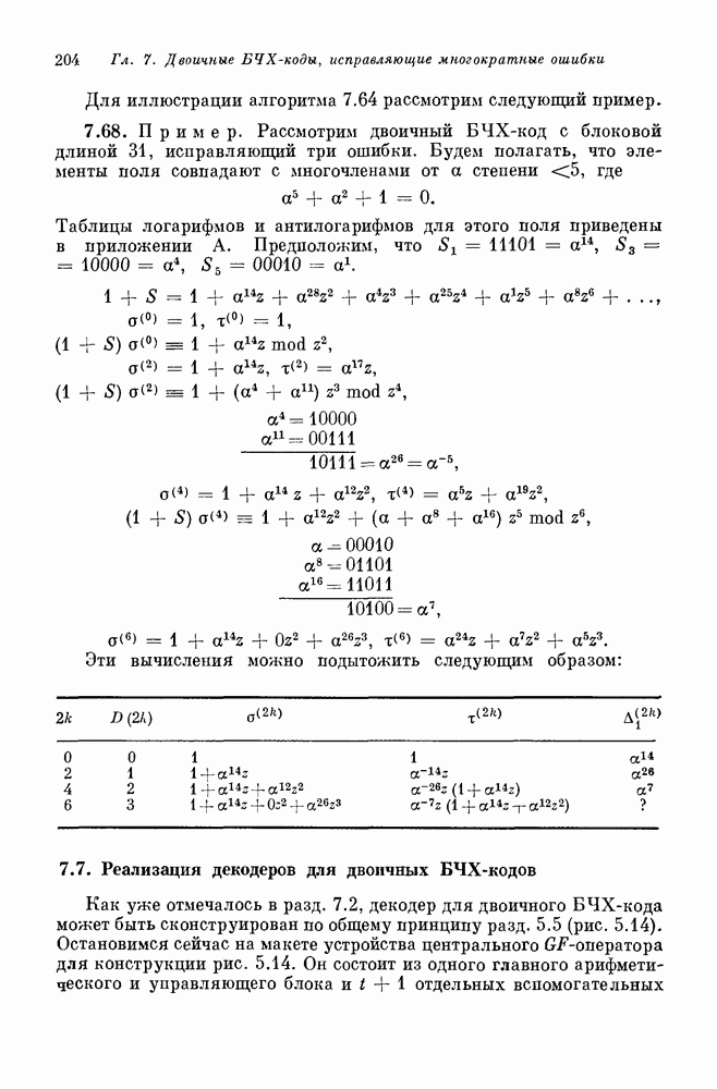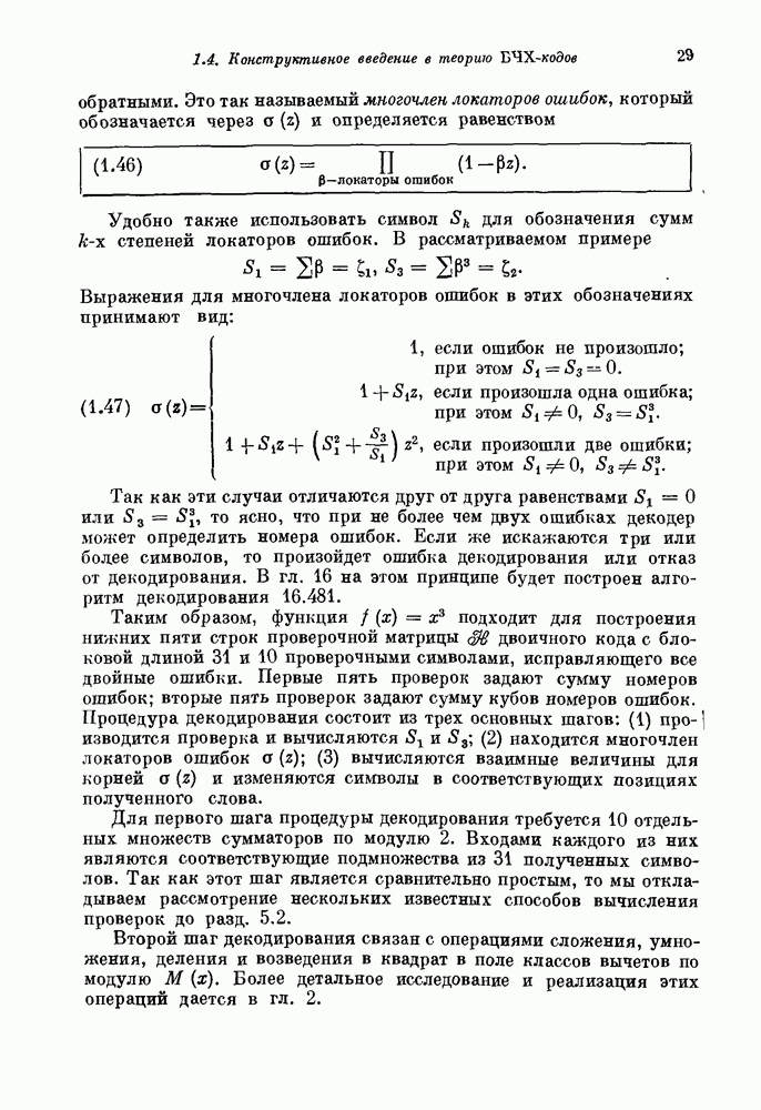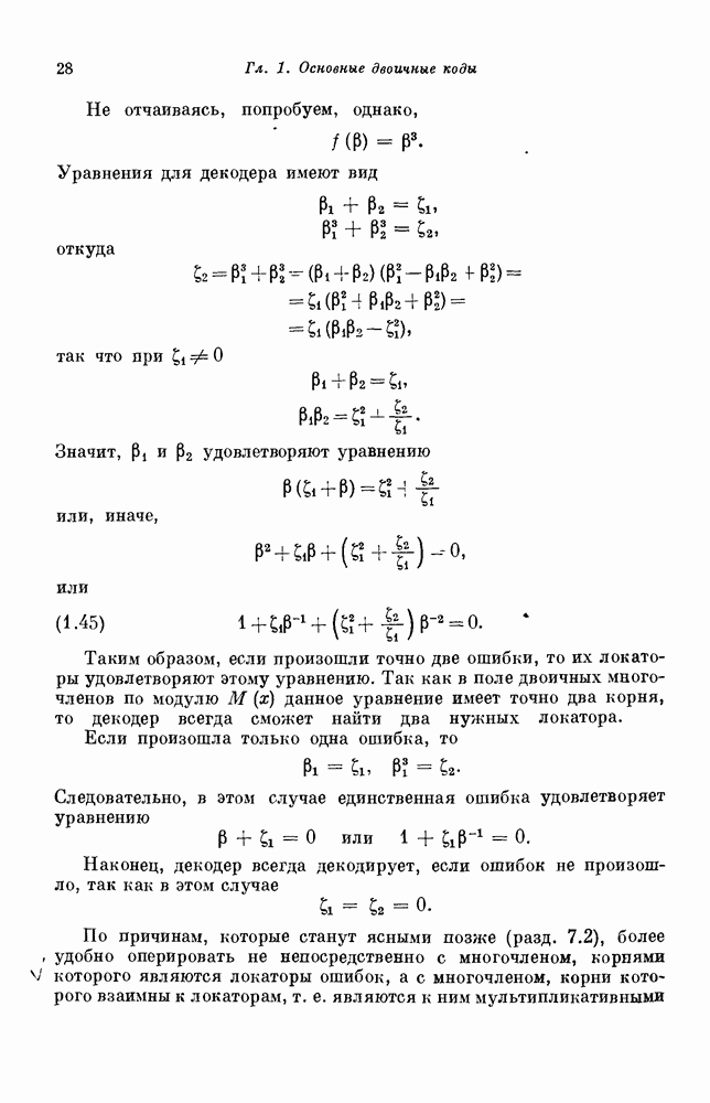 позиции полученного слова произошла ошибка —1. Двойные ошибки в любой позиции кодового слова соответствуют взаимным корням многочлена локаторов ошибок кратности два. Для рассматриваемого кода, исправляющего двойные ошибки, квадратный многочлен локаторов ошибок