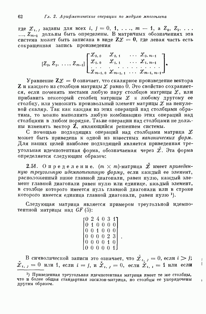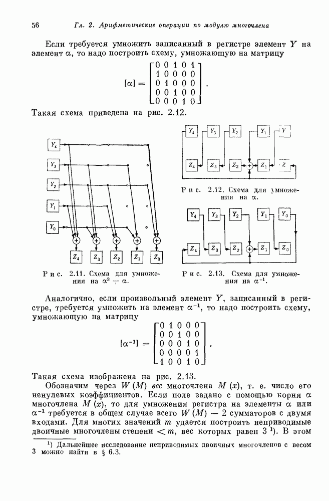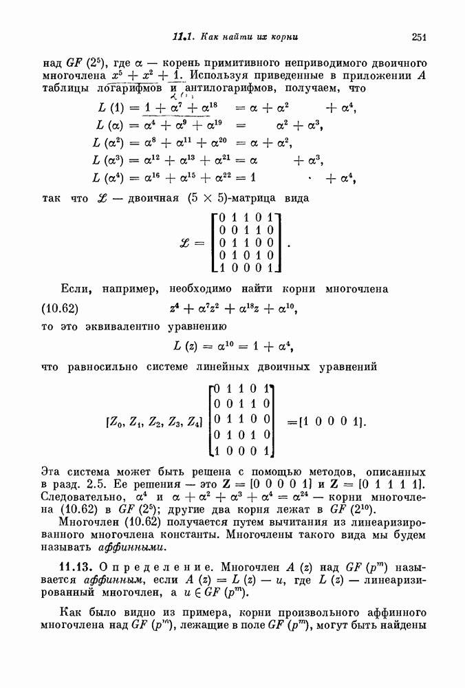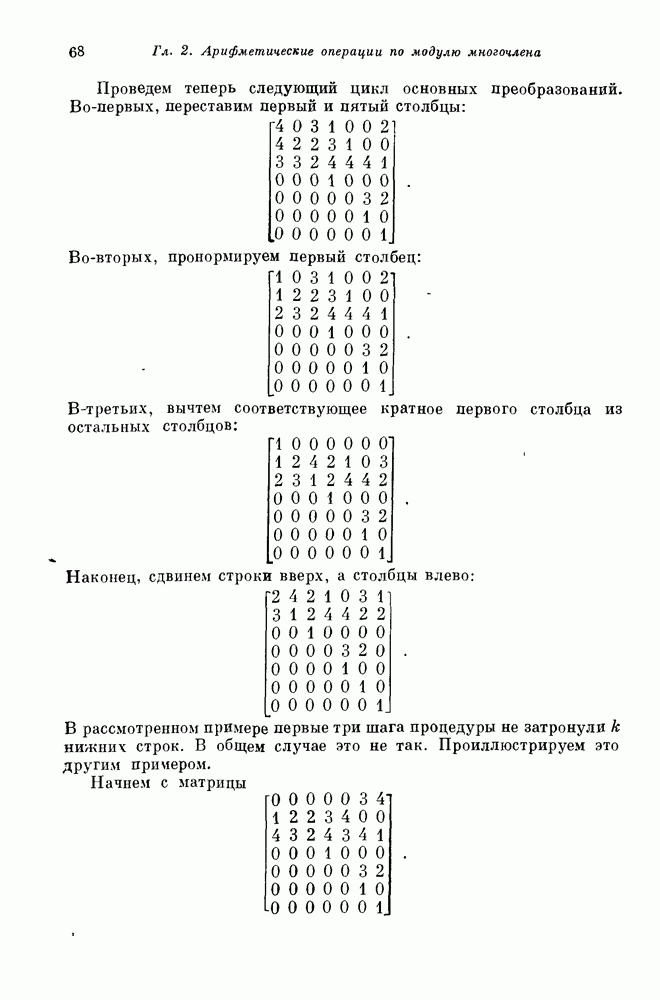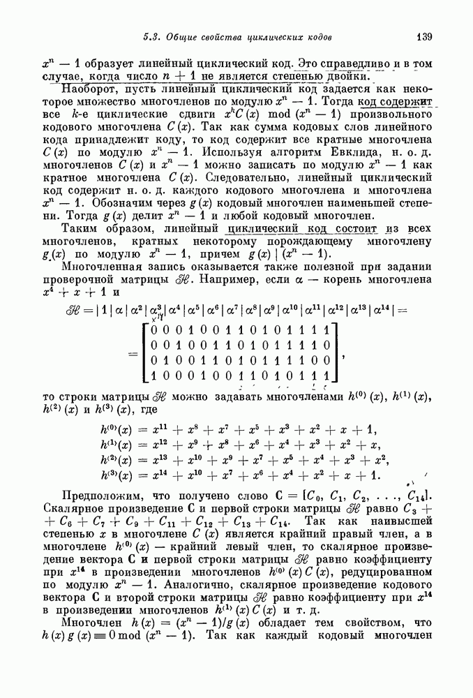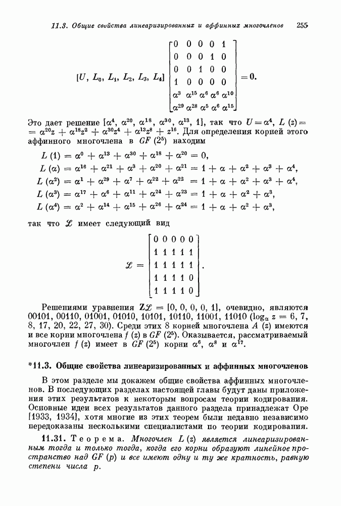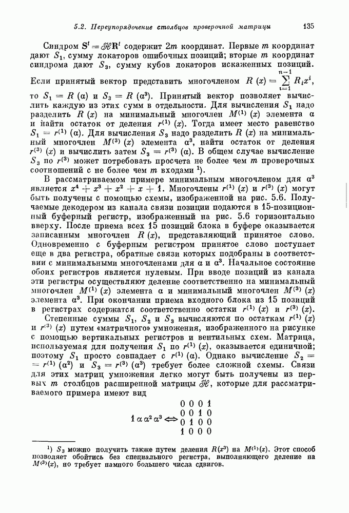 обладает еще одним интересным математическим свойством, которое мы сейчас опишем. Так как столбцы первых двух строк этой матрицы представляют собой соответствующие степени а, то кодовый многочлен