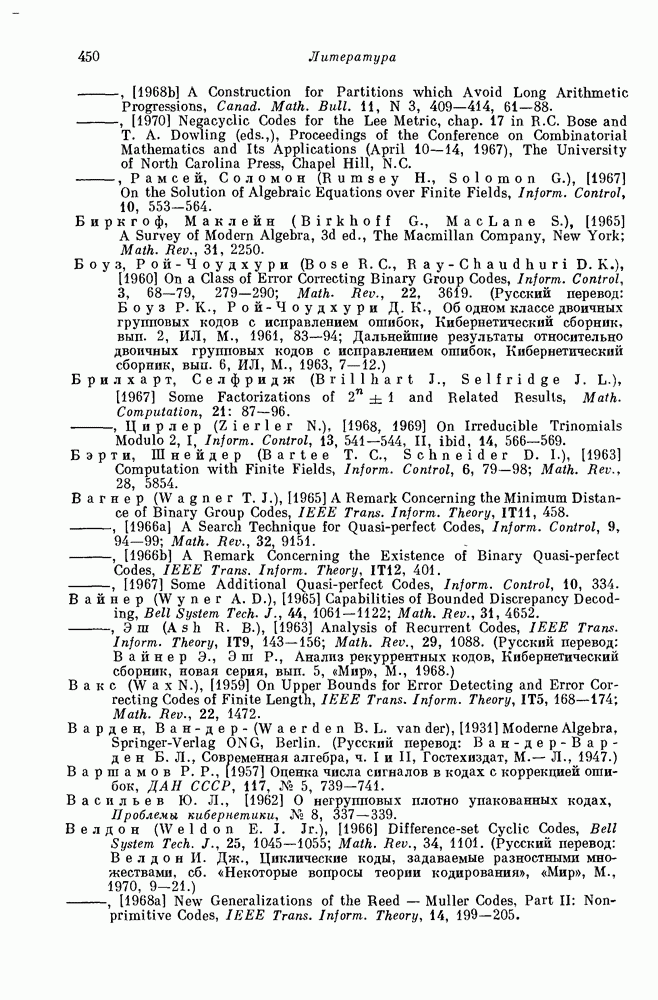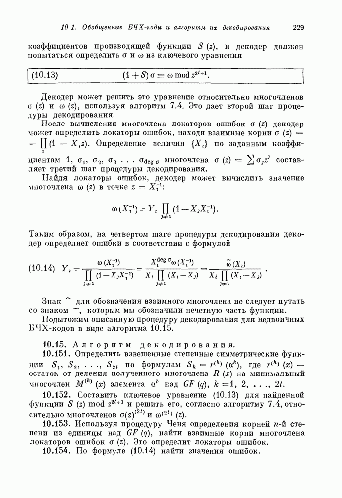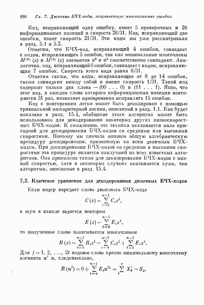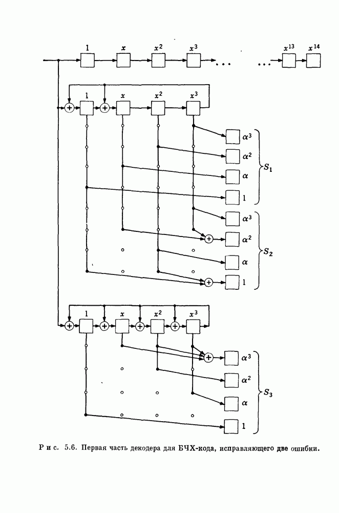 В качестве кодовых слов выбираются векторы, удовлетворяющие этим четырем проверочным соотношениям. К переданному кодовому слову прибавляется шум. Используя первые два проверочных уравнения, декодер получает сумму локаторов ошибок,