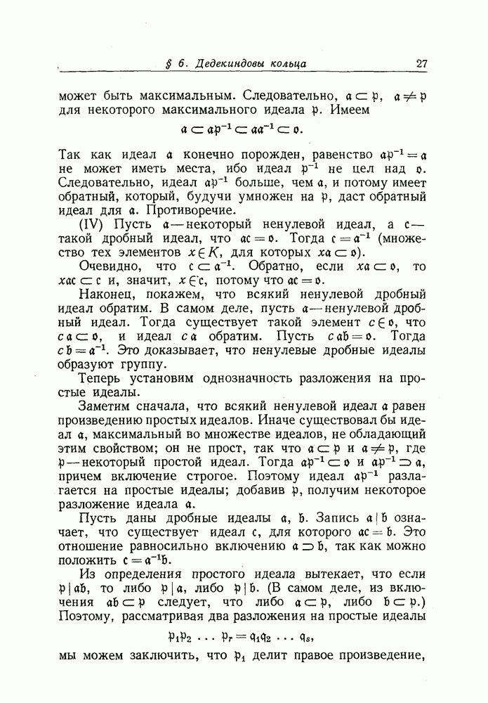 равен произведению простых идеалов. Иначе существовал бы идеал