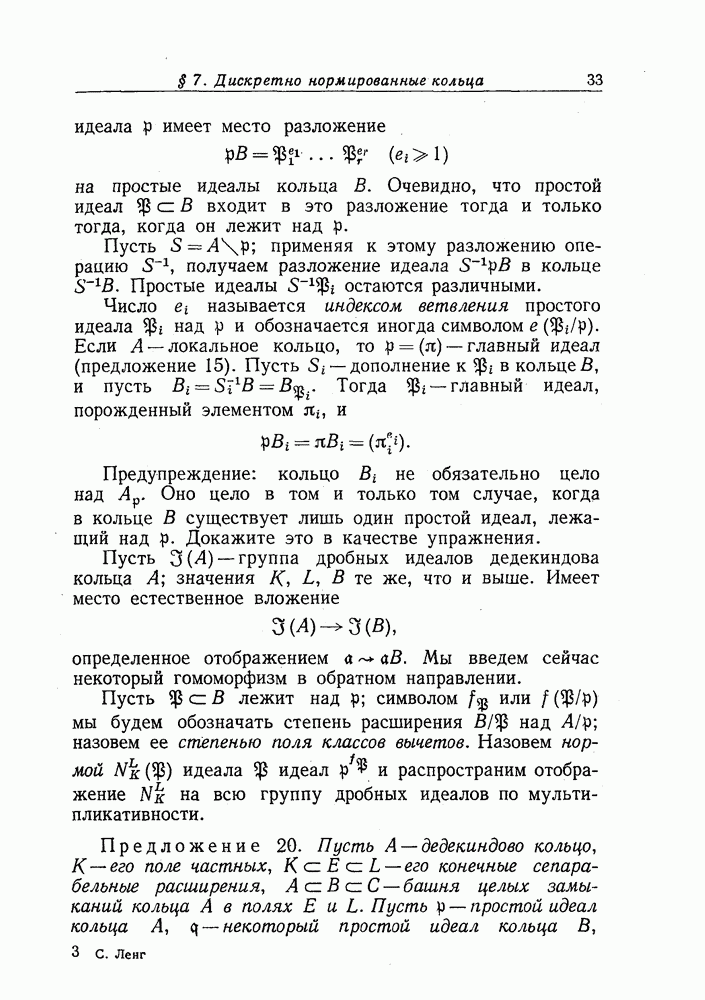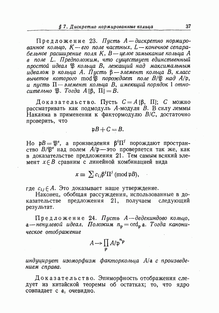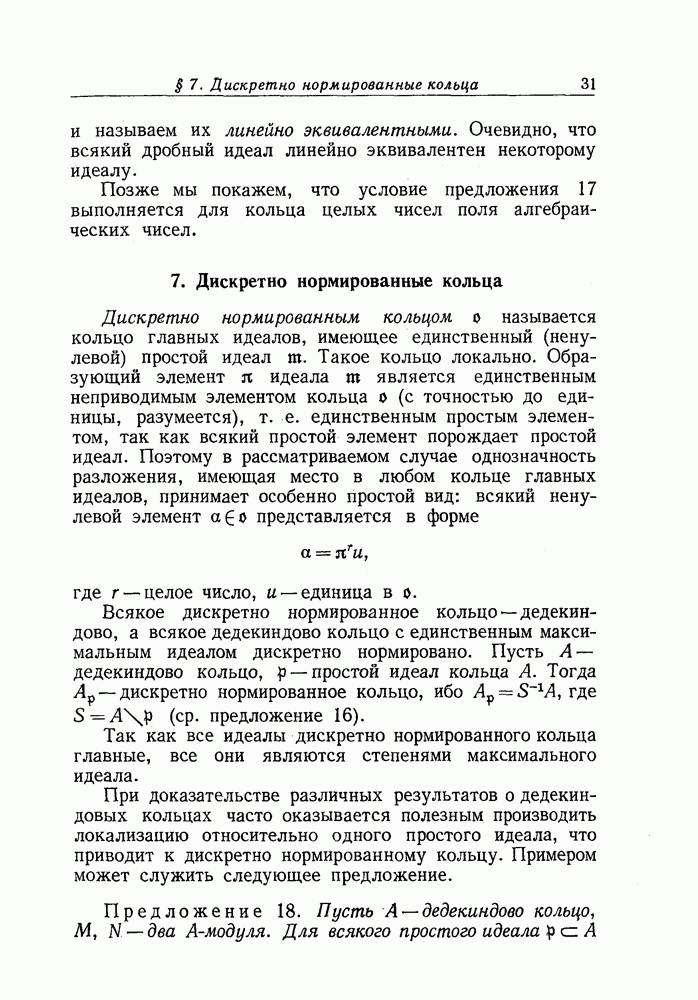 Позже мы покажем, что условие предложения 17 выполняется для кольца целых чисел поля алгебраических чисел.