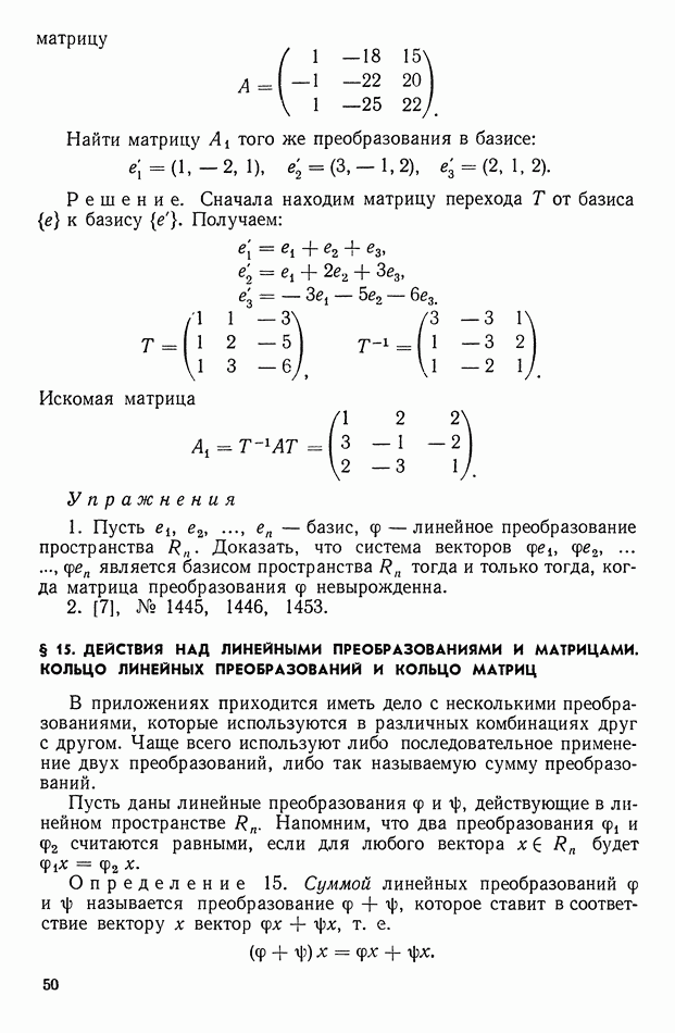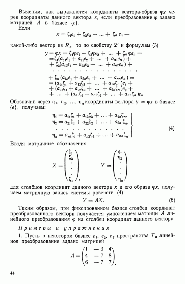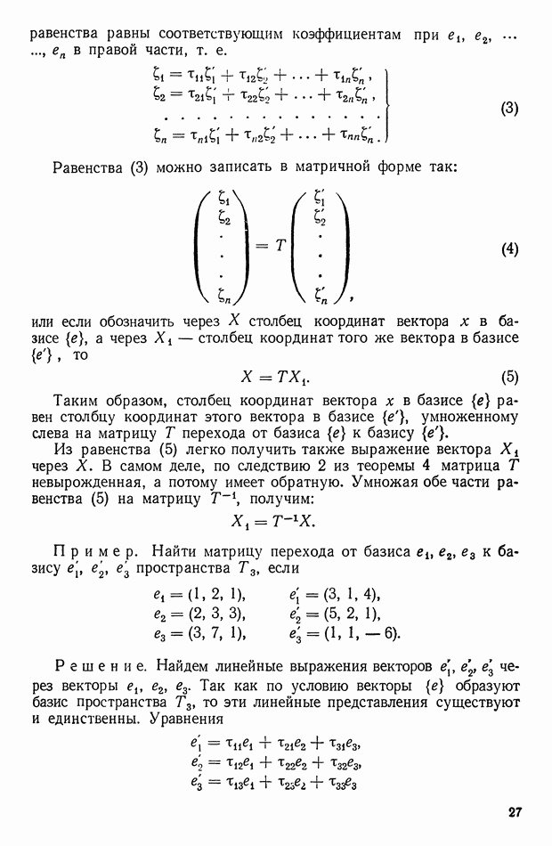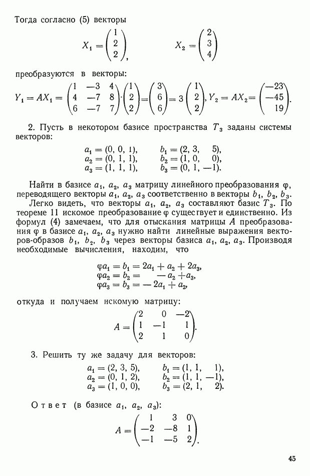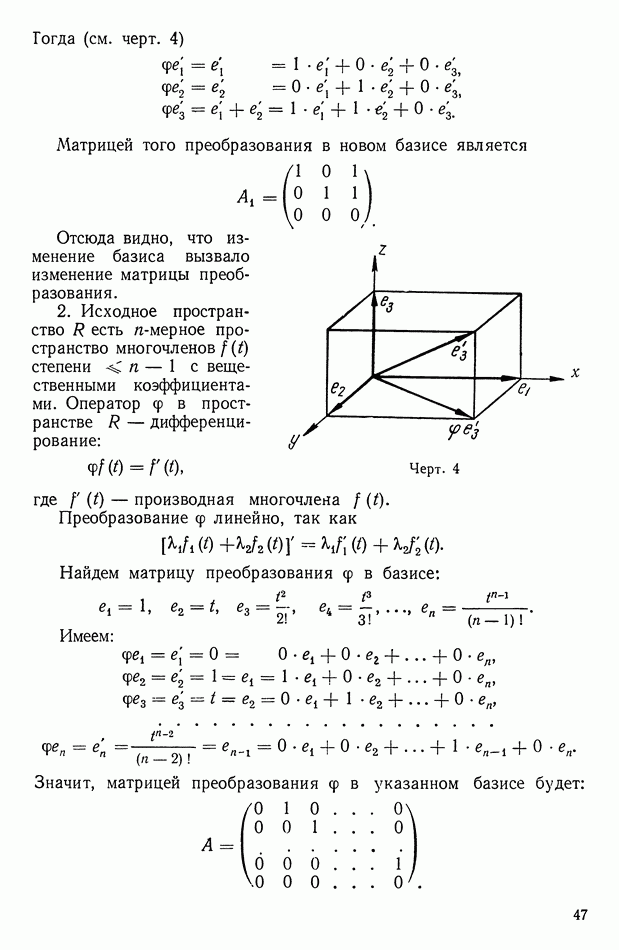 Отсюда видно, что изменение базиса вызвало изменение матрицы преобразования.