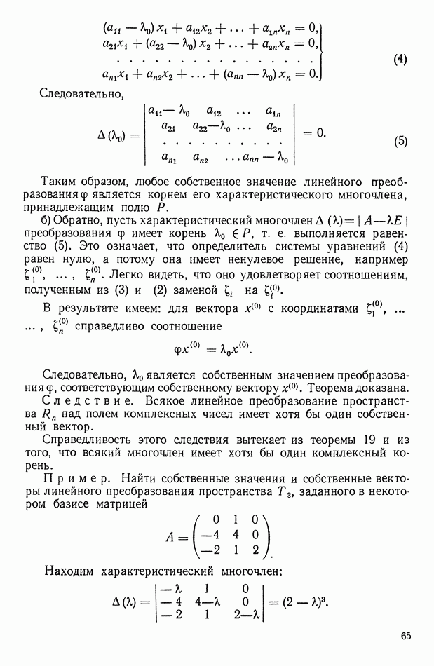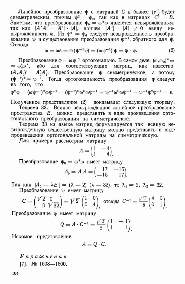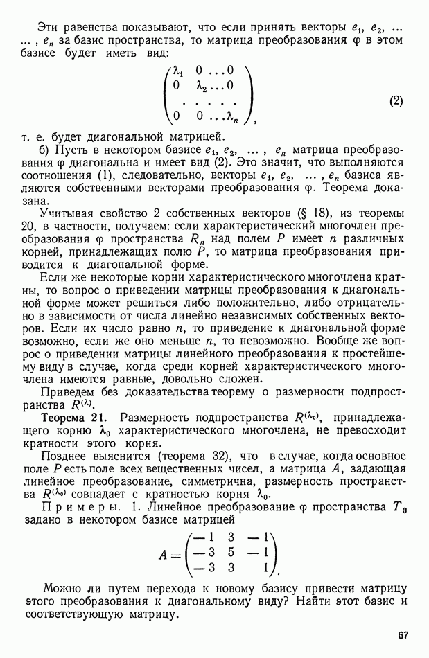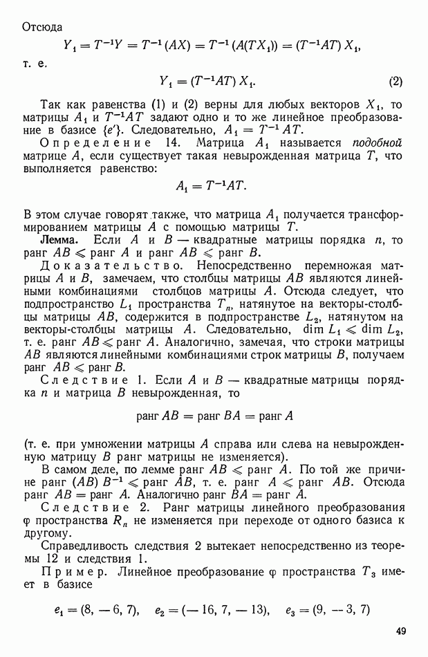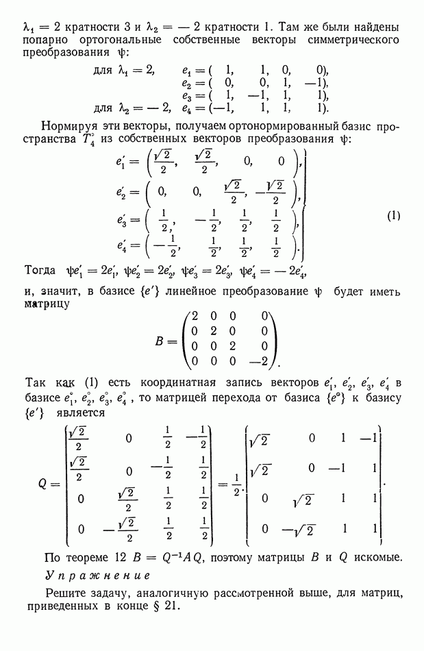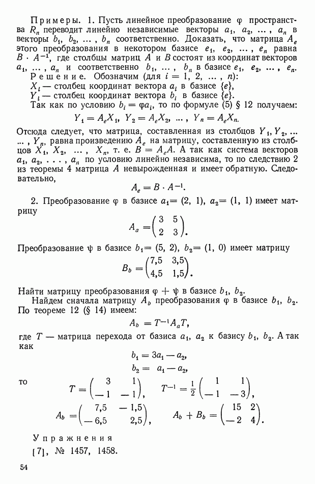 Отсюда видно, что изменение базиса вызвало изменение матрицы преобразования.