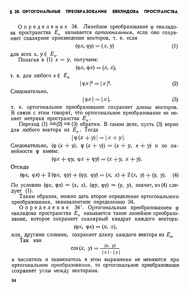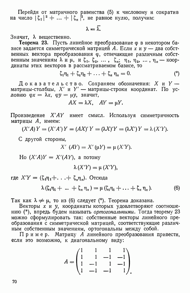 умножить на вещественное число X, то его проекция также умножится на X, т. е.  условие 2° тоже выполняется. Операция ортогонального проектирования будет линейным преобразованием