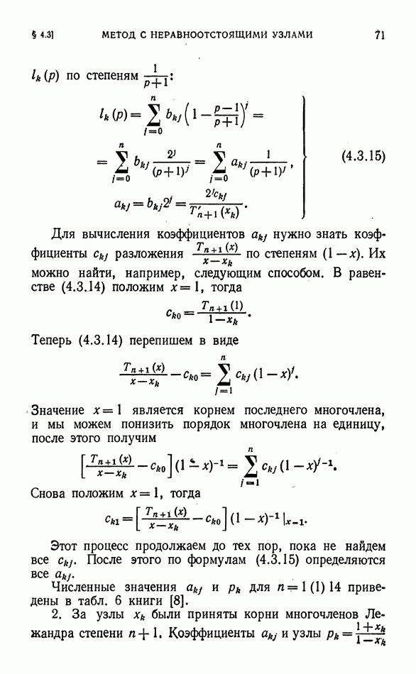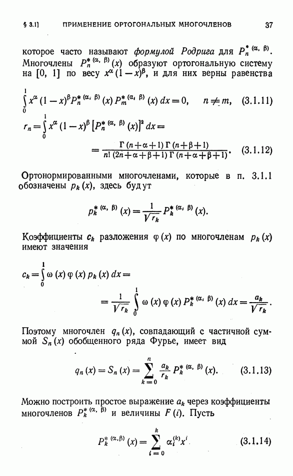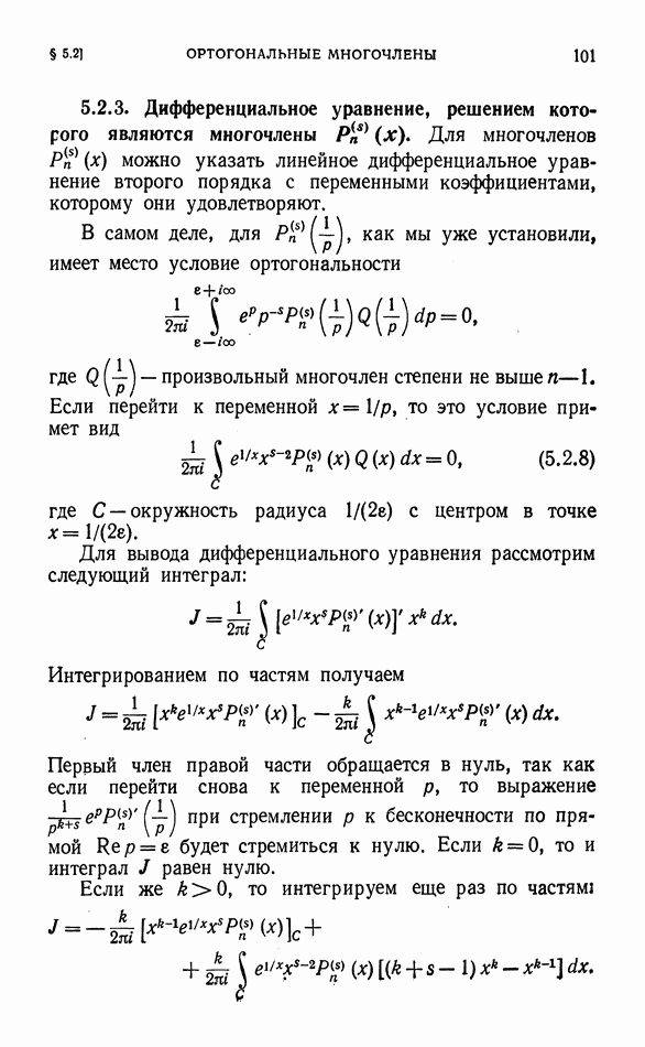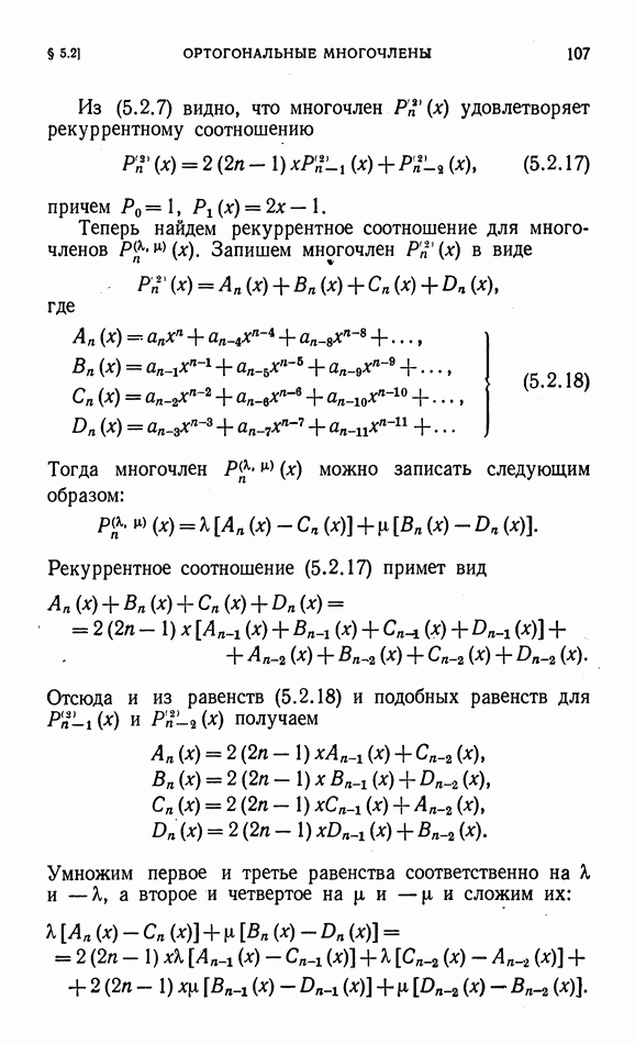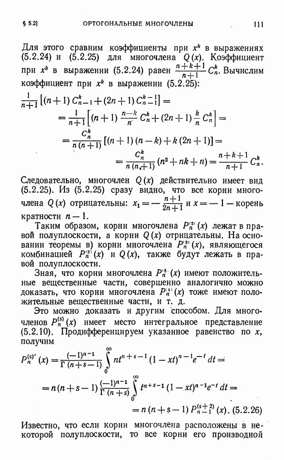 заданный равенством (5.2.1), удовлетворяет условию ортогональности (5.1.7), а ввиду единственности многочлена, удовлетворяющего этому условию, можно заключить, что многочлен