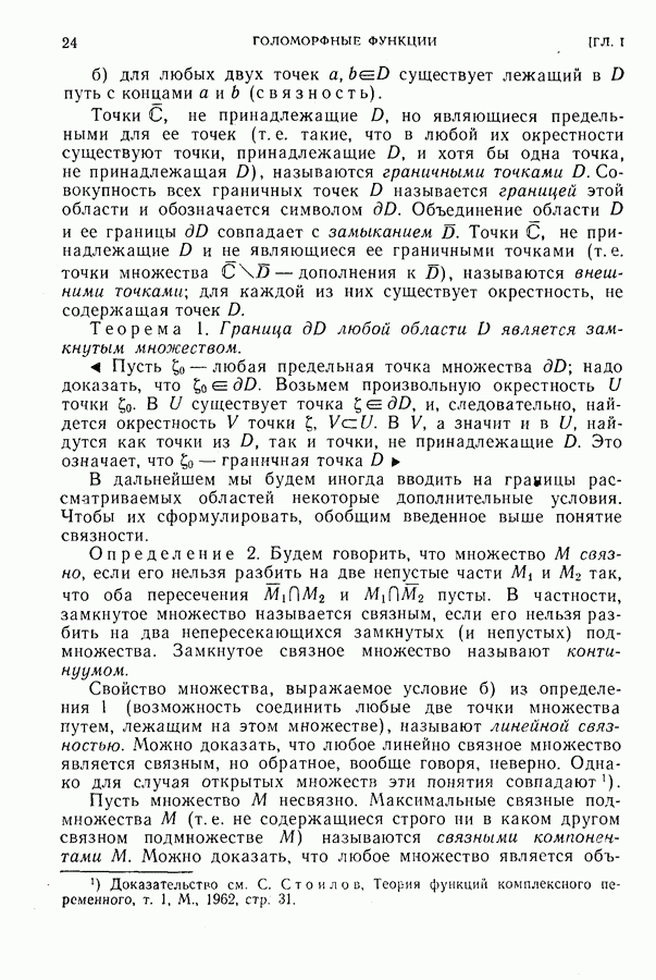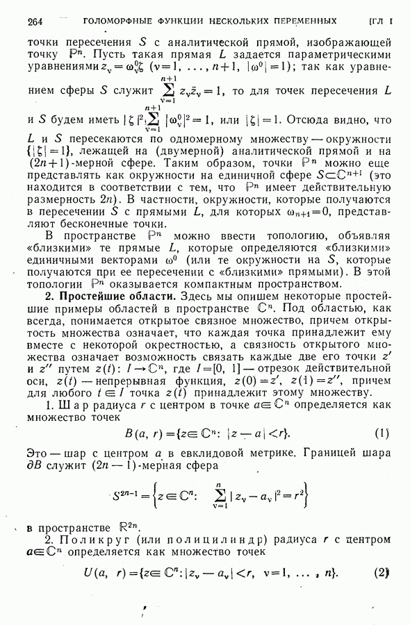 2. Простейшие области.Здесь мы опишем некоторые простейшие примеры областей в пространстве О. Под областью, как всегда, понимается открытое связное множество, причем открытость множества означает, что каждая точка принадлежит ему вместе с некоторой окрестностью, а связность открытого множества означает возможность связать каждые две его точки 1. Шар радиуса r с центром в точке не