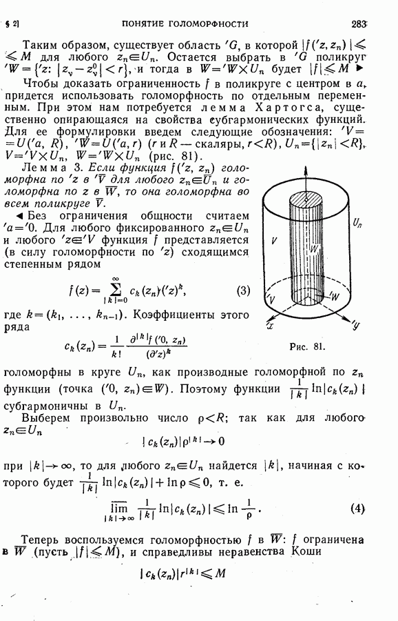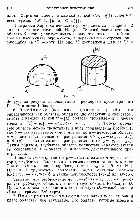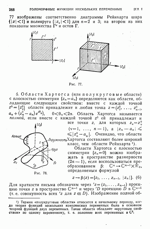 Рис. 77. 5. Области Хартогса (или полукруговые области) с плоскостью симметрии Область Хартогса называется полной, если вместе с каждой точкой