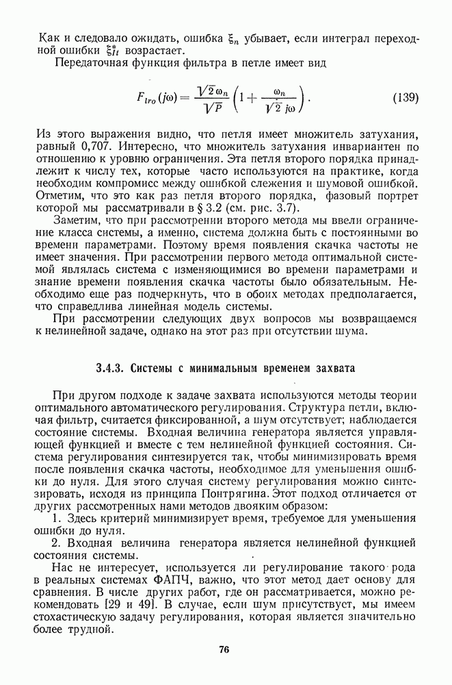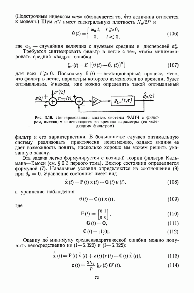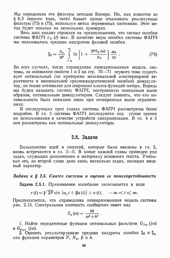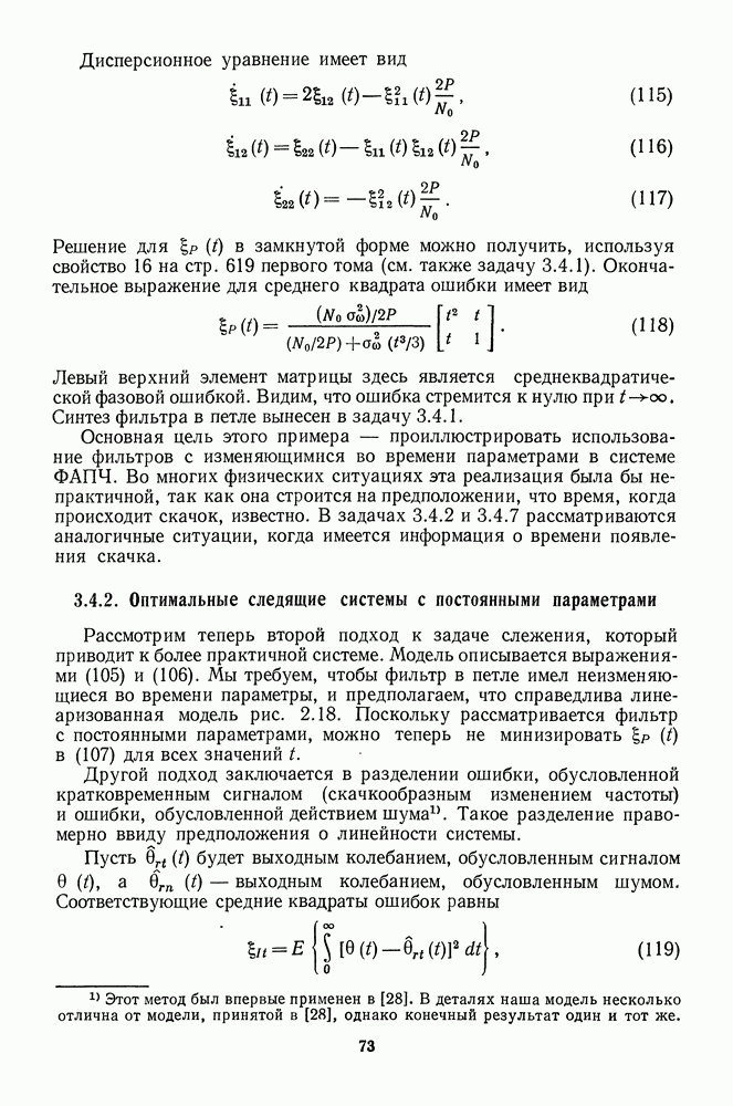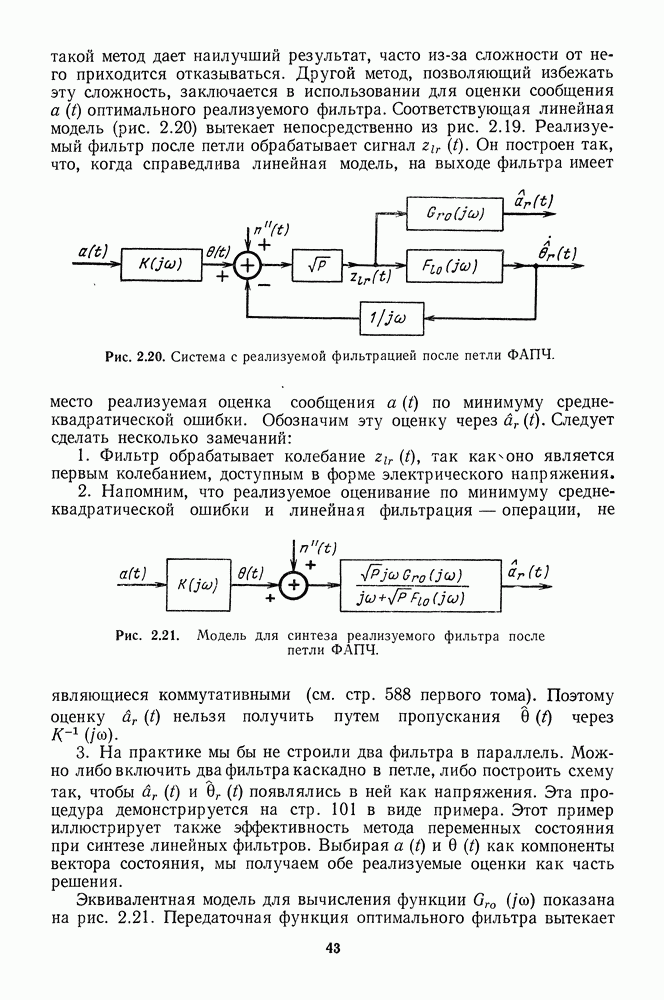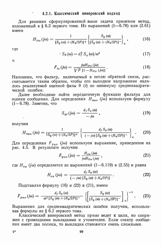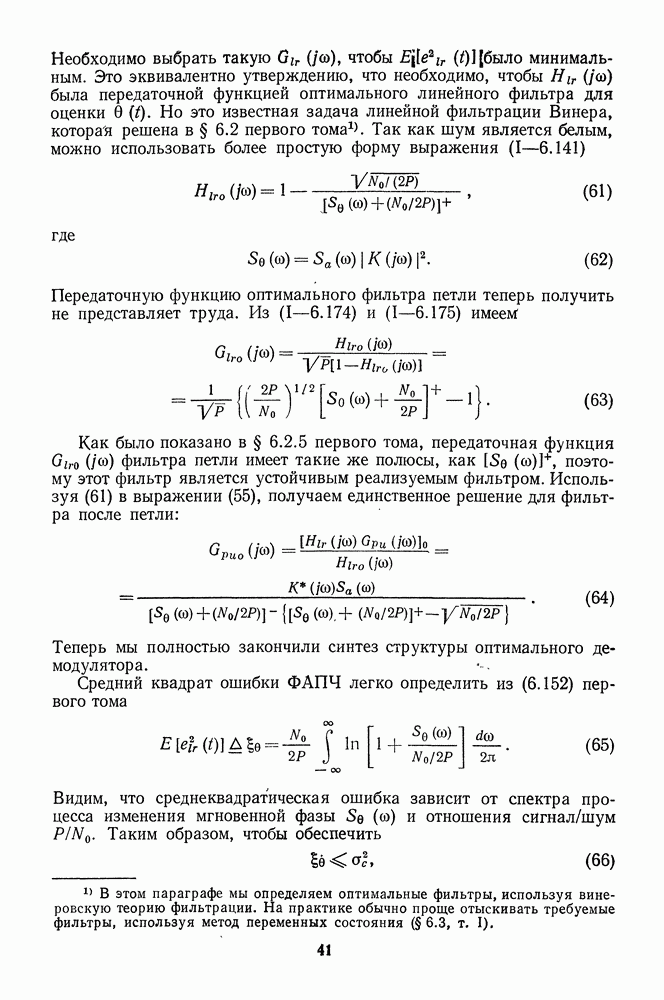 Так как шум является белым, фильтр в петле обратной связи и среднеквадратическую ошибку можно определить, воспользовавшись результатами § 6.2.4 первого тома. Из (I-6.141) и (18) передаточная функция оптимального фильтра в петле равна