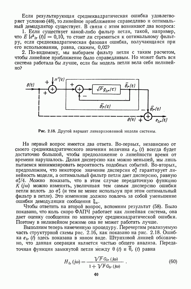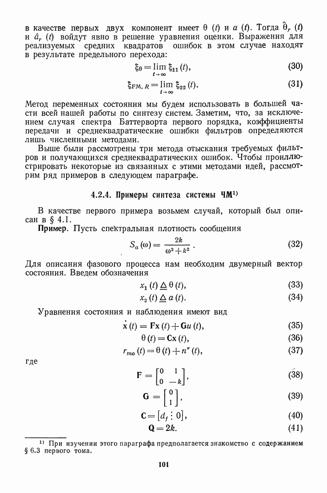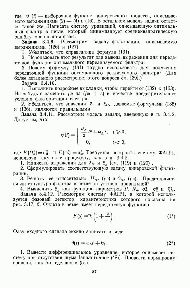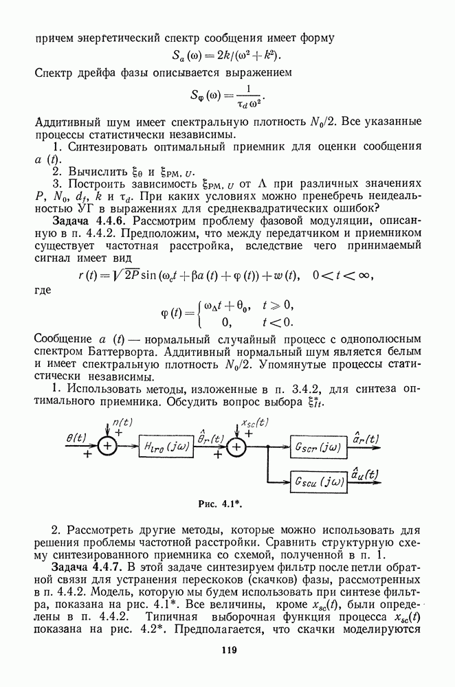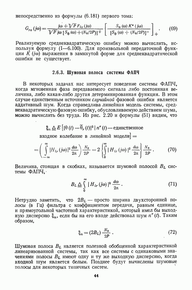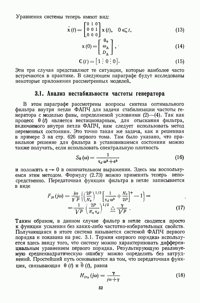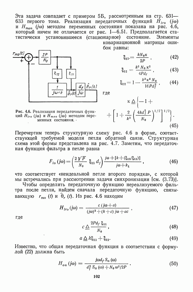 Так как шум является белым, фильтр в петле обратной связи и среднеквадратическую ошибку можно определить, воспользовавшись результатами § 6.2.4 первого тома. Из (I-6.141) и (18) передаточная функция оптимального фильтра в петле равна