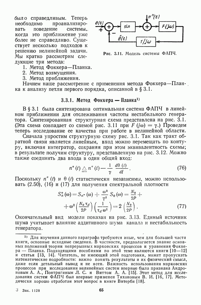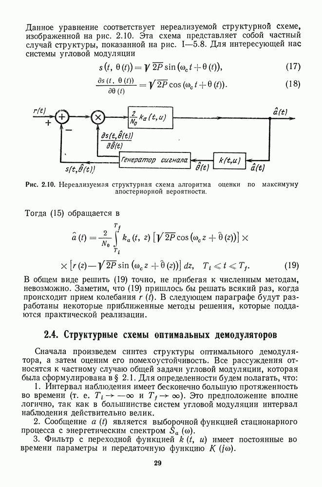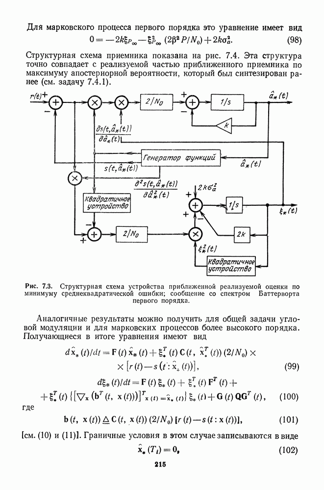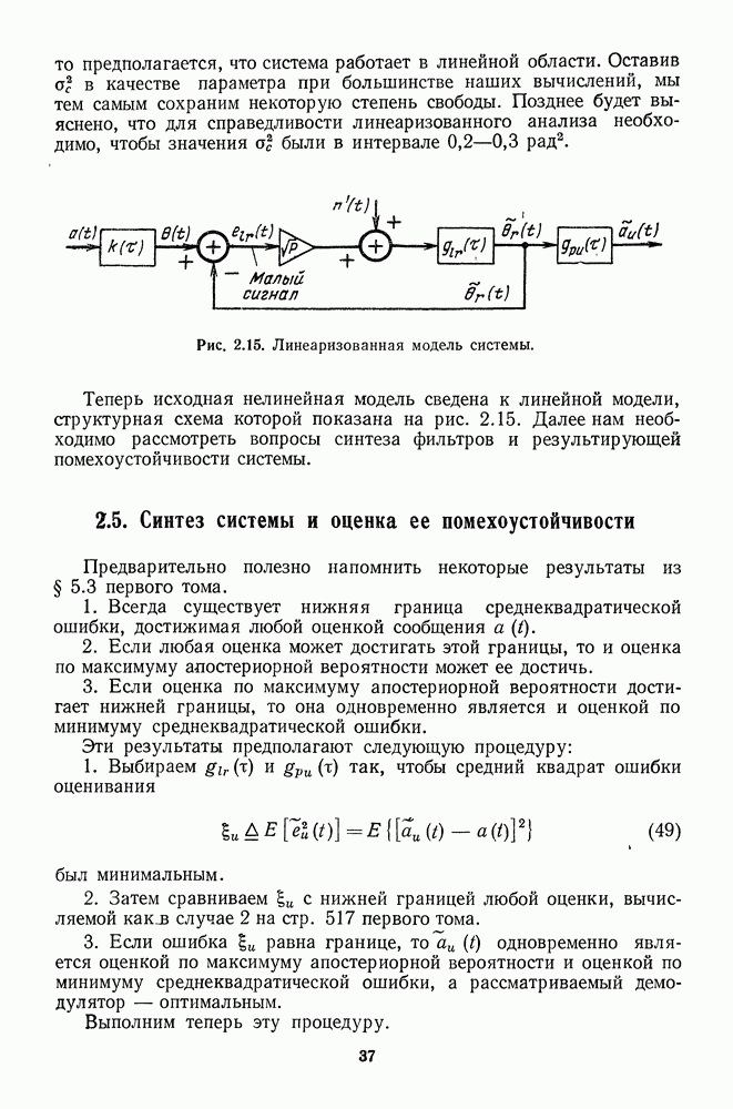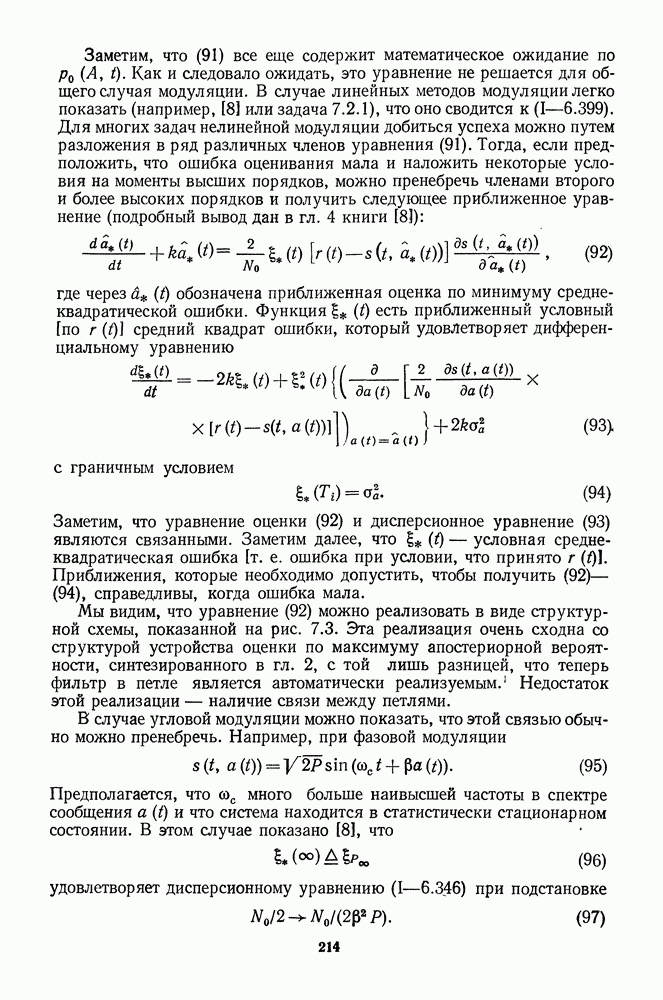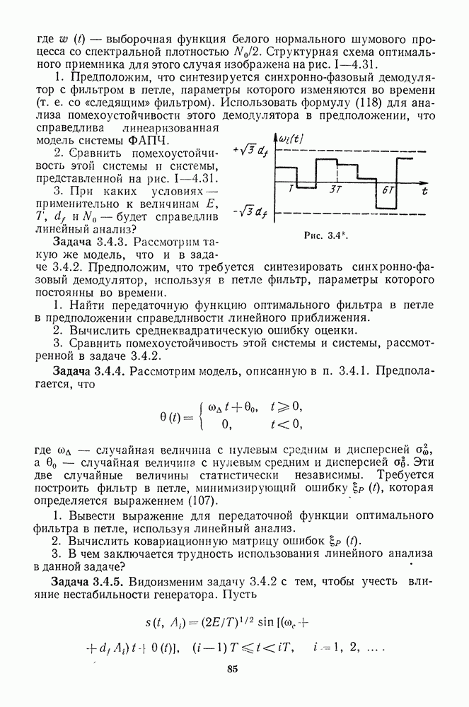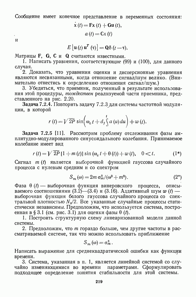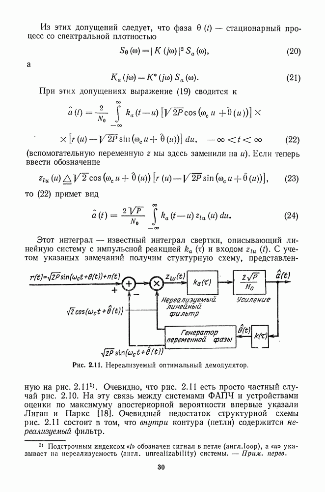 Так как шум является белым, фильтр в петле обратной связи и среднеквадратическую ошибку можно определить, воспользовавшись результатами § 6.2.4 первого тома. Из (I-6.141) и (18) передаточная функция оптимального фильтра в петле равна