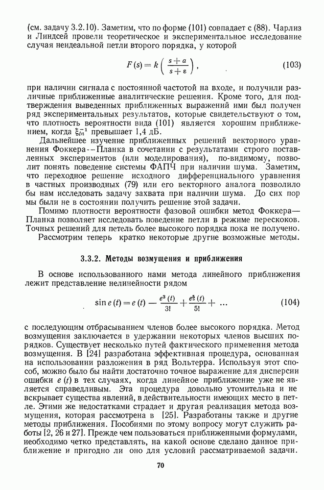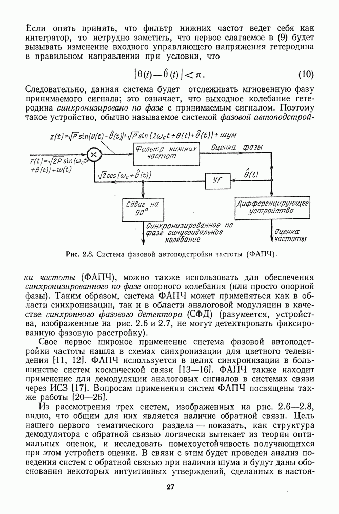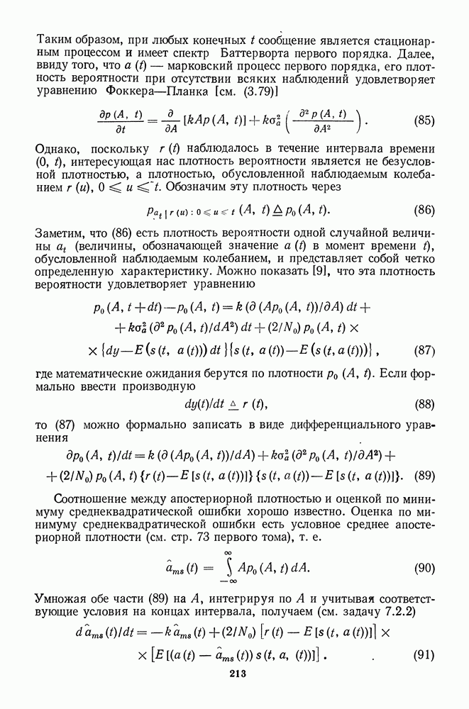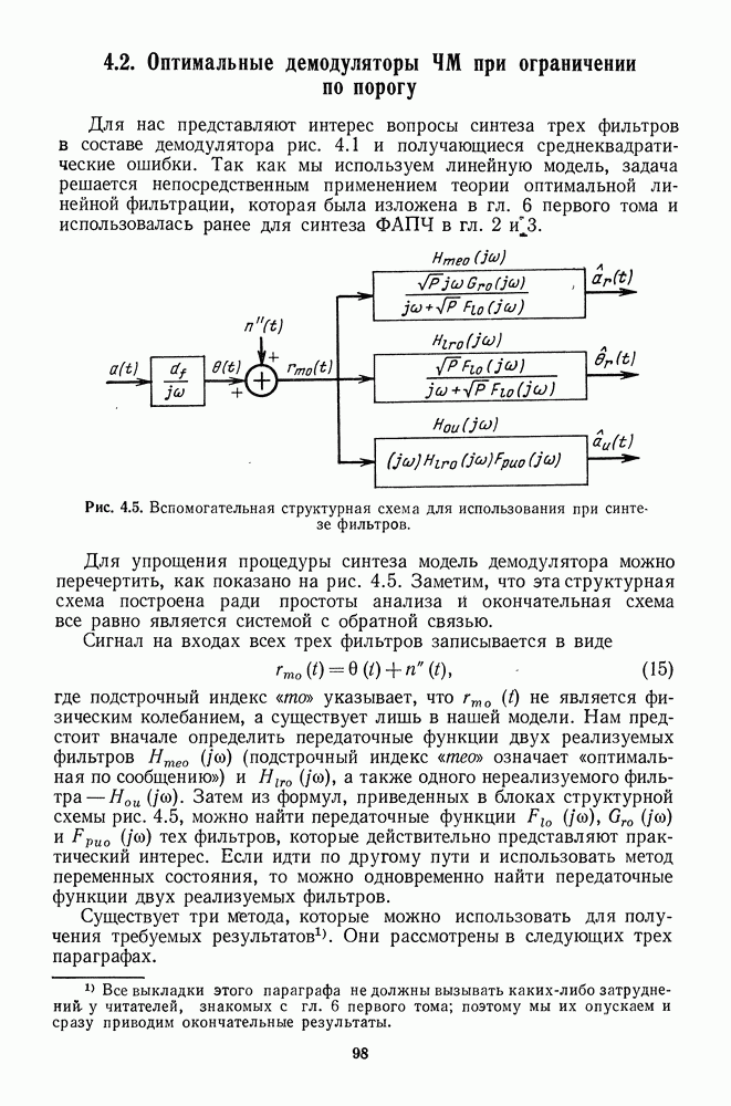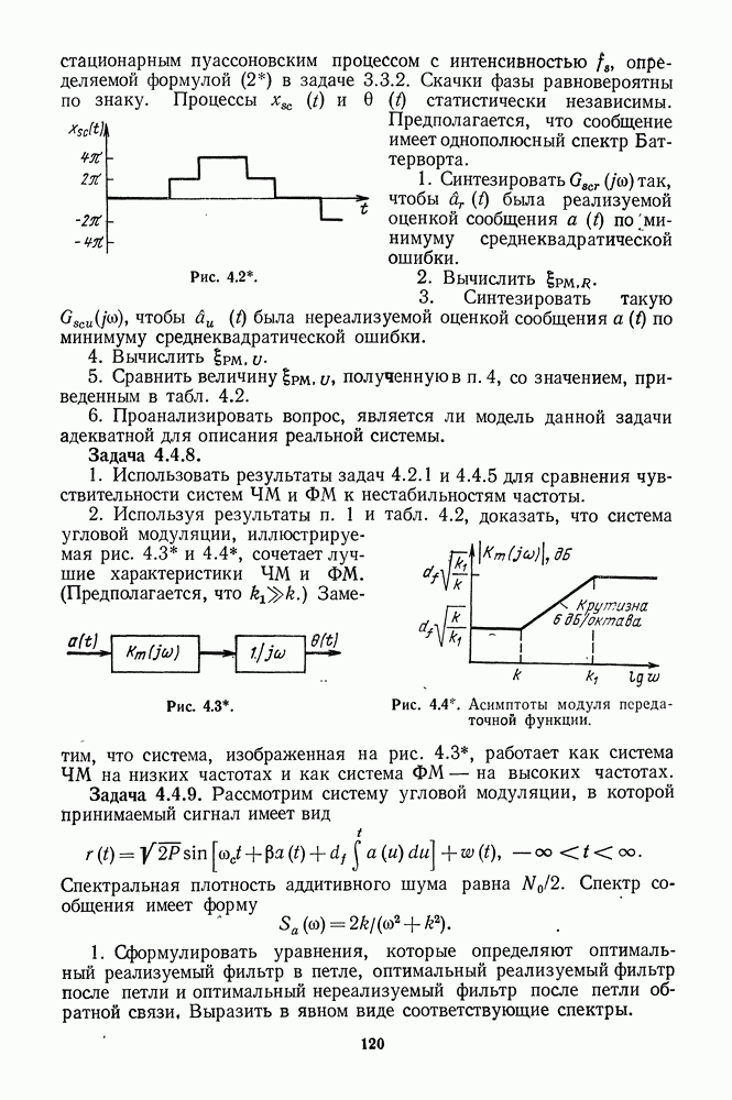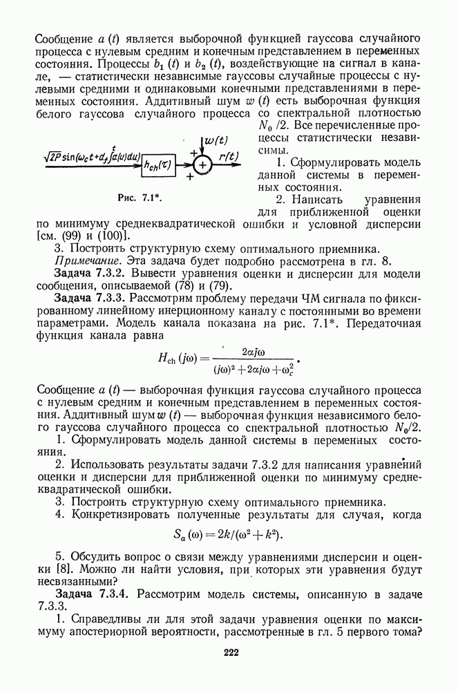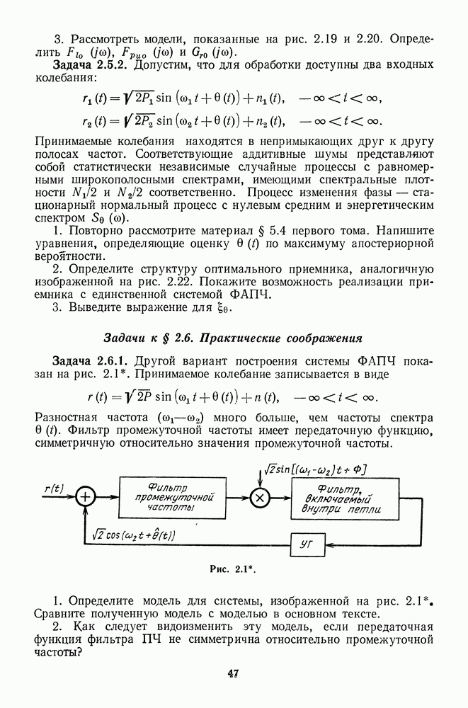 Так как шум является белым, фильтр в петле обратной связи и среднеквадратическую ошибку можно определить, воспользовавшись результатами § 6.2.4 первого тома. Из (I-6.141) и (18) передаточная функция оптимального фильтра в петле равна
