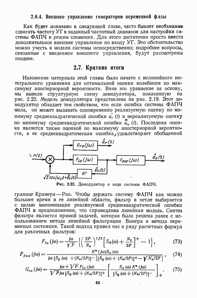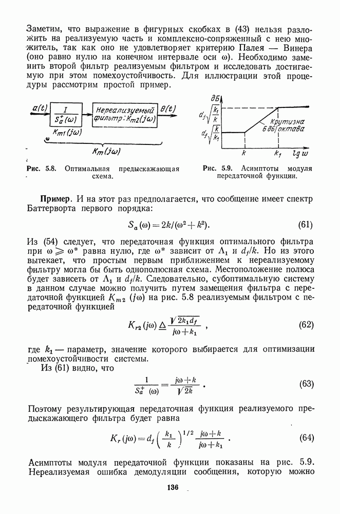 Упрощенное выражение для реализуемого фильтра оценки сообщения было выведено в [2]. Передаточная функция такого фильтра имеет вид