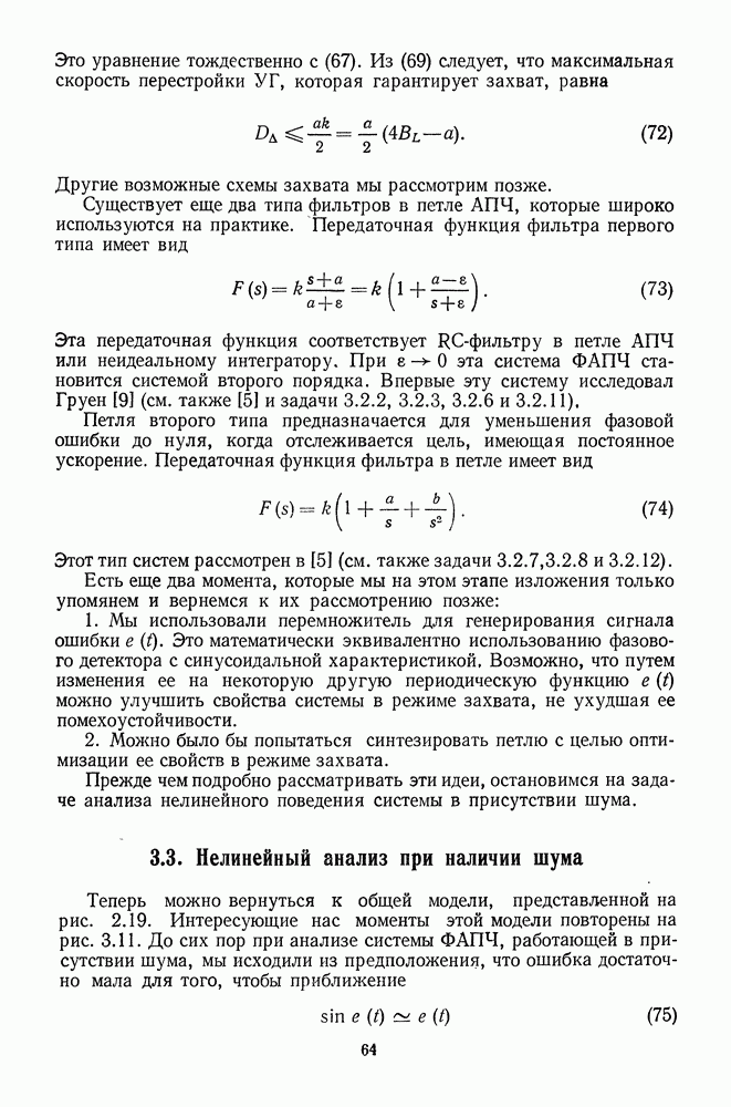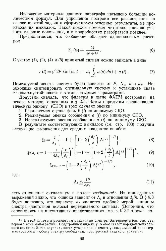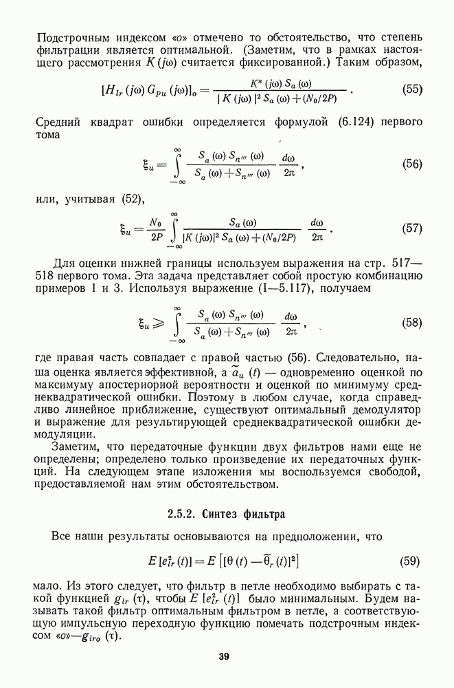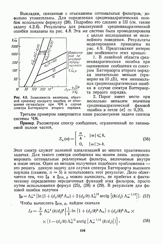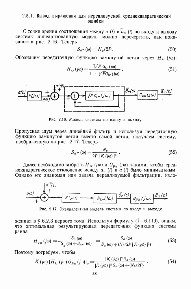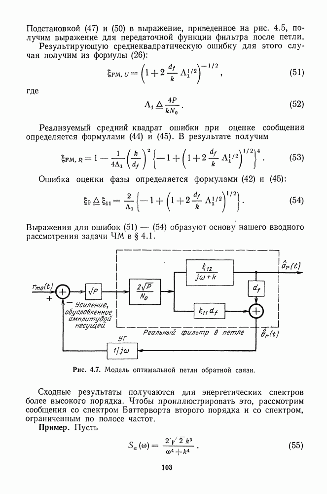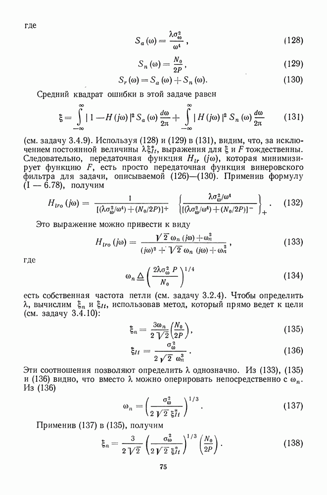 Найти передаточную функцию фильтра после петли, когда определена передаточная функция фильтра в петле, уже несложно. Средний квадрат нереализуемой ошибки согласно формуле (I — 6.124) равен