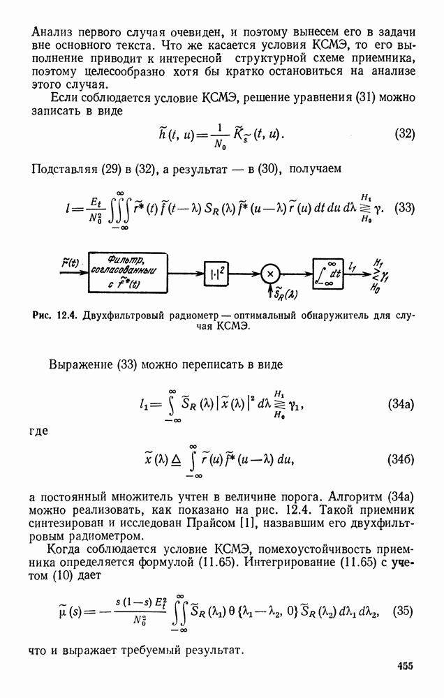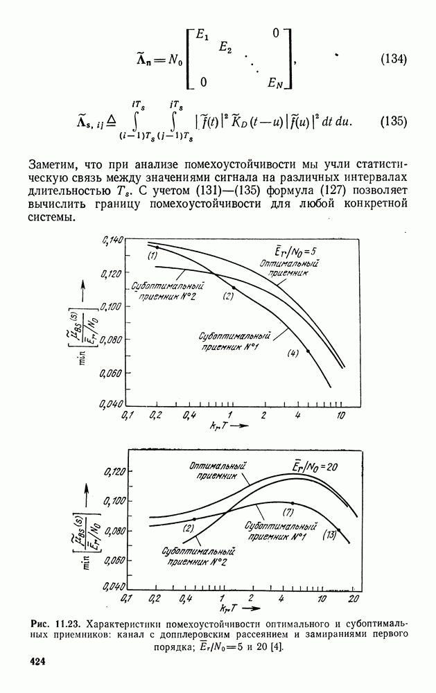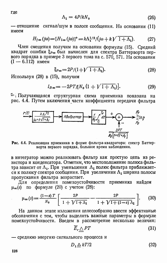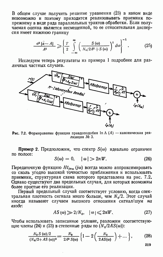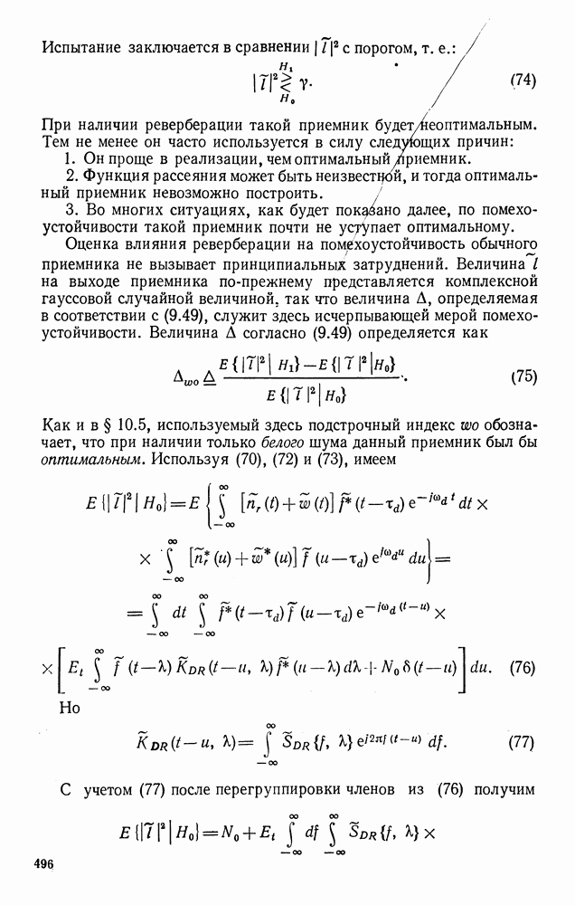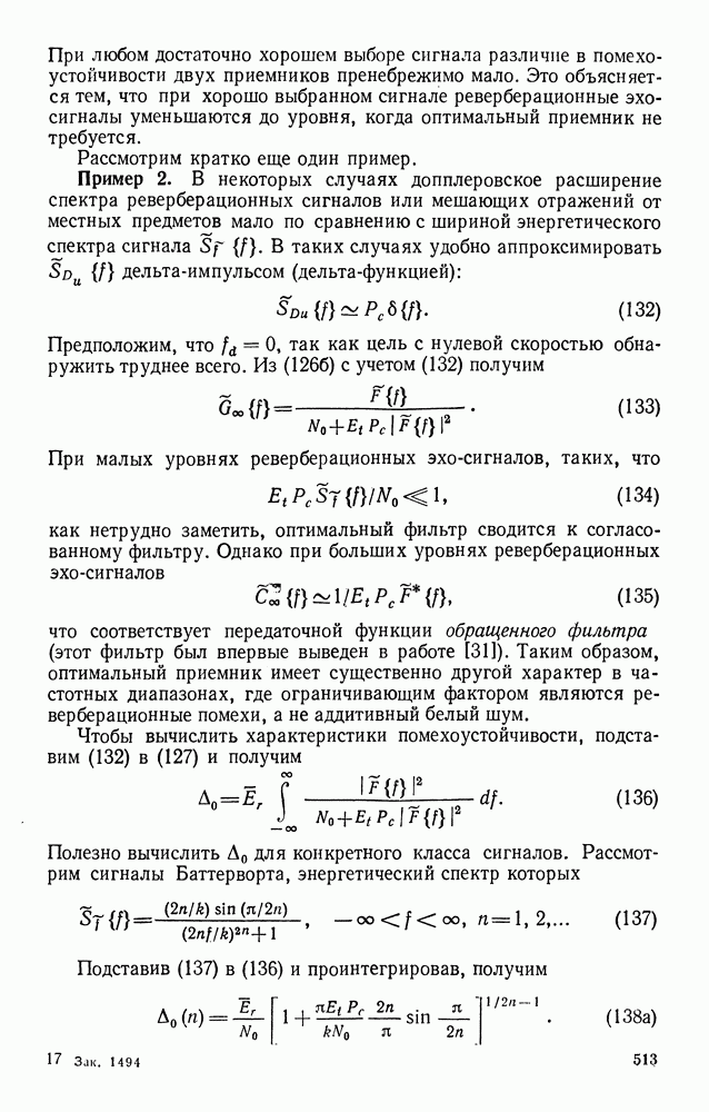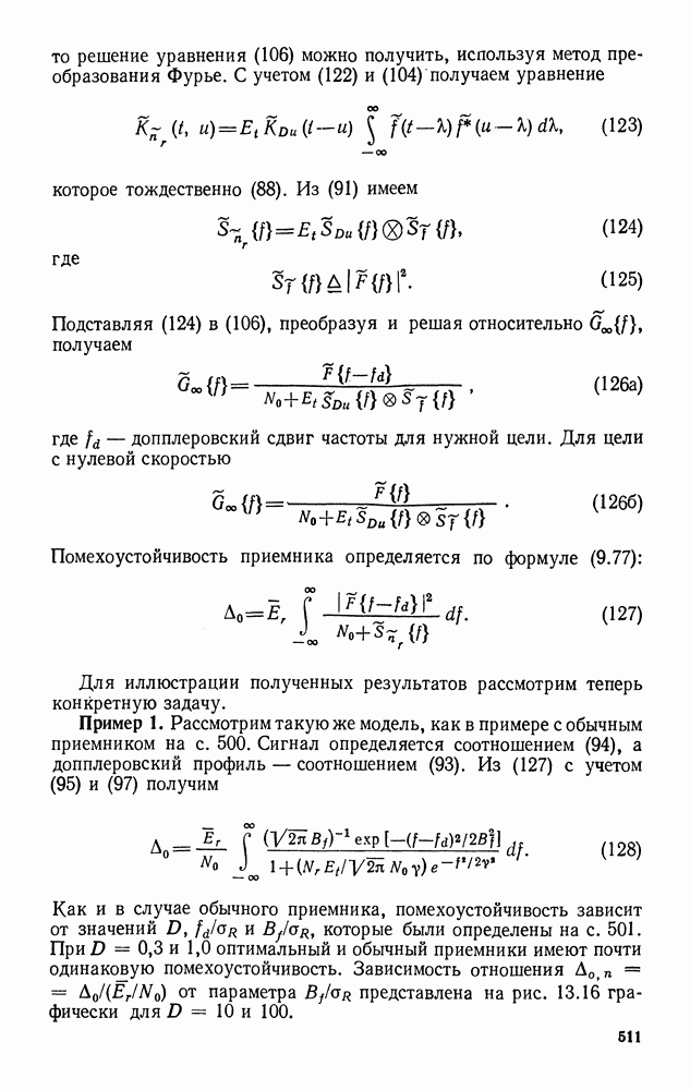 Помехоустойчивость приемника при наличии небелого шума определяется формулой (77). Ее можно переписать в виде
