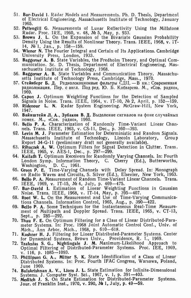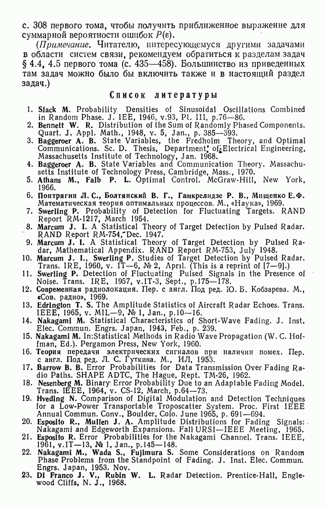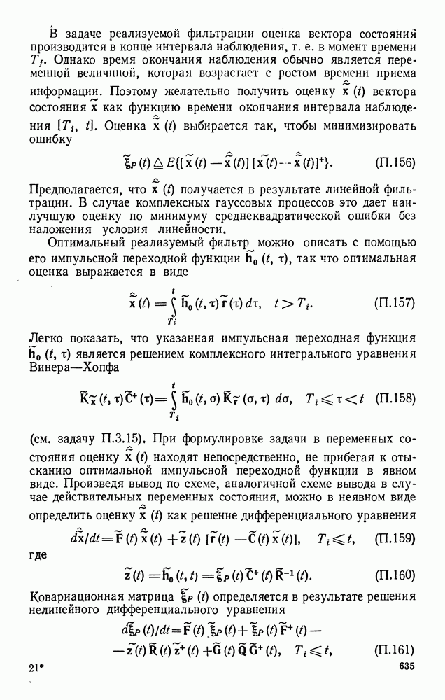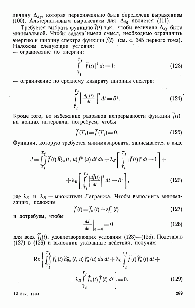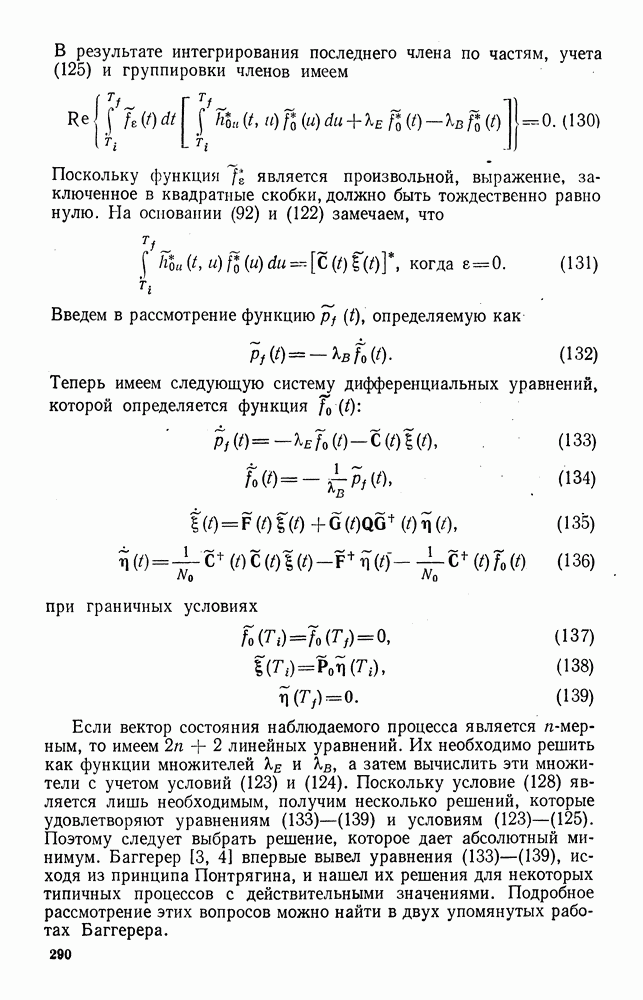 а затем вычислить эти множители с учетом условий (123) и (124). Поскольку условие (128) является лишь необходимым, получим несколько решений, которые удовлетворяют уравнениям (133)-(139) и условиям (123)-(125). Поэтому следует выбрать решение, которое дает абсолютный минимум. Баггерер [3, 4] впервые вывел уравнения (133)-(139), исходя из принципа Понтрягина, и нашел их решения для некоторых типичных процессов с действительными значениями. Подробное рассмотрение этих вопросов можно найти в двух упомянутых работах Баггерера.