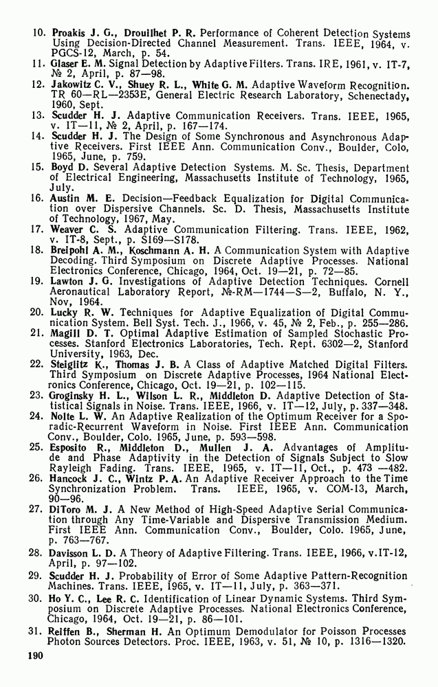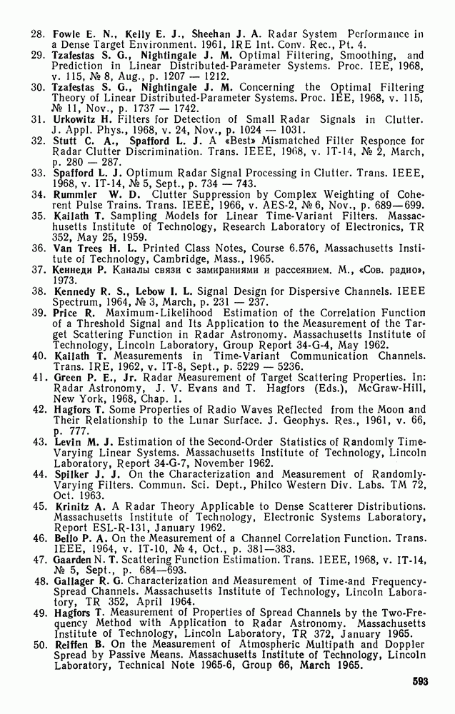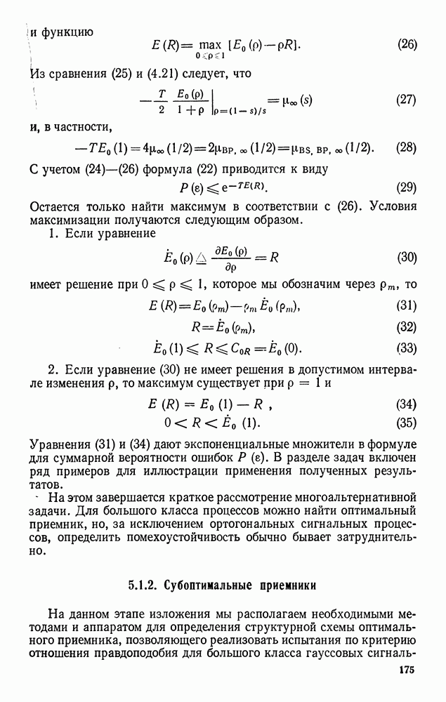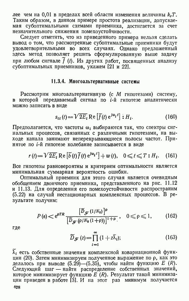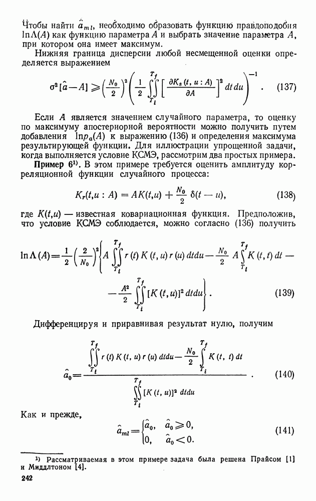 а затем вычислить эти множители с учетом условий (123) и (124). Поскольку условие (128) является лишь необходимым, получим несколько решений, которые удовлетворяют уравнениям (133)-(139) и условиям (123)-(125). Поэтому следует выбрать решение, которое дает абсолютный минимум. Баггерер [3, 4] впервые вывел уравнения (133)-(139), исходя из принципа Понтрягина, и нашел их решения для некоторых типичных процессов с действительными значениями. Подробное рассмотрение этих вопросов можно найти в двух упомянутых работах Баггерера.